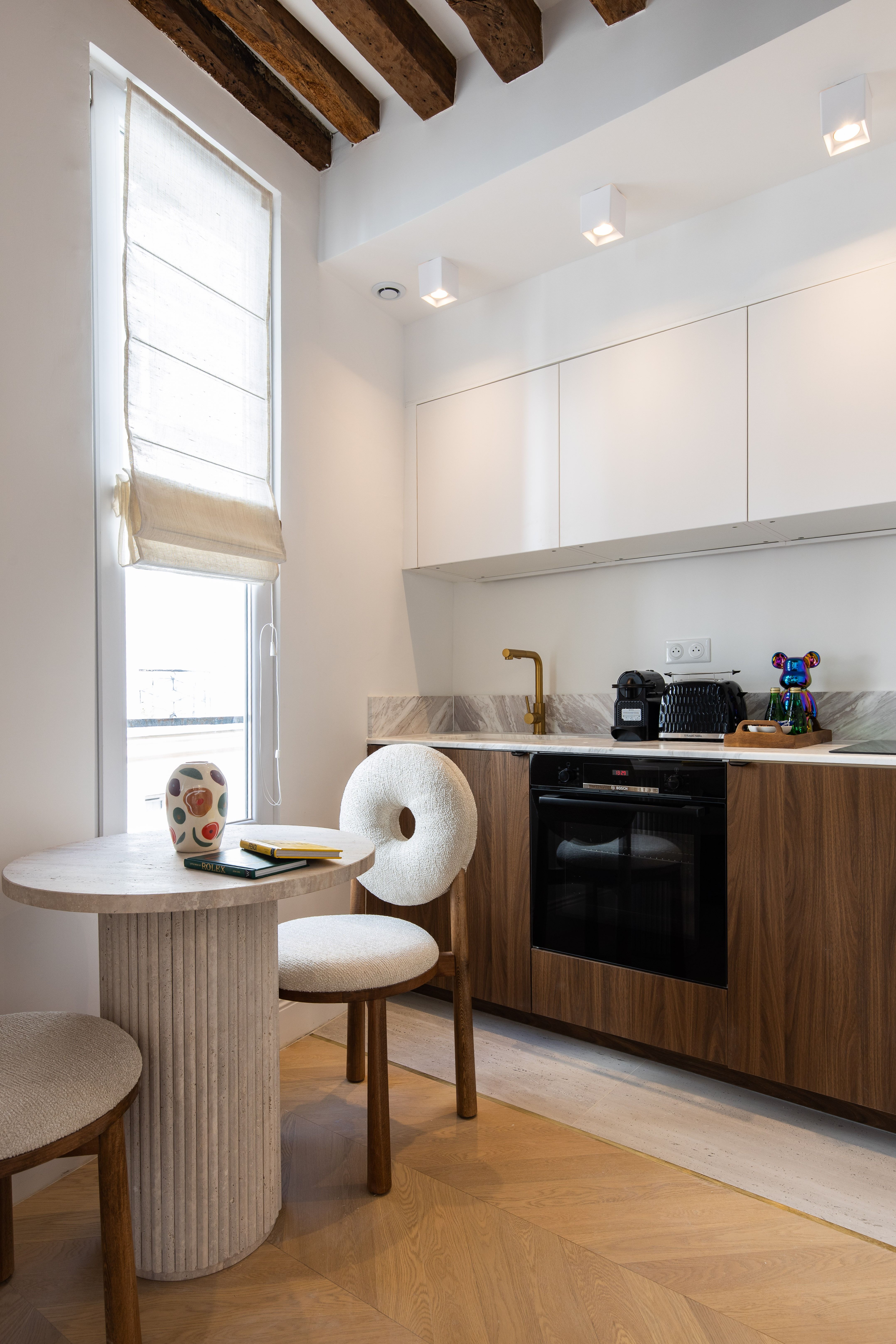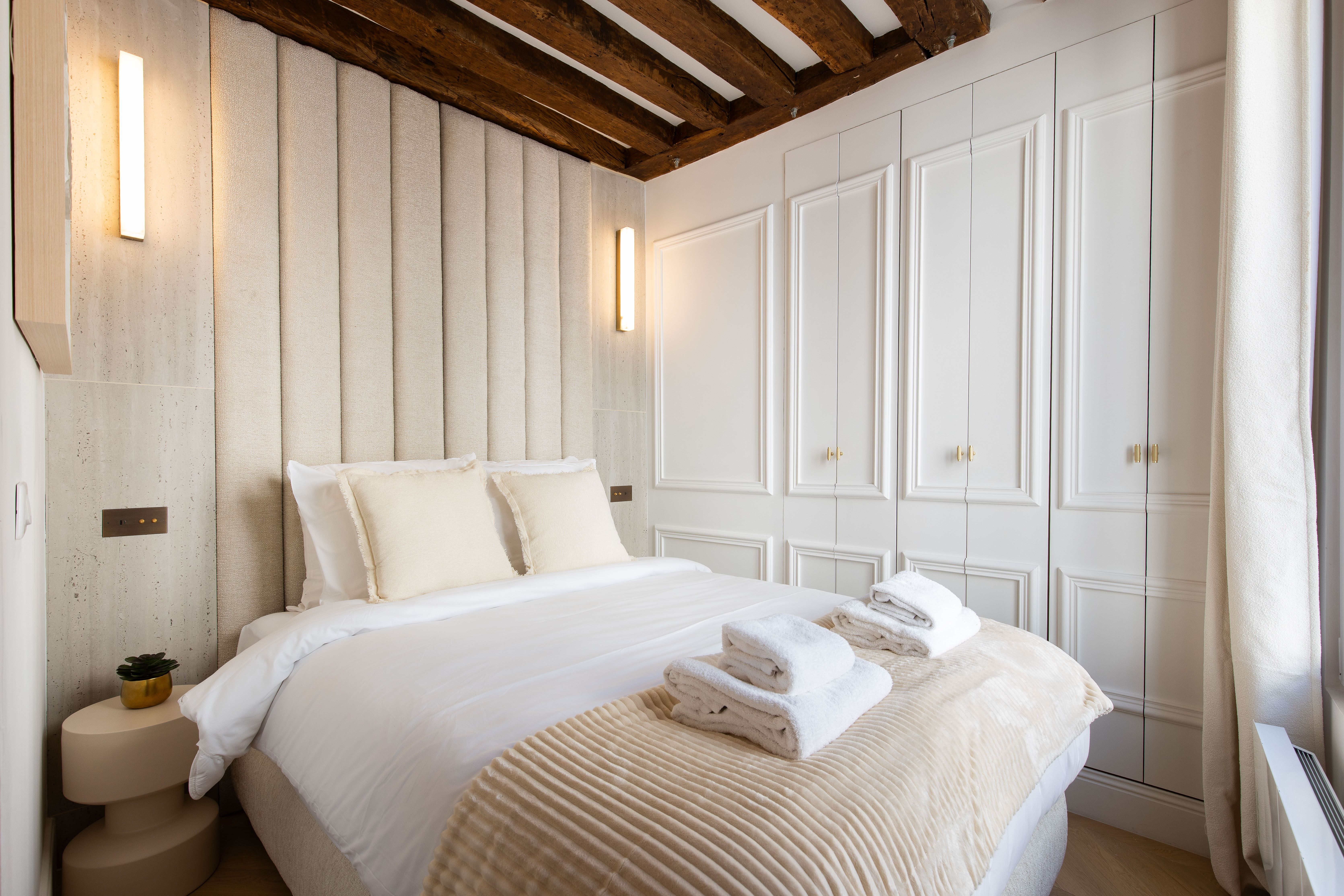 This charming Parisian apartment is perfect for couples, professionals, or small families visiting the French capital. It's compact, with a sofa bed and a bit of a climb to get there (it's on the third floor without a lift), but full of cosy furnishings. There's a kitchenette with an oven for preparing home-cooked meals, and a dining table that doubles up as a handy desk for catching up on work. The location's hard to beat, too – right in the centre of Paris, surrounded by an array of authentic bistros and patisseries, and a ten-minute walk from cultural highlights like the Notre Dame, the Panthéon, and the Musée des Arts et Métiers.