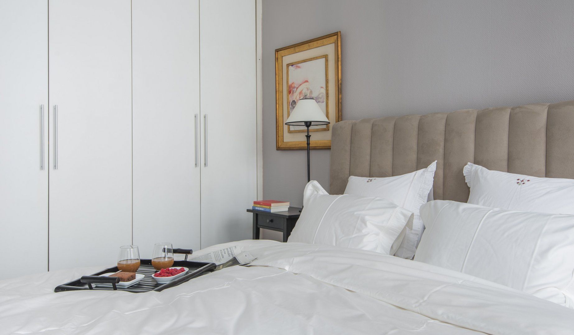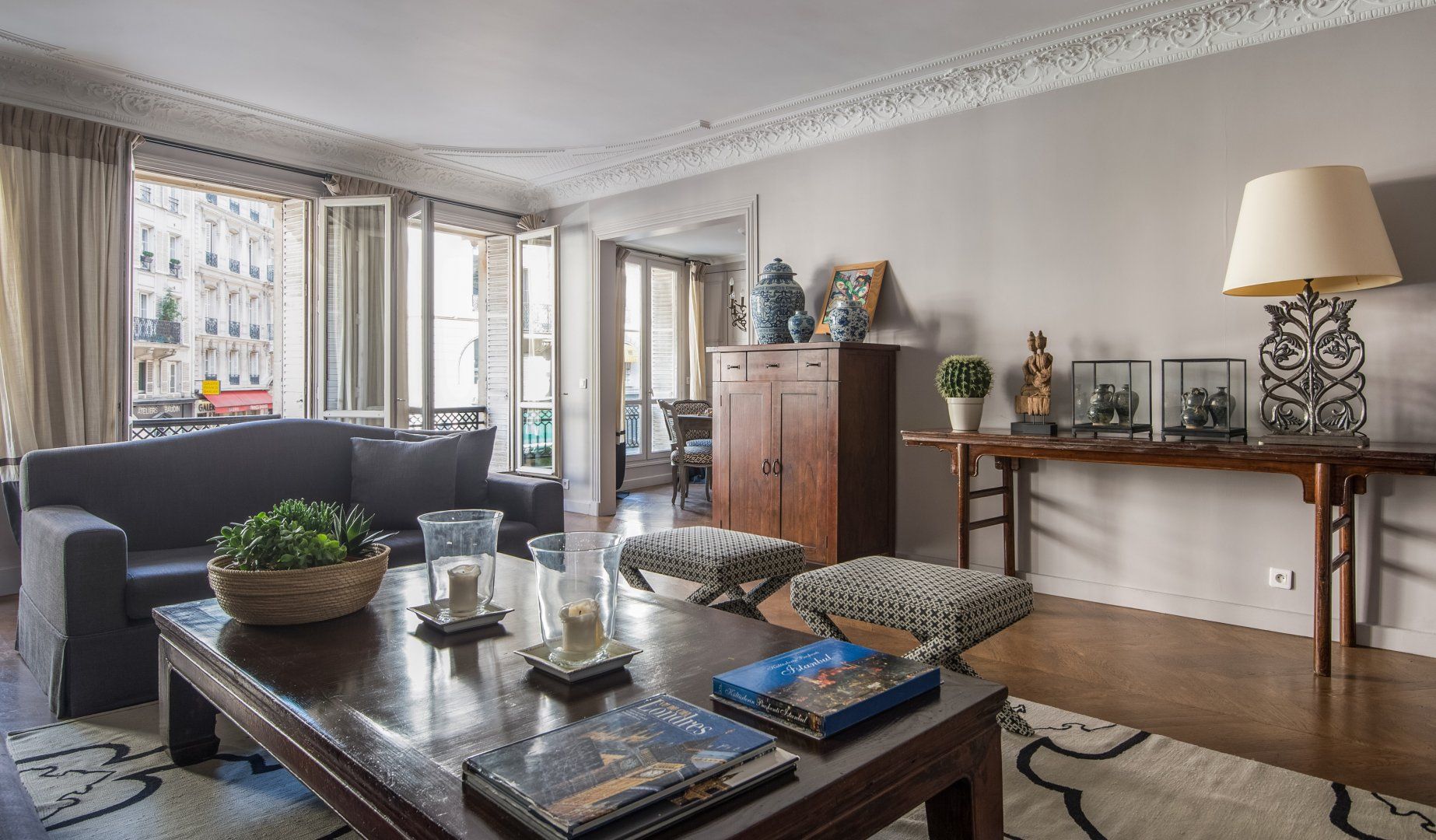 This beautiful apartment is located on the Rue du Faubourg Saint-Honoré. Although less wide and impressive looking than its neighbour, the Avenue des Champs-Élysées, it's famous amongst those in the know for being home to the most luxurious boutiques around. The area's keen sense of style is reflected in this home which is luxurious yet tasteful, with several statement artworks that will please even the most discerning visitor. You'll find tall windows that bring in plenty of light, along with a gorgeous white kitchen to use if you fancy showing off your French culinary skills. Breakfasts are easy too – the fabulous boulangerie across the road will set you up for a day of shopping, sightseeing or simply enjoying city life.