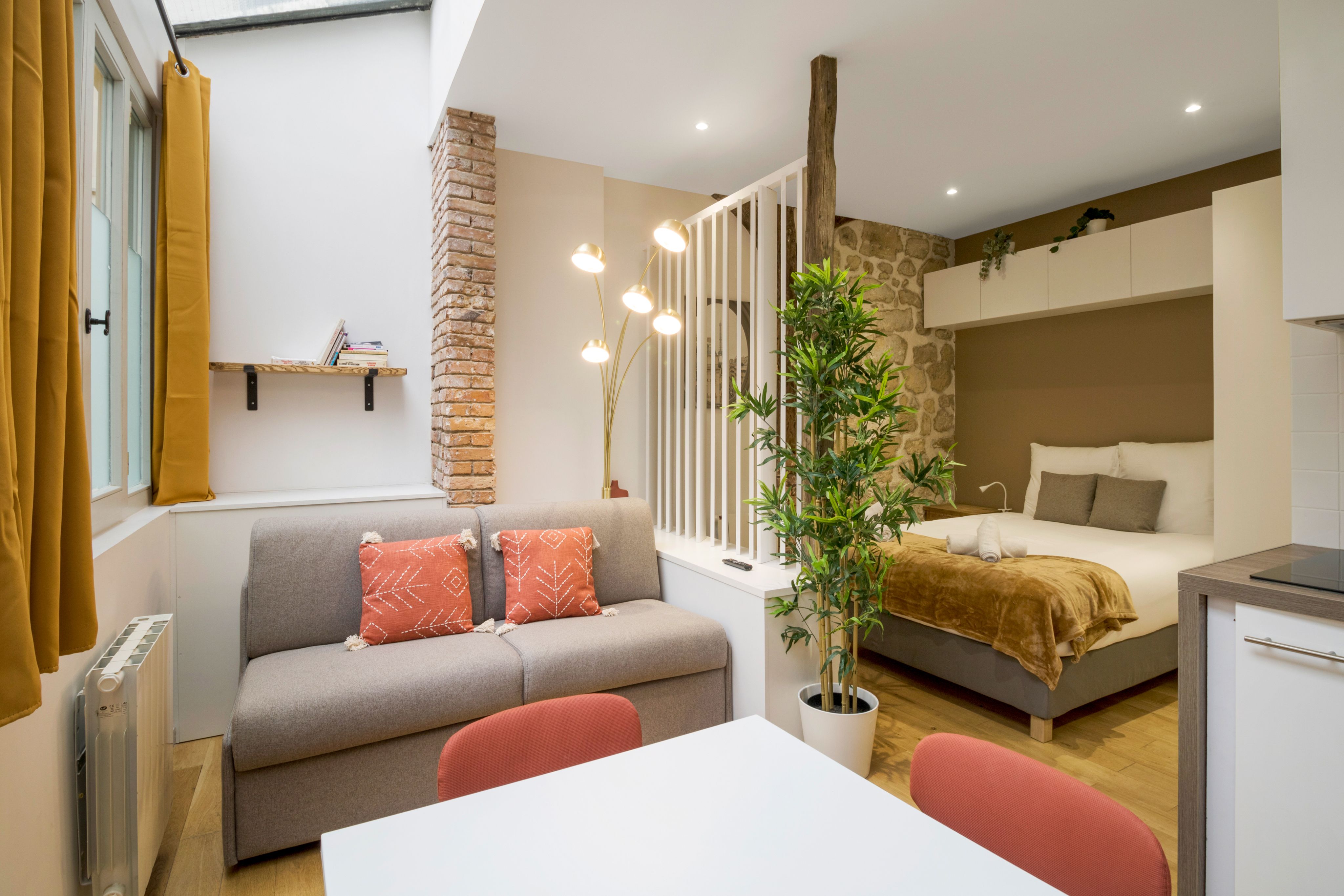 This studio apartment proves that good things do indeed come in small packages. Petite but practical, this is a great choice for a base in Paris, ideal for a small family or a couple. Space and privacy are limited here, so we’d recommend a maximum guest count of two adults and two children, with the children sharing the sofa bed in the compact living space. There are restaurants and cafes nearby, as well as attractions including Le Centre Pompidou. A five-minute walk gives you access to two Metro stations, so seeing the likes of the Eiffel Tower couldn’t be easier.