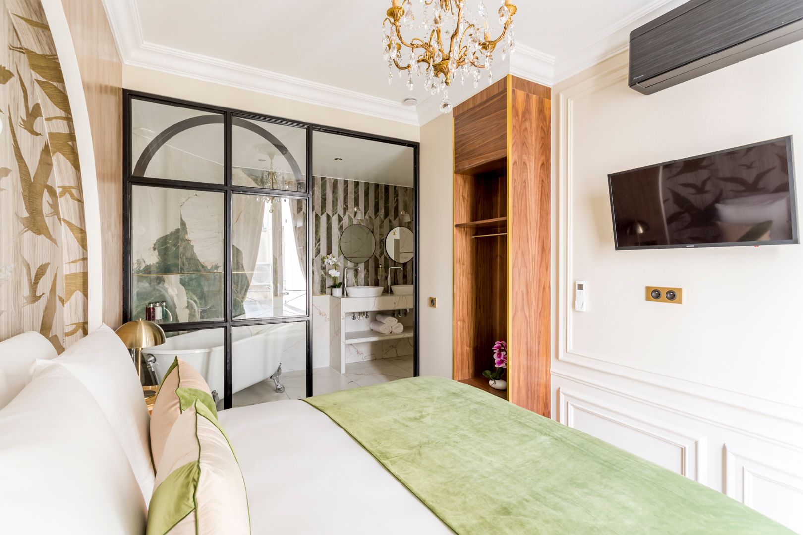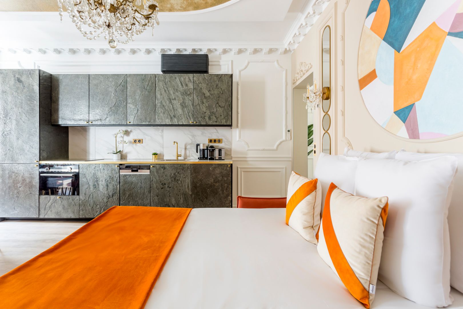 Perfect for large groups on a Parisian adventure, this apartment oozes elegance and charm. There’s plenty of space to spread out here and enjoy some quiet time, or gather together to socialise – though it’s worth noting that as a party of twelve, two people will be sleeping on the sofa bed in the living room. Location-wise, you can walk to the Louvre Museum, Palais Garnier and Place de la Concorde. For trips further afield, hop on the Metro at Champs-Élysées-Clemenceau, a two-minute walk away.
