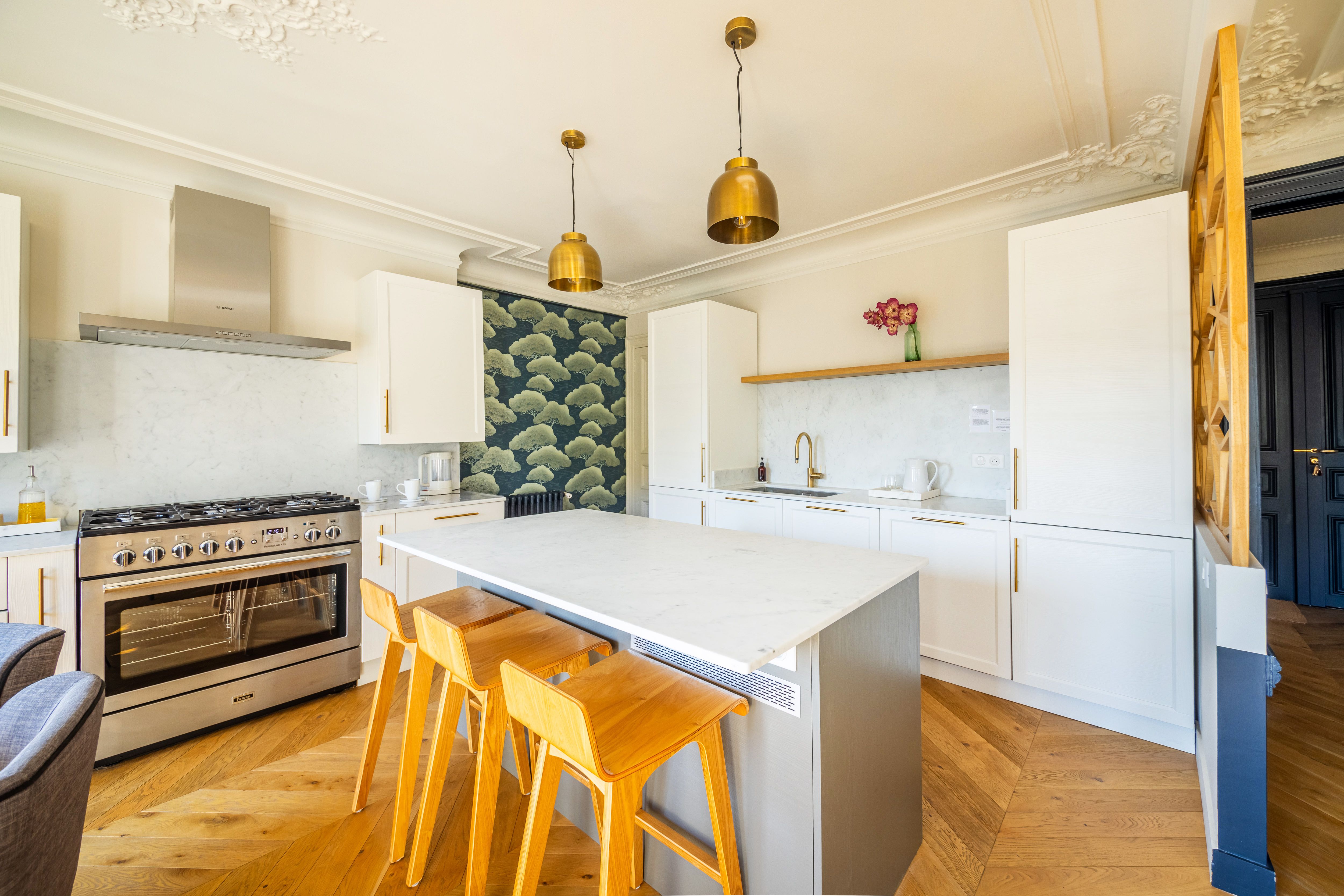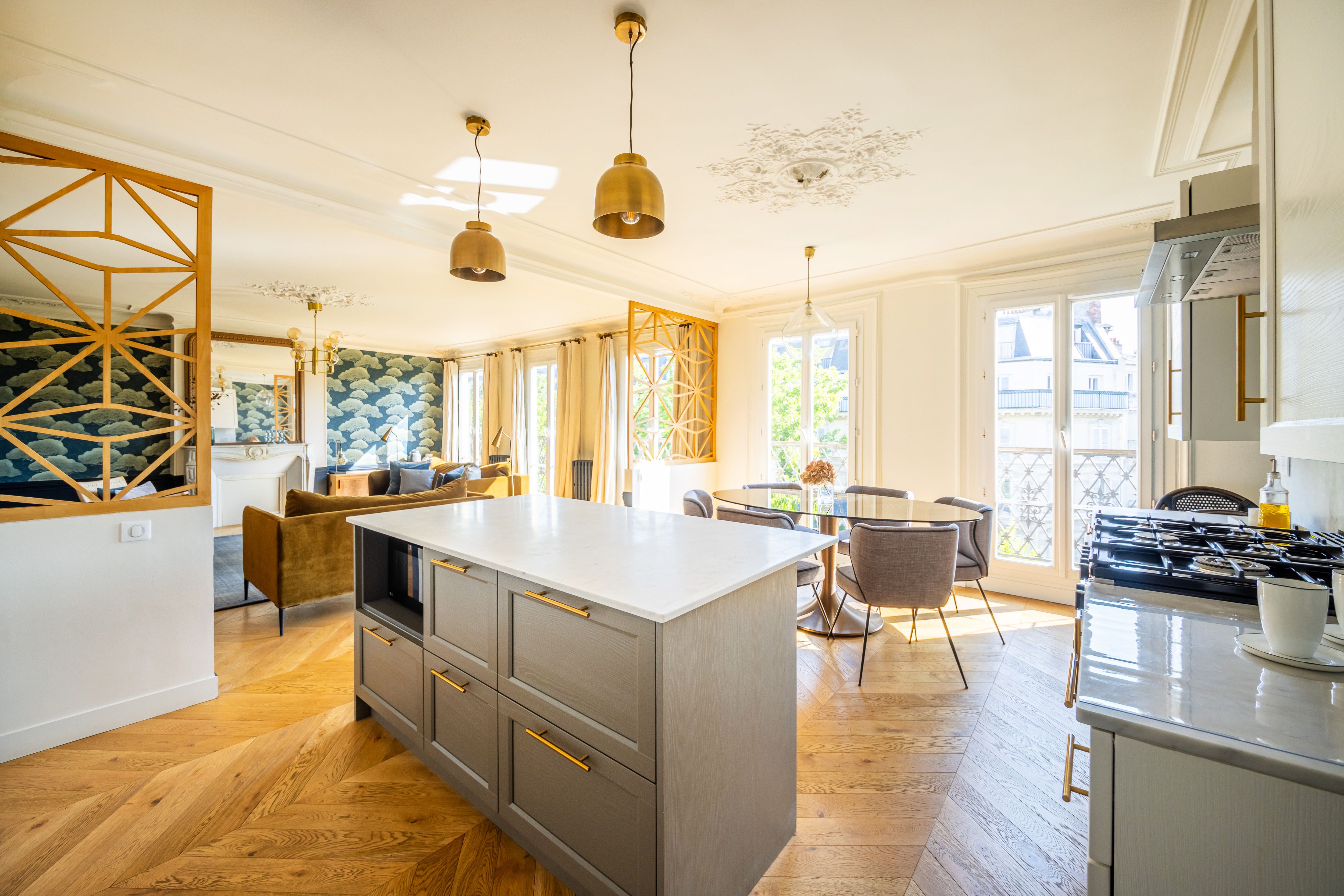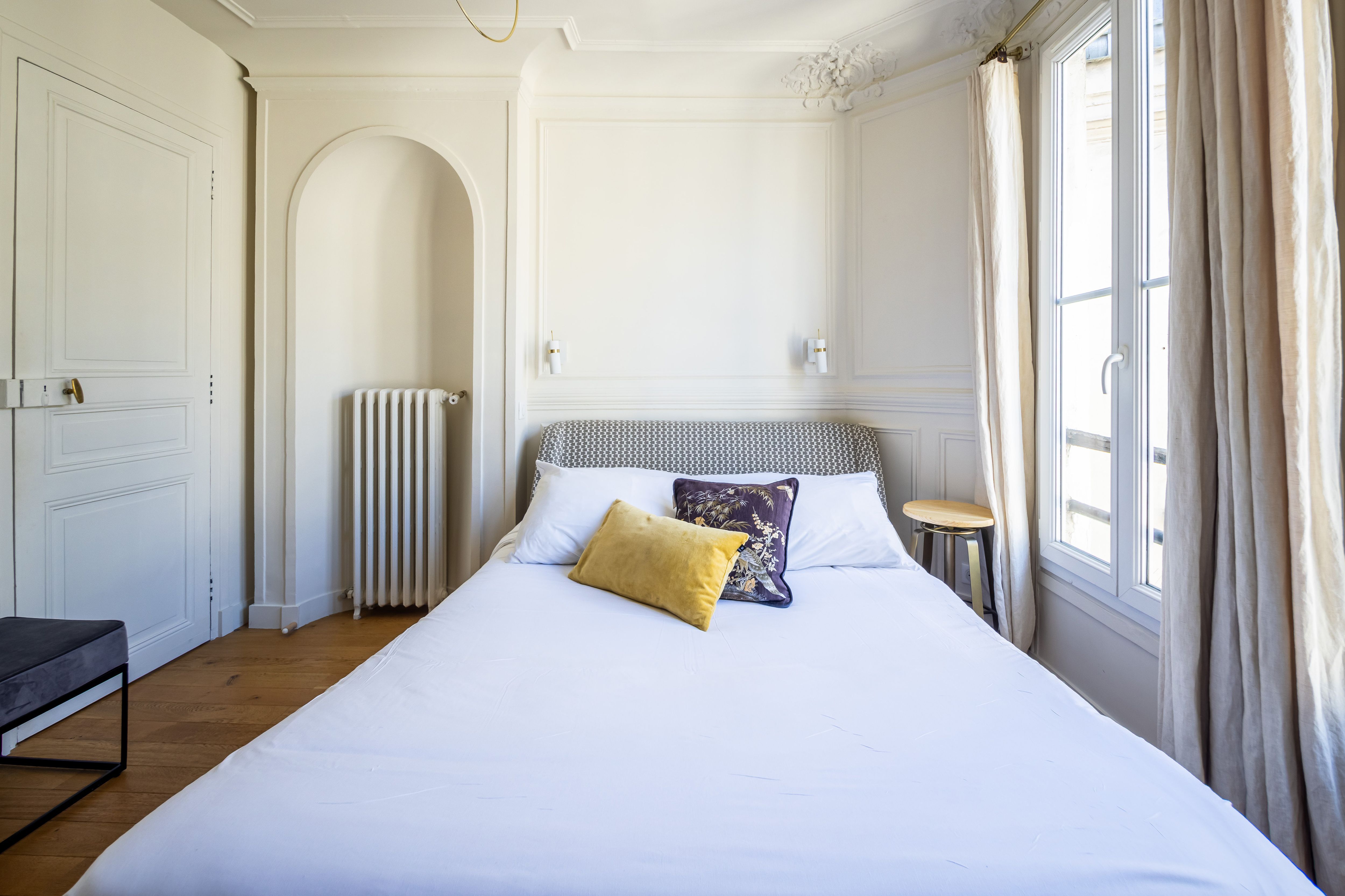 In this elegant, beautifully decorated apartment, you’ll feel like a true Parisian. Located on the fifth floor of a classic Parisian building, this refined space offers a blend of comfort and charm. With three double bedrooms, a fully equipped kitchen, and a large living room, it’s perfect for families and groups of friends. A balcony runs along the kitchen, living room, and main bedroom, offering unobstructed views of the streets below. Excellent transport links make exploring Paris a breeze, and you’ll have shops and eateries right on your doorstep. This is an idyllic home-from-home in the heart of Paris.