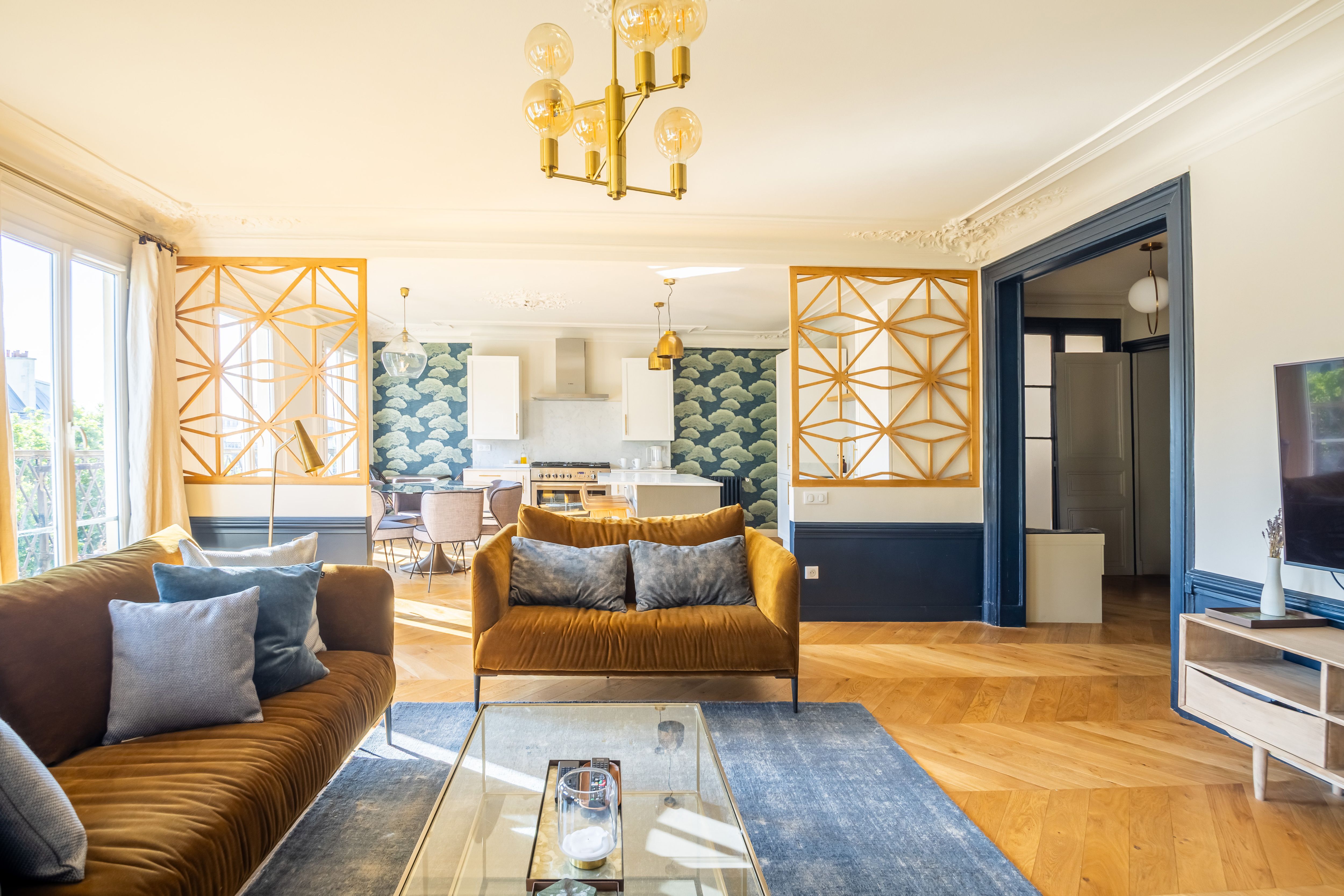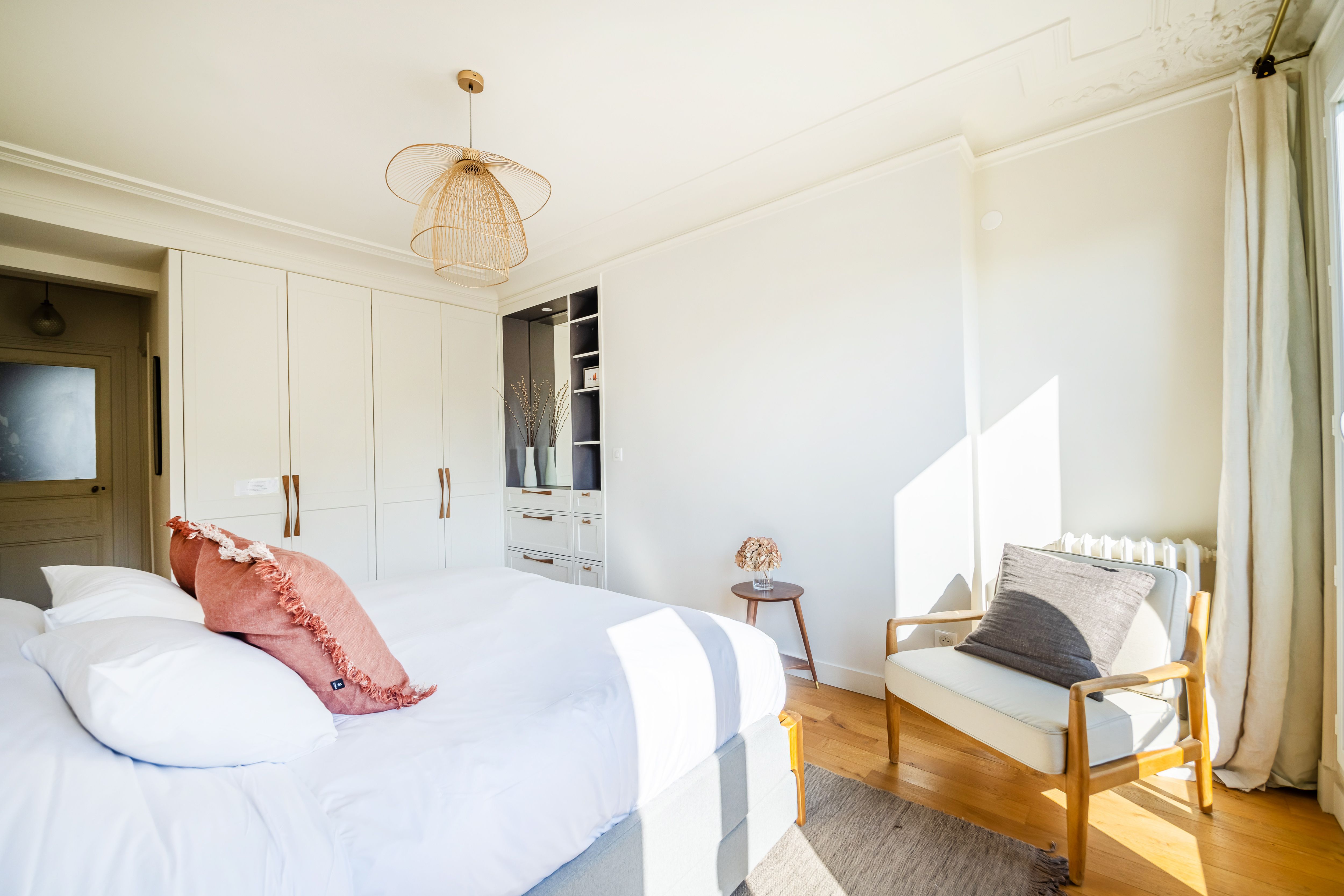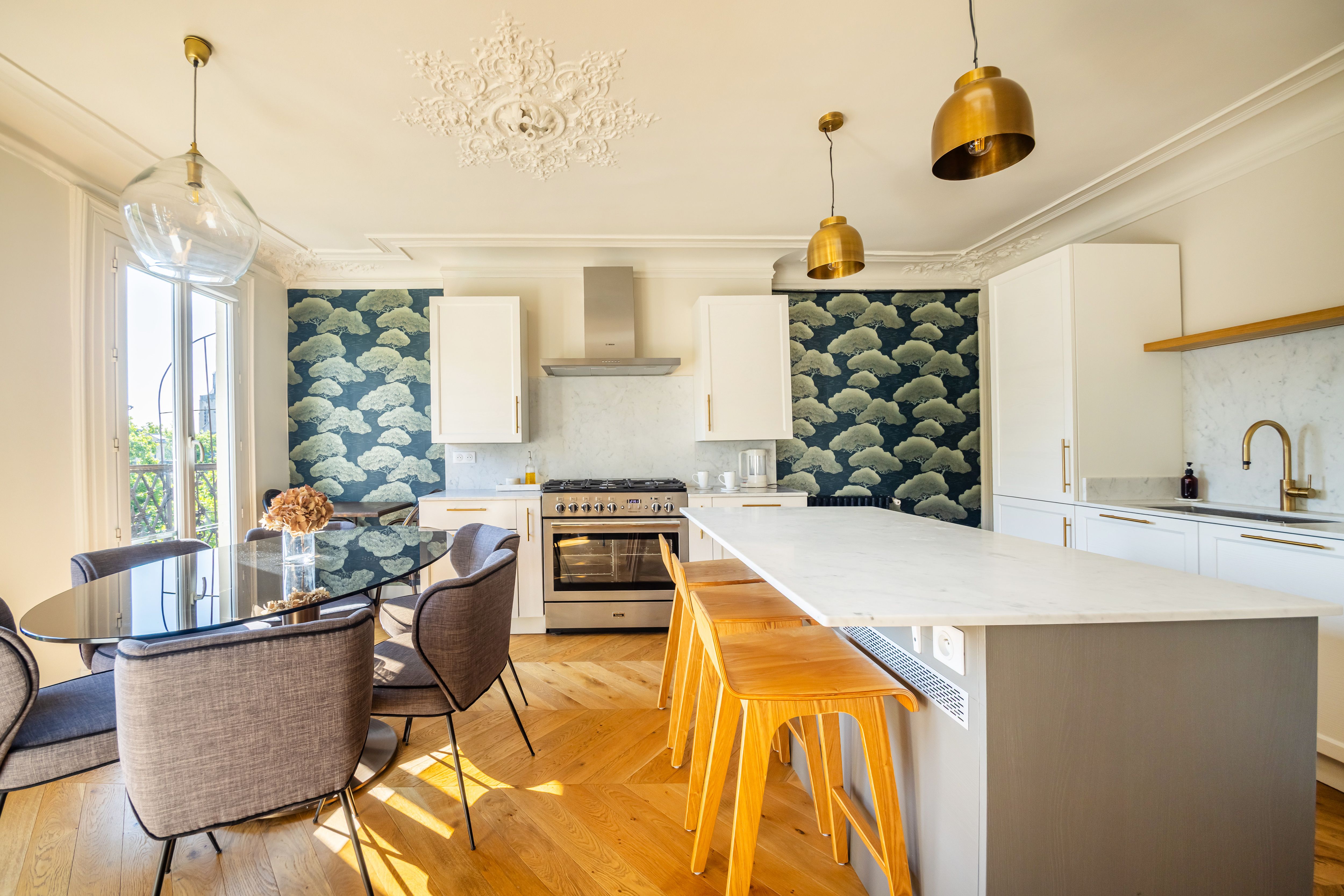 In this elegant, beautifully decorated apartment, you’ll feel like a true Parisian. Located on the fifth floor of a classic Parisian building, this refined space offers a blend of comfort and charm. With three double bedrooms, a fully equipped kitchen, and a large living room, it’s perfect for families and groups of friends. A balcony runs along the kitchen, living room, and main bedroom, offering unobstructed views of the streets below. Excellent transport links make exploring Paris a breeze, and you’ll have shops and eateries right on your doorstep. This is an idyllic home-from-home in the heart of Paris.