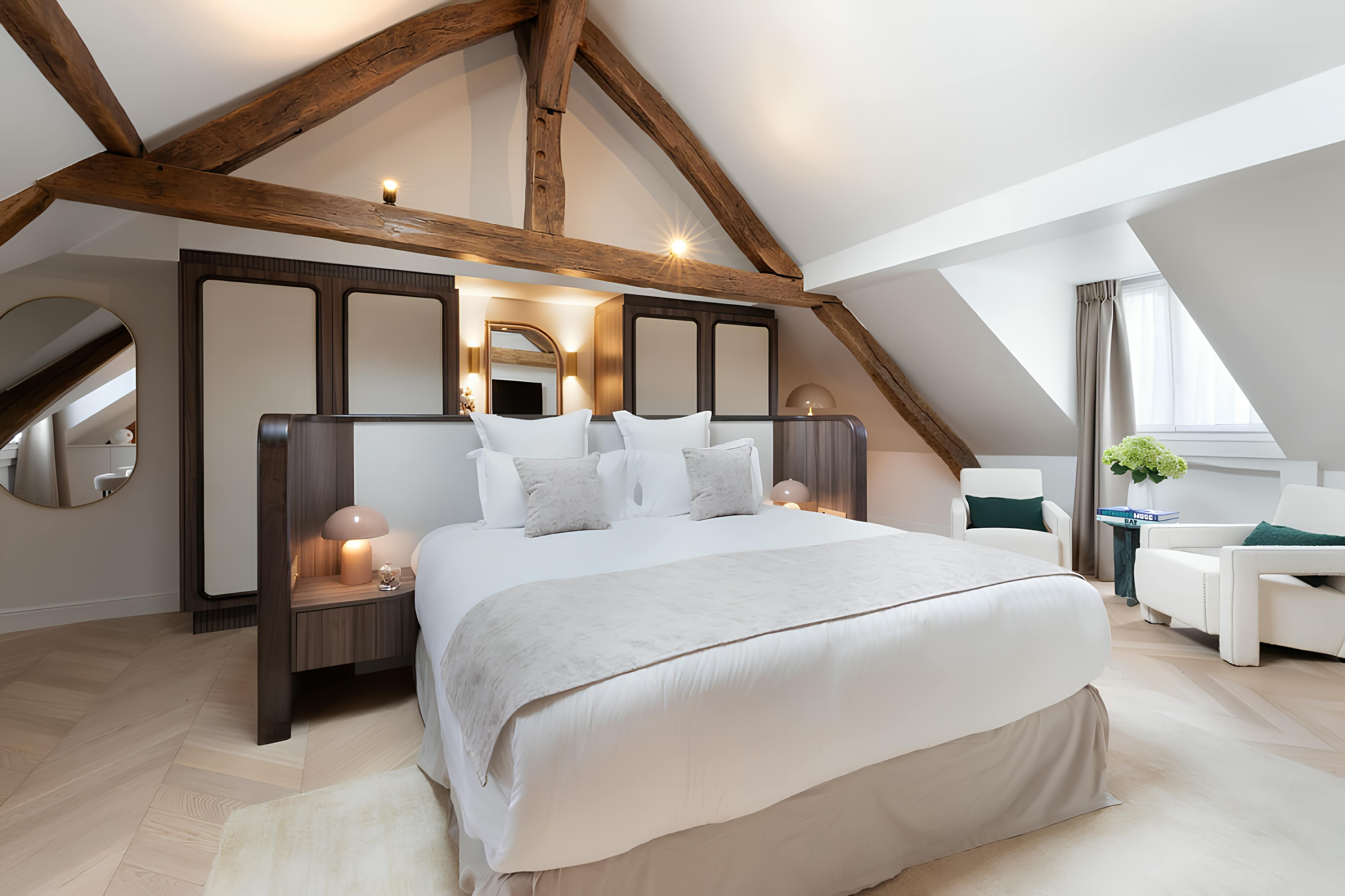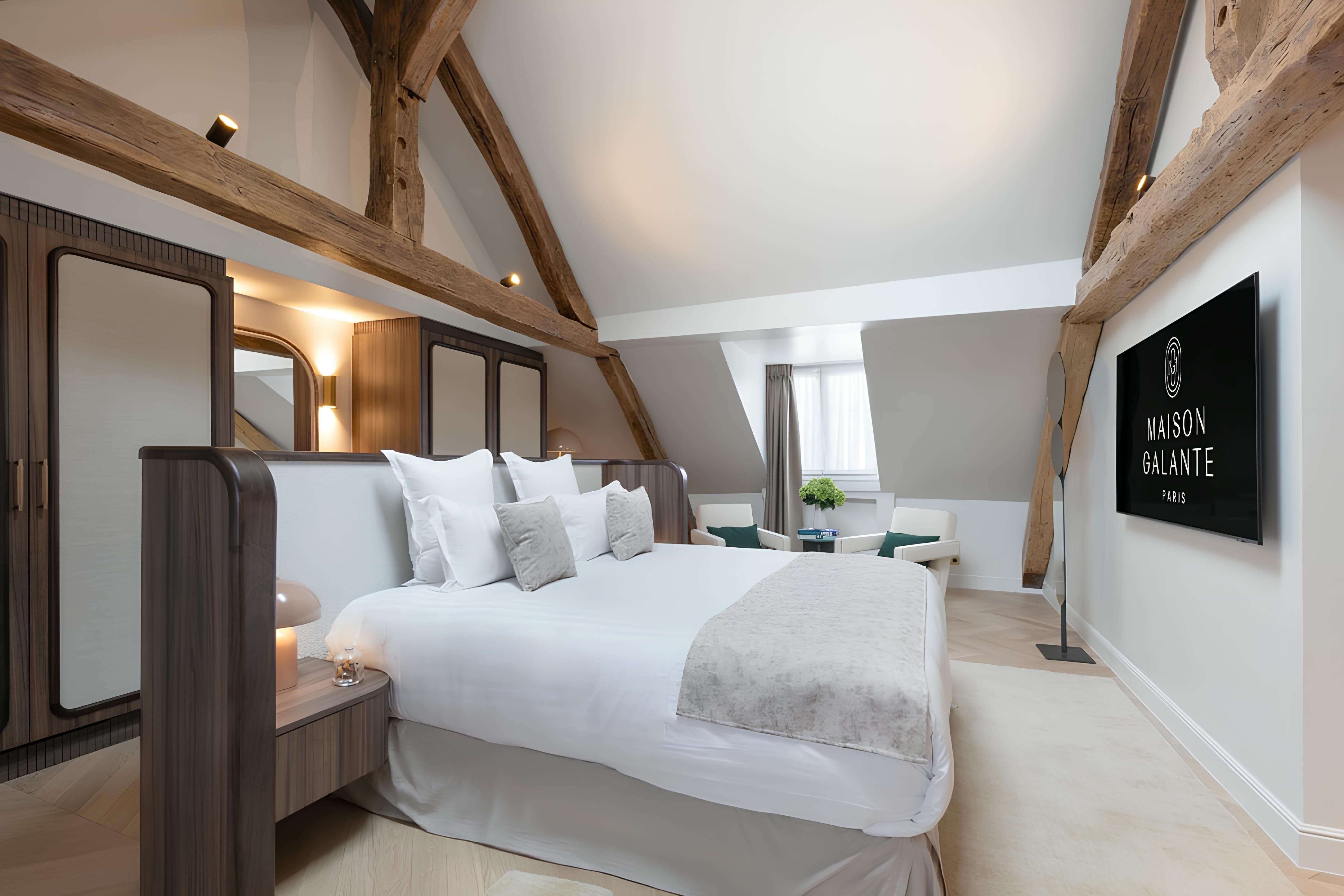 Just steps away from the iconic Rue de Rivoli and mere minutes away from the Louvre, this chic studio apartment puts you right in the cultural heart of Paris. Bright and stylishly appointed, there’s no shortage of home comforts, soft light, and timeless touches throughout. Set on the fifth floor with no lift, you’ll be climbing a few stairs to get here – but once you do, the king-sized bed, marble-accented bathroom and integrated kitchen make it worth the effort. And with daily housekeeping and its superb location in the first arrondissement, you’ll be experiencing Paris at its most classic at this home.