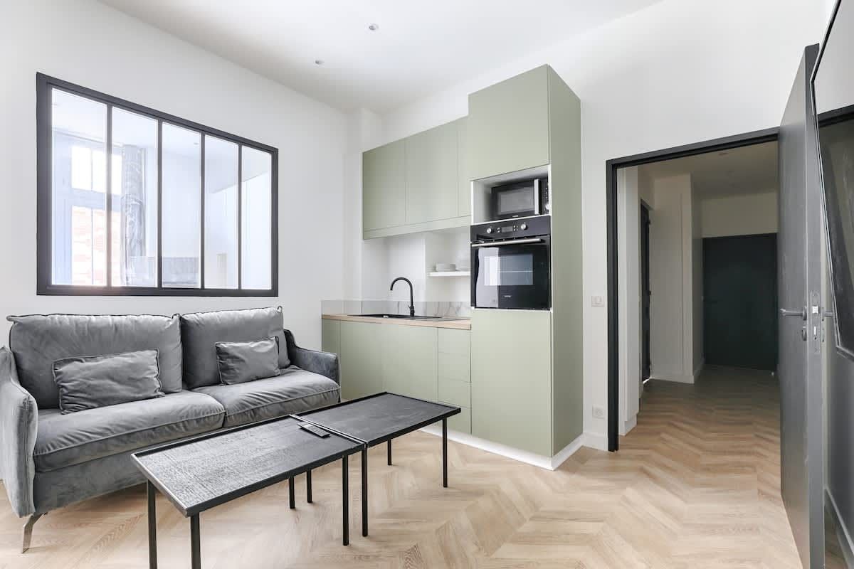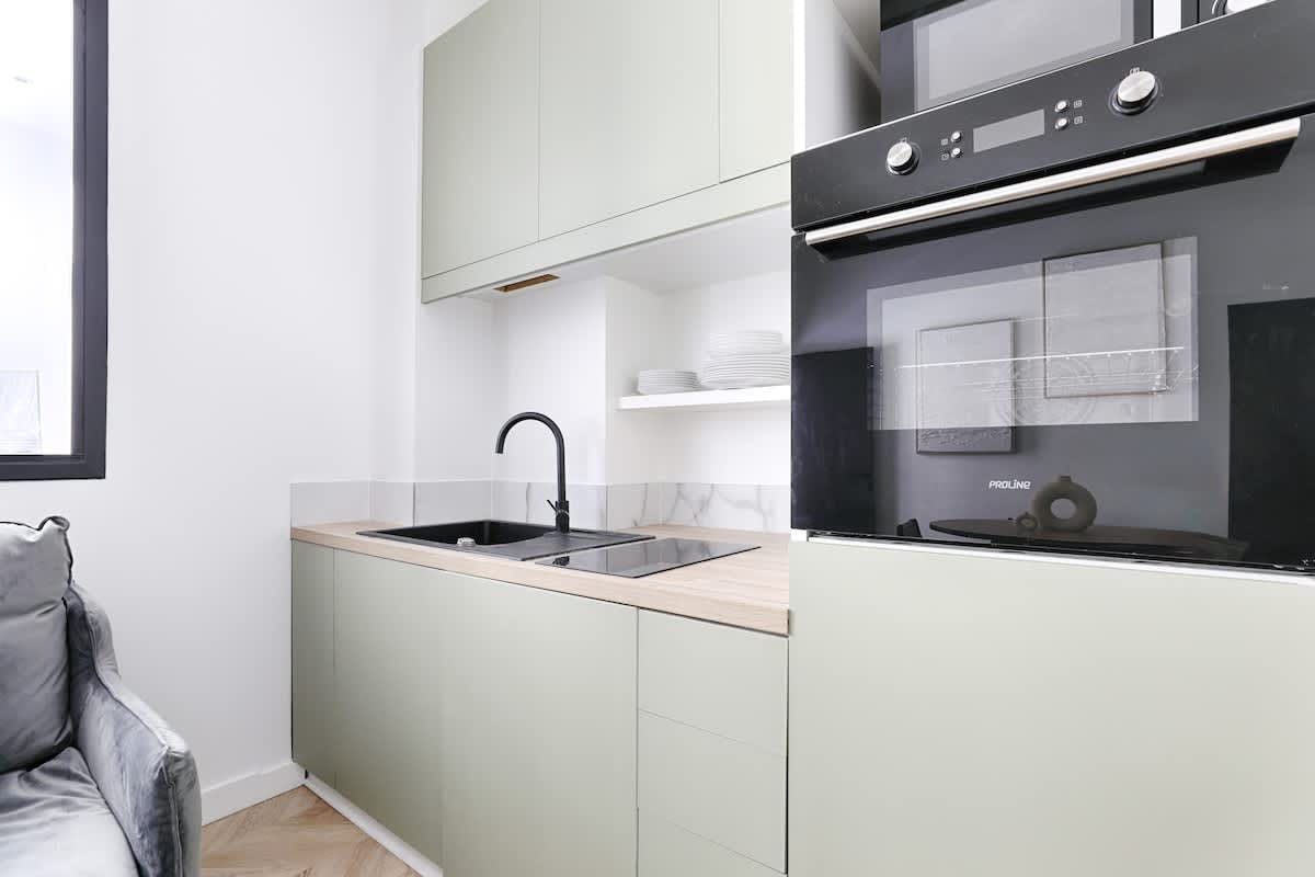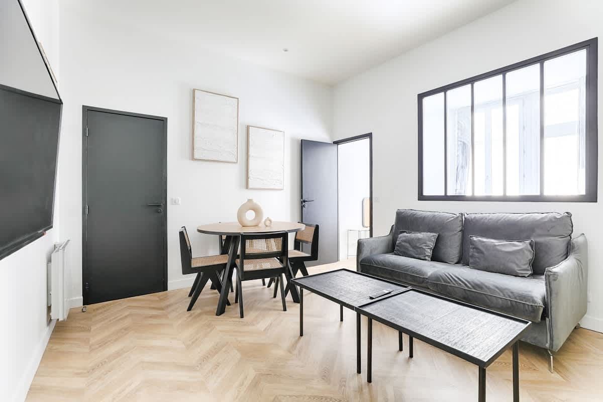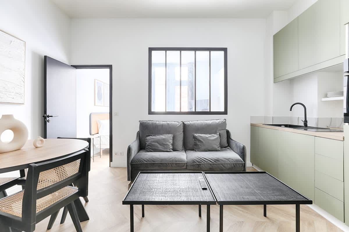 This apartment is situated in the 9th arrondissement, a vibrant area known for its many cultural attractions. You’ve got the Théâtre Mogador right around the corner. And it’s also close to popular department stores like Galeries Lafayette and Printemps, not to mention lots of cafes, restaurants, and shops. Plus, the Louvre Museum and the Palais-Royal are within walking distance, too. Inside this modern apartment, the open-plan living area can also sleep guests three and four on a sofa bed. This place is the perfect base for checking out everything the City of Light has to offer.