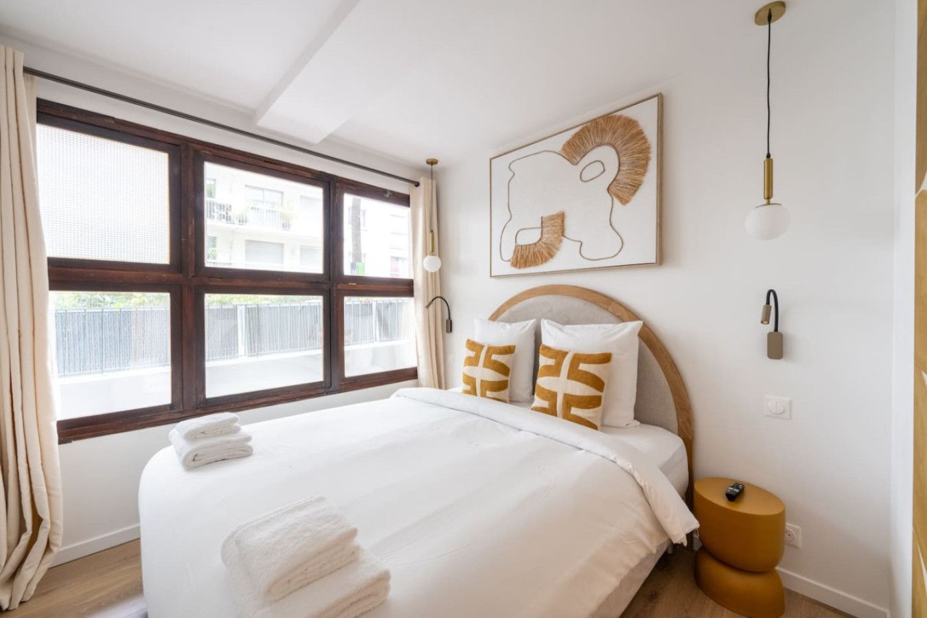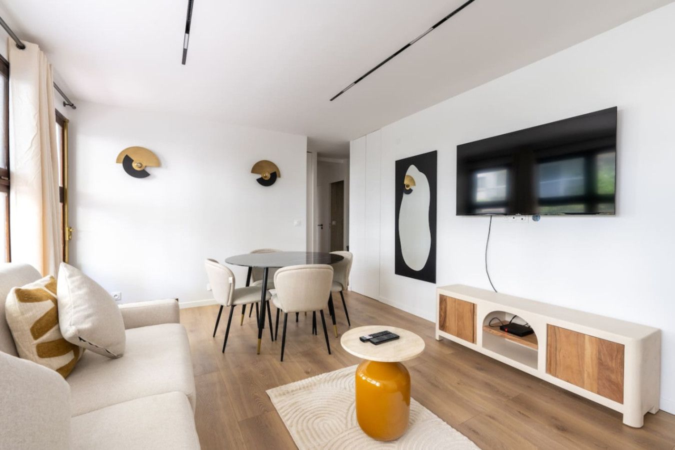 Discover this modern apartment located in the 20th arrondissement. You’ll be within walking distance of several green spaces. And when you want to explore the rest of Paris, the nearby public transport links are great. There is an array of cafes and restaurants in the neighbourhood to enjoy too. This comfy home has a bright living room and features a sofa bed for guests five and six. The kitchen, we’d say, is fairly compact, but it has everything you probably need to cook at home. Ideal for families or friends, this place allows you to live like a local.