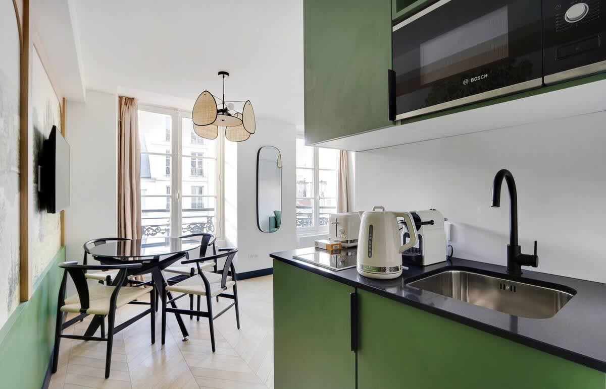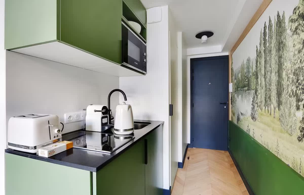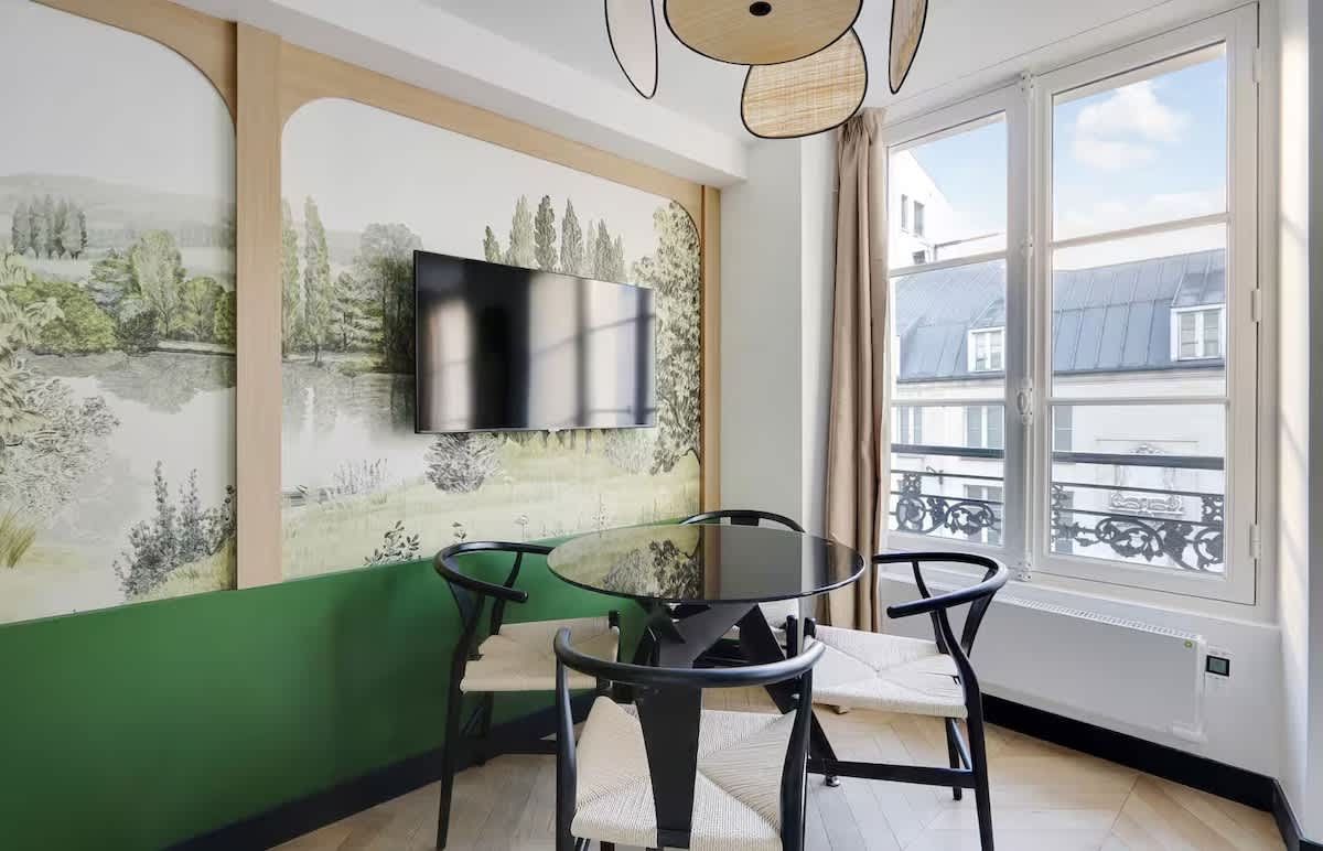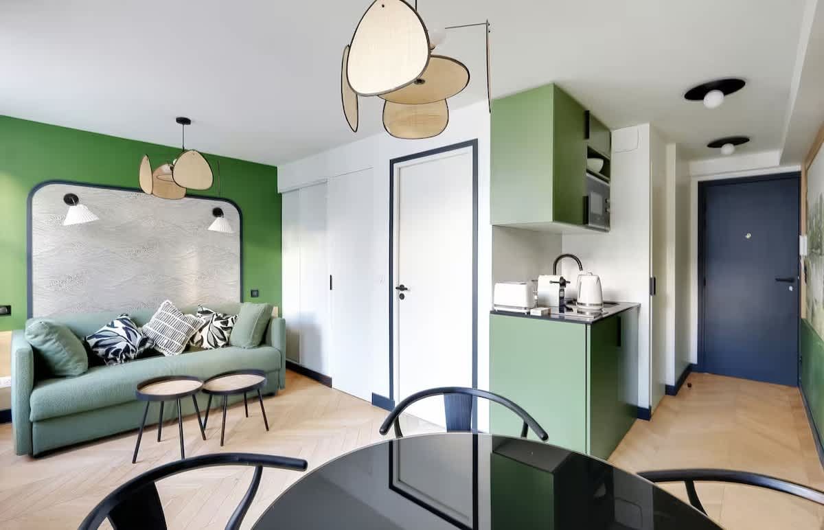 Staying in this studio puts you in an iconic, lively part of Paris. Place de la Bastille is just up the road, and you can walk to Le Marais in minutes. It’s an area rich in history and culture, with countless restaurants and bars. There are also excellent transport links, making it a breeze to travel around Paris. We think this studio apartment is ideal for a couple or a solo traveller, as long as you don’t mind sleeping on a sofa bed. Floor-to-ceiling windows and bold colours make this a bright, welcoming base in Paris.
