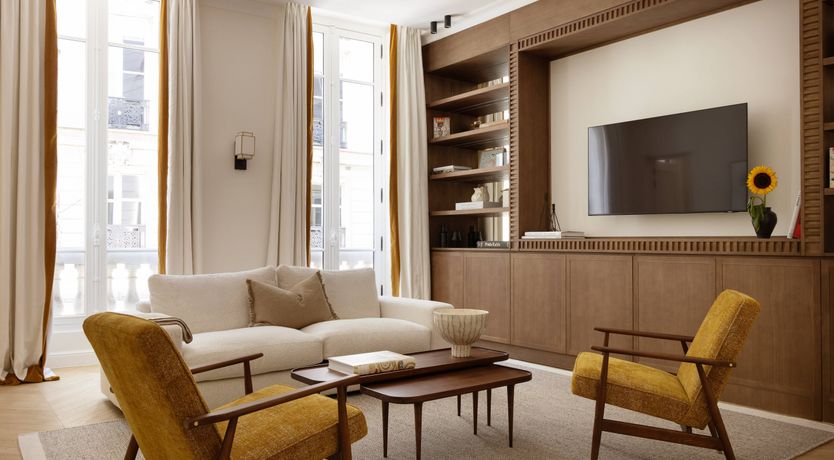 Stylish, comfortable, and central? We're sold. This apartment embodies Parisian living – think high ceilings, a serene living space (which accommodates two on a sofa bed), and all the mod-cons you'll need to settle in. And if that's not enough to love, the location is smack-dab in the heart of the city. Fashionistas can browse the designer shops Madeleine is known for, while foodies will love trying out the high-end culinary offerings in this neck of the woods. Sightseeing more your speed? Palais Garnier, the Louvre, the Arc de Triomphe, and Pont Alexandre III are all within a thirty-minute walk.