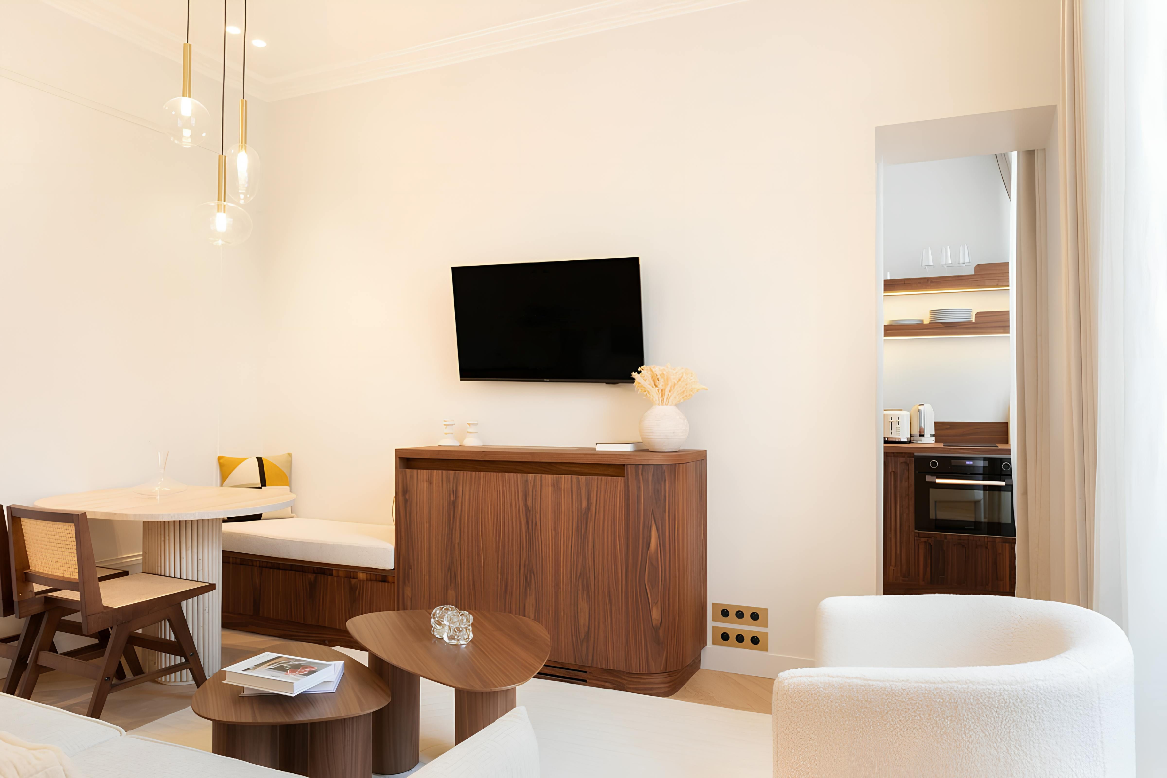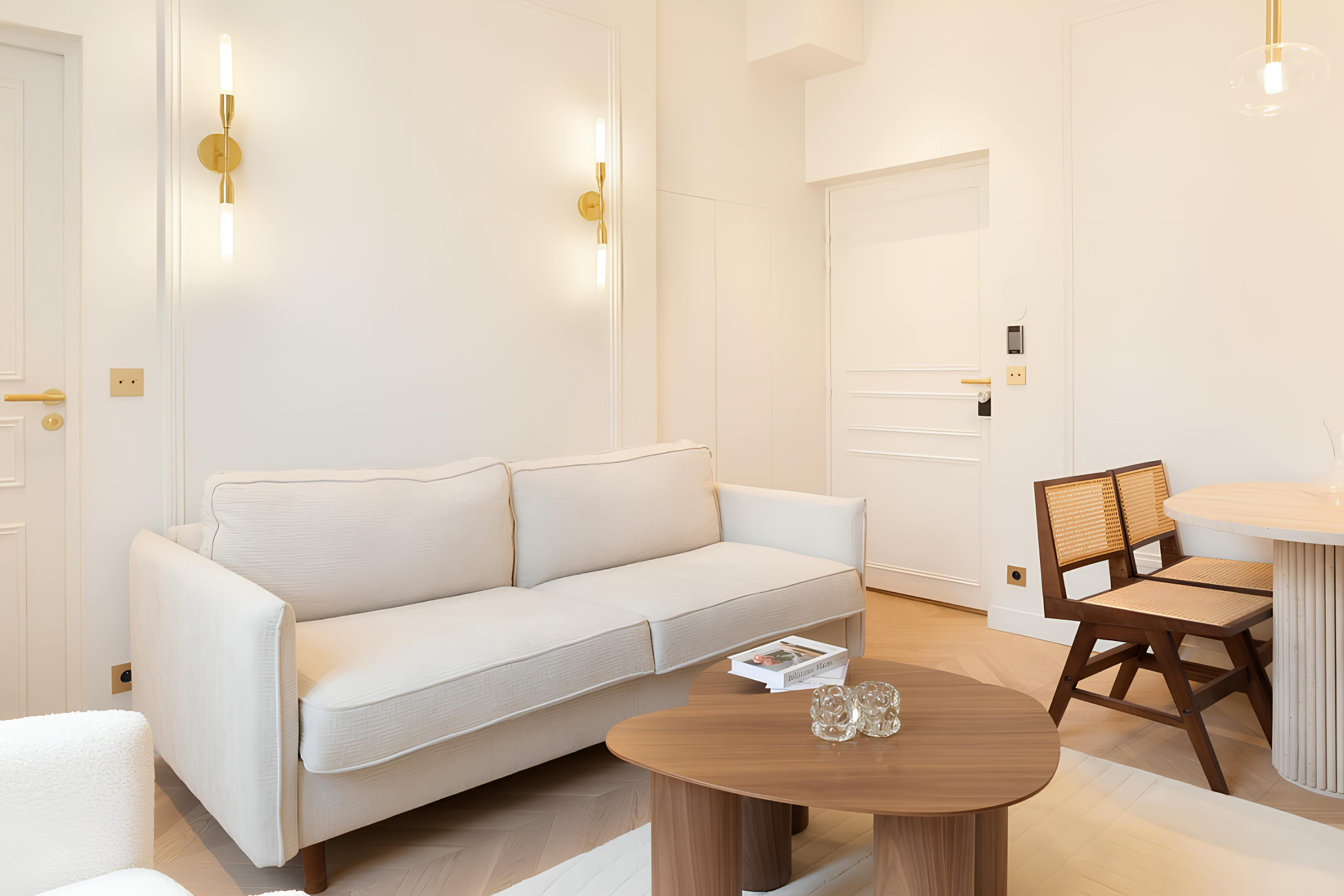 Situated in a vibrant neighbourhood in central Paris, this apartment offers easy access to iconic landmarks, shops, and some of the best restaurants in the city. The Louvre and Jardin des Tuileries are a short walk away, and you can hop on the Metro for further-afield attractions. The apartment is petite but comfortable, with a kitchenette and a dining area adding practicality. At full occupancy, two guests will sleep on a sofa bed in the living space – this does limit privacy, so for longer stays, we’d stick to a guest count of two.