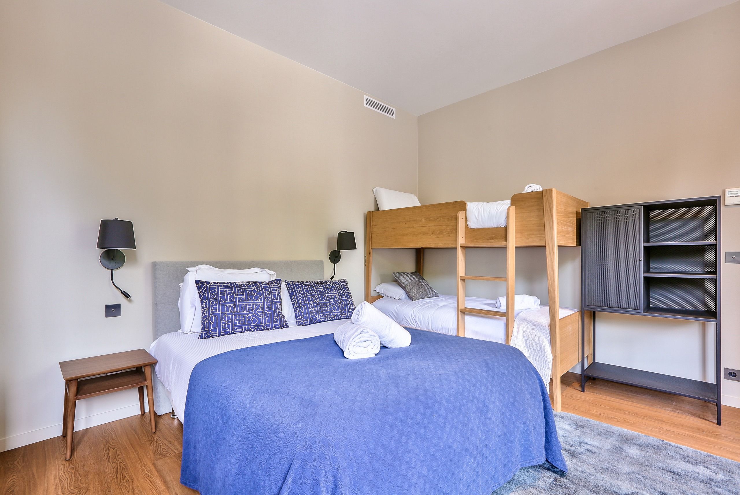 This home makes an excellent city-centre base for a large group of friends or family. Located in a classic Haussmannian building, guests will find ample space to unwind in the open-plan living room – though there's only enough room for twelve at the dining table. The sleeping arrangements are ideal for those with young children – there's a bunk bed in one of the double bedrooms – but the prospect of sleeping on sofa beds might not suit everyone. Your stay includes access to a nearby gym, but you might not have time to visit – there are numerous parks and museums to explore, including the famed Louvre, which is just a twenty-minute walk away.