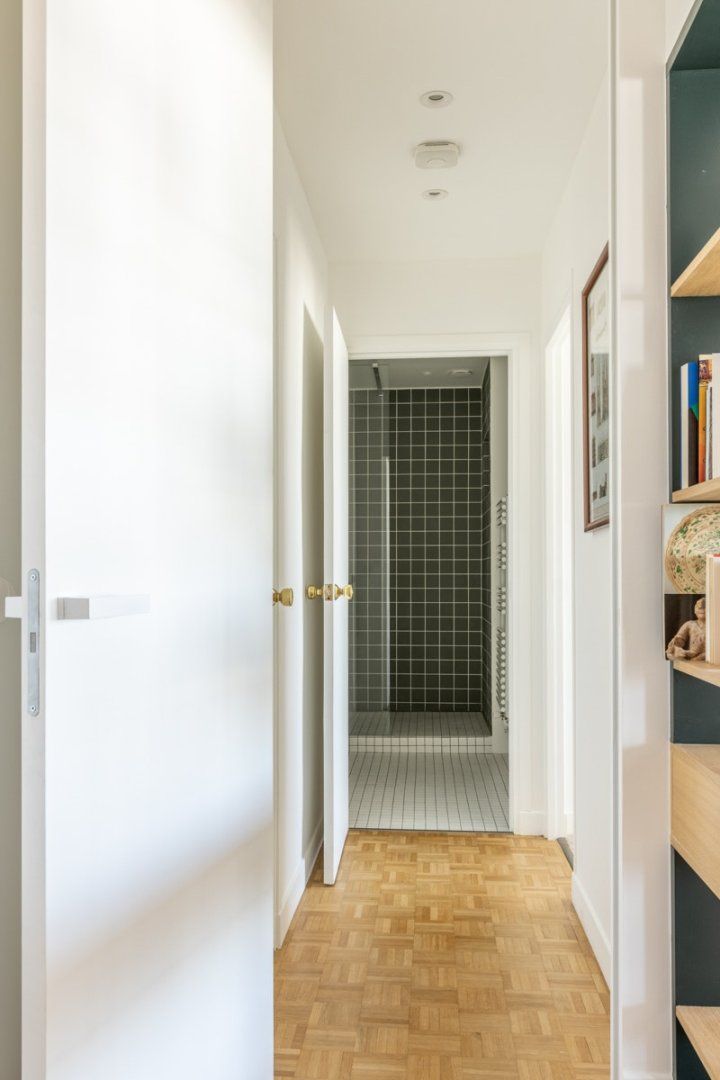 Vast sliding doors frame the vista and offer easy access to the private balcony that runs the entire width of the apartment. Glance down, and you'll notice that the flat overlooks an interior garden, placing some distance between your sleeping space and the street – perfect for a romantic city escape.