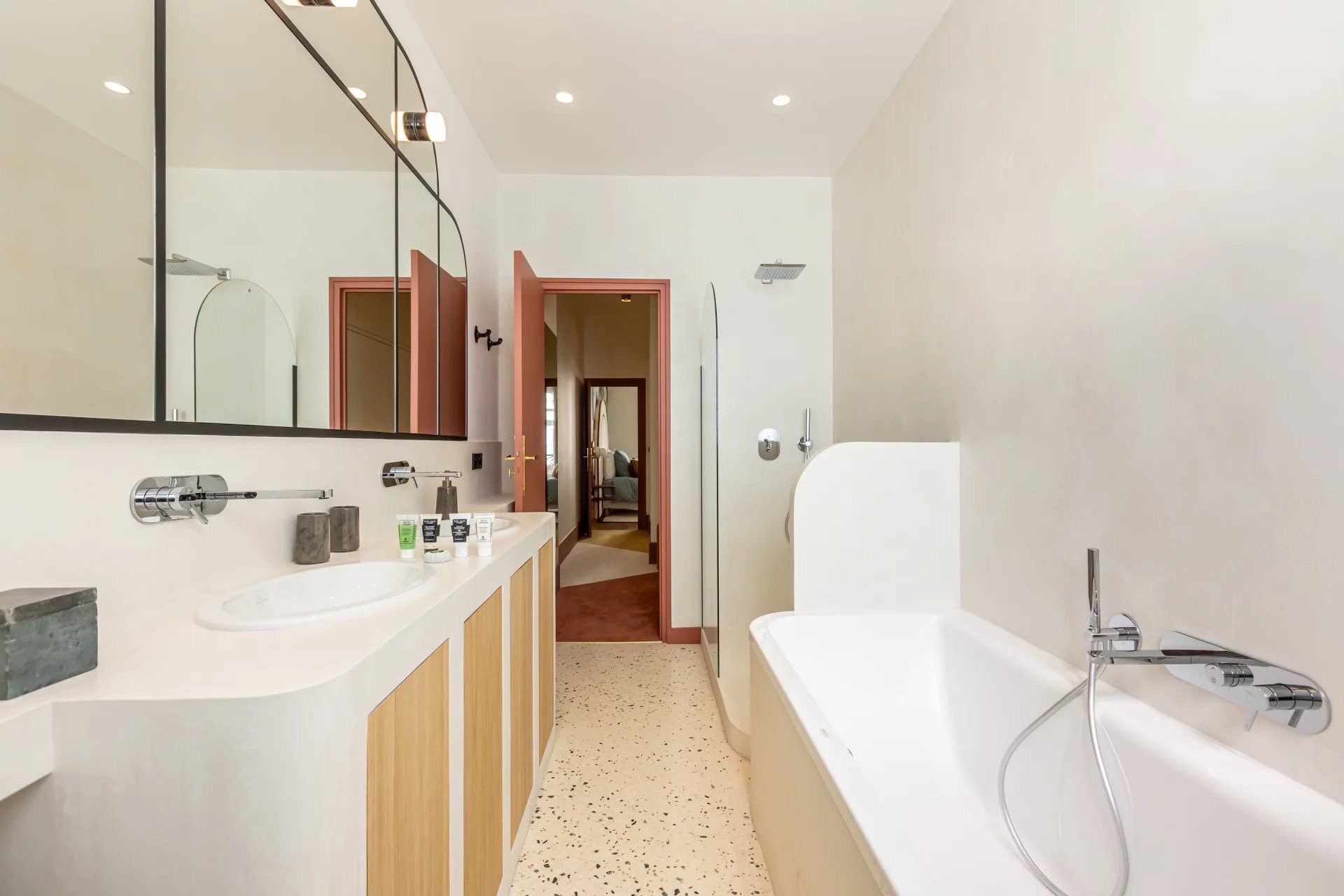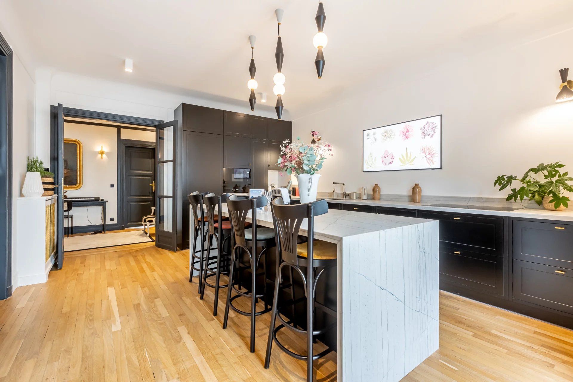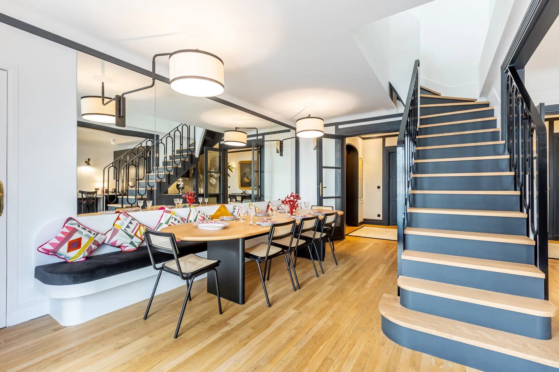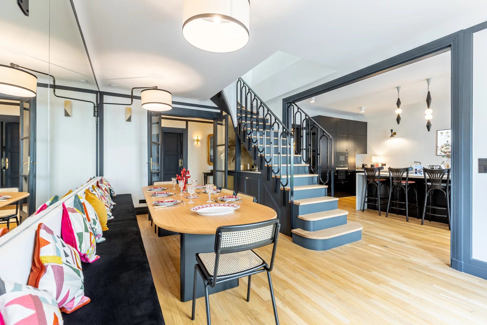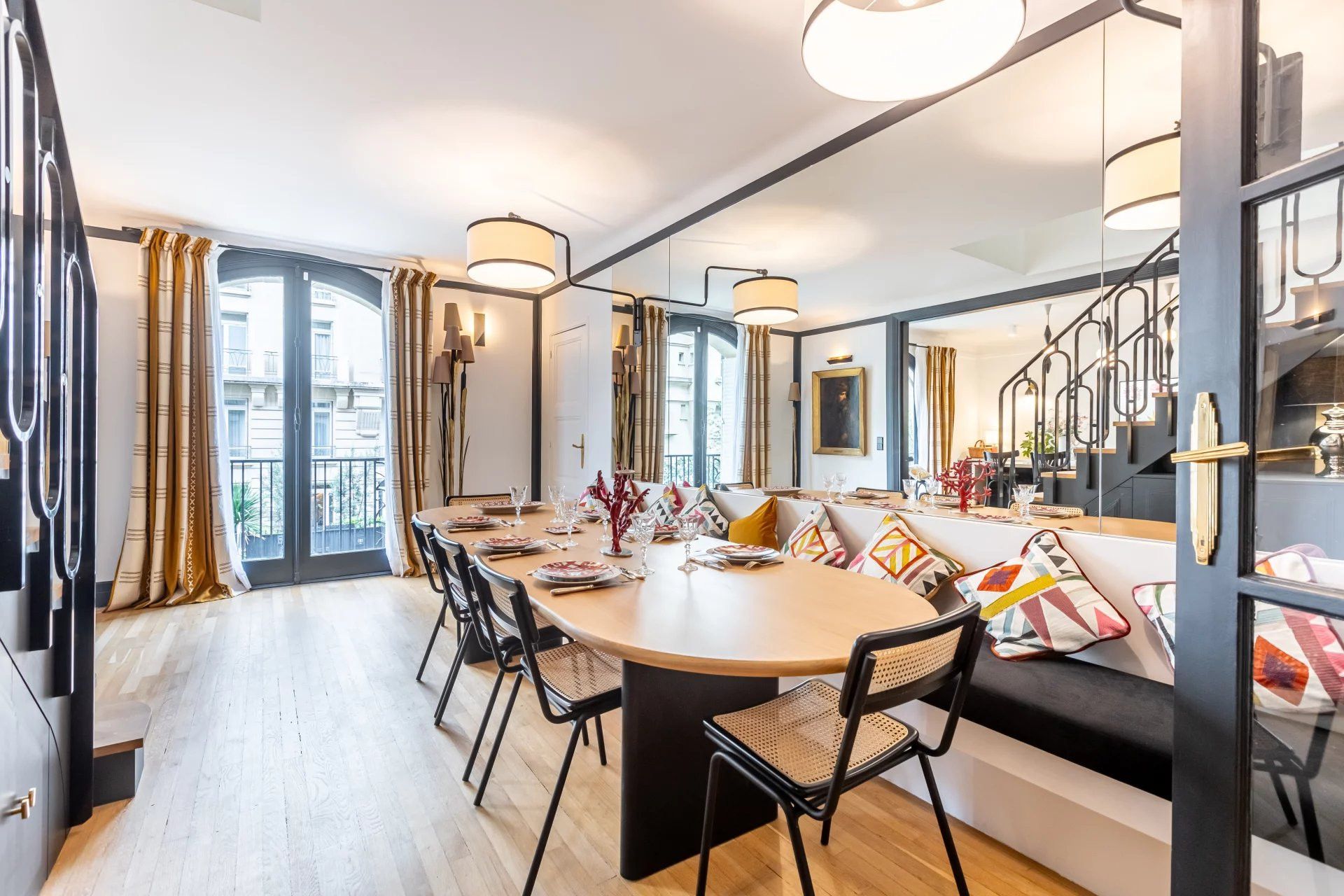 Set within the glamourous 7th arrondissement, this home is like a romantic image of a Parisian apartment. You're seconds away from the Champs de Mars here, meaning you'll see the Eiffel Tower up close each time you head outside to explore. Location isn't all it has to offer, though – there are lots of Juliette balconies to peer out over, and we love the great sense of style that is present throughout. And if you plan on spending lots of time together, the large dining area and living room are perfect for socialising with your morning baguettes or wine nightcaps.
