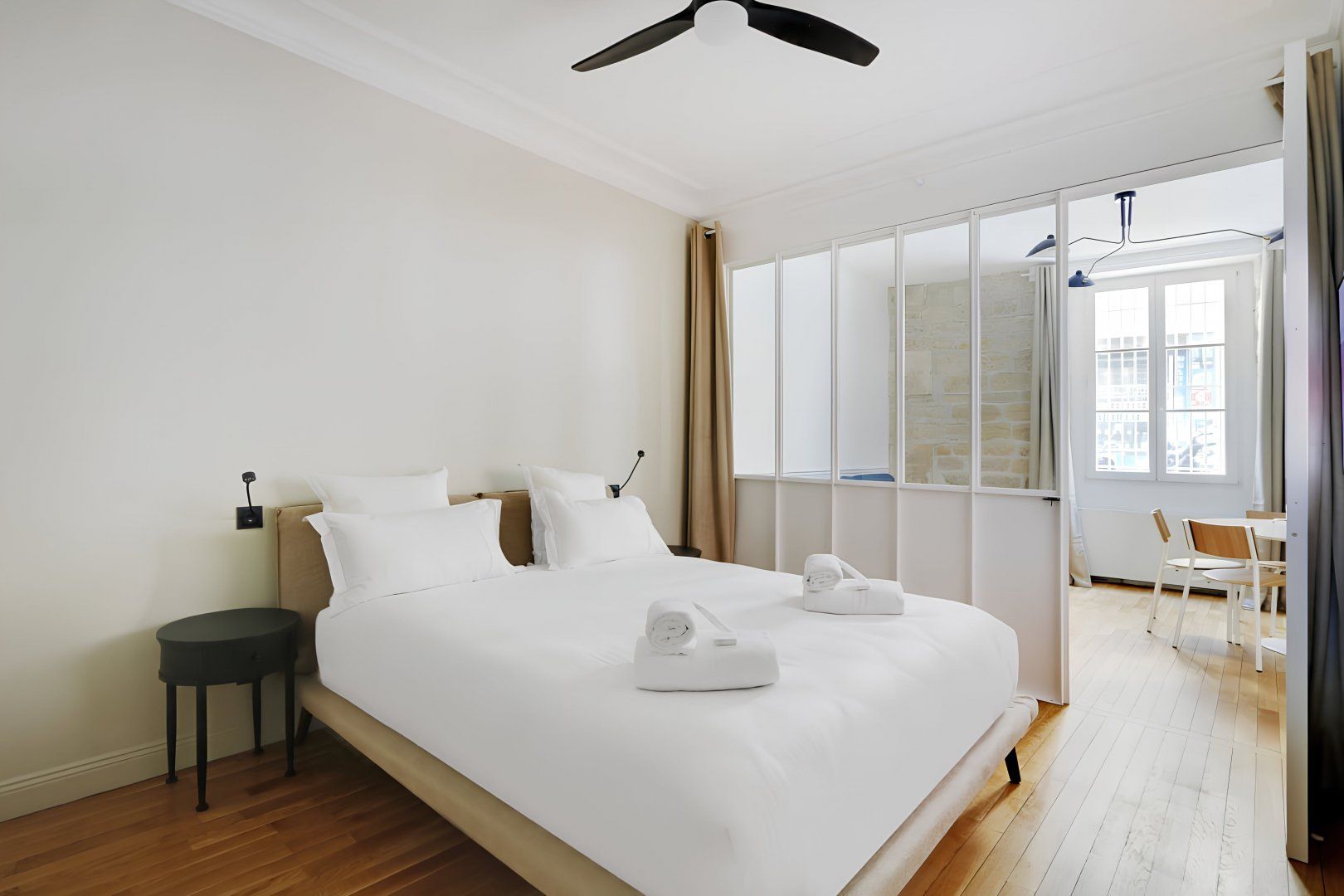 Home truths: *At full occupancy, two people will be sleeping on a sofa bed in the living area. *You'll be able to check yourself in here. *This is a single-level apartment located on the ground floor. *The rustic interiors might not be to everyone's taste. *Given the home's central spot, expect to hear some street noise throughout your stay. *There's a laptop-friendly workspace for those travelling on business. *We recommend skipping the car here and exploring Paris on foot or by public transport instead.