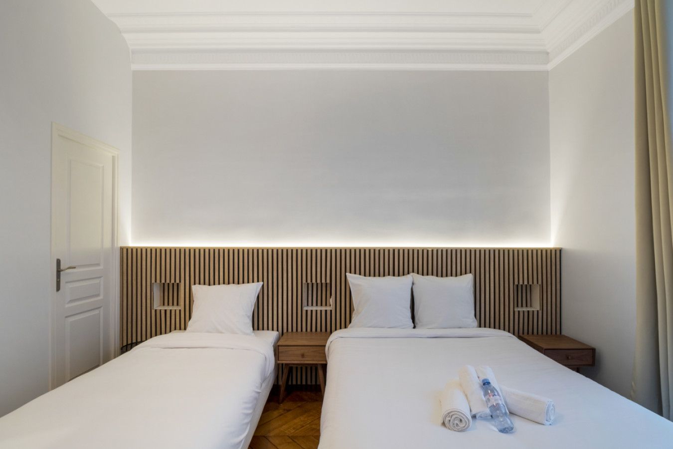 Mere minutes away from Gare du Nord and Gare de l’Est, this apartment is a dream if you’re catching the Eurostar or travelling to Paris from regional France. With its elegant parquet flooring and high ceilings, it’s the picture of Parisian interior architecture, and offers all the amenities you’d expect for such a home. Though there may not be enough room on the sofa when it’s at full occupancy, the location more than makes up for it – discover all that the tenth arrondissement has to offer, including the picturesque Canal Saint-Martin.