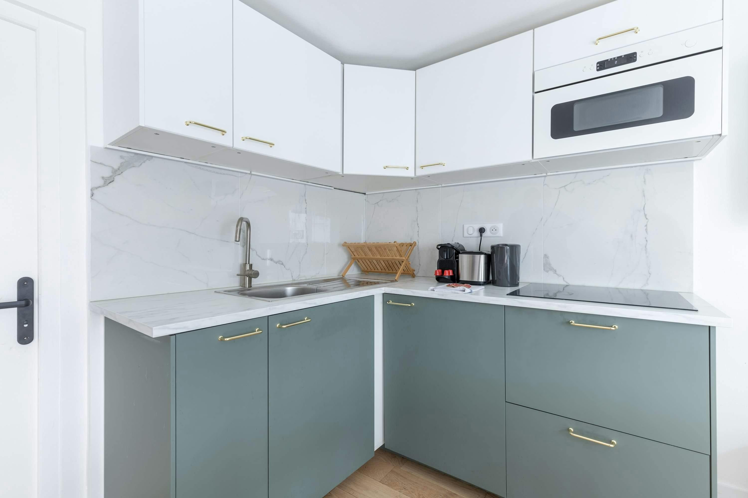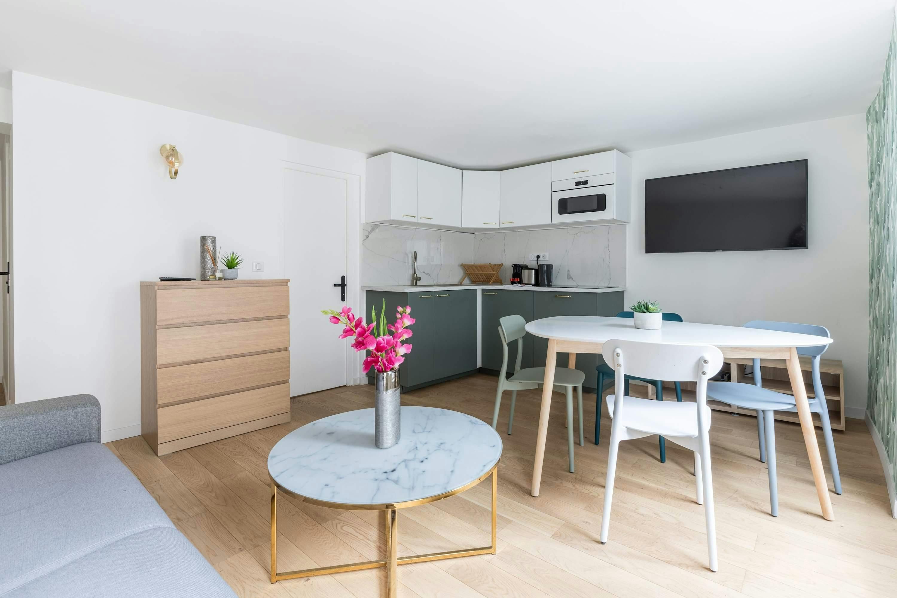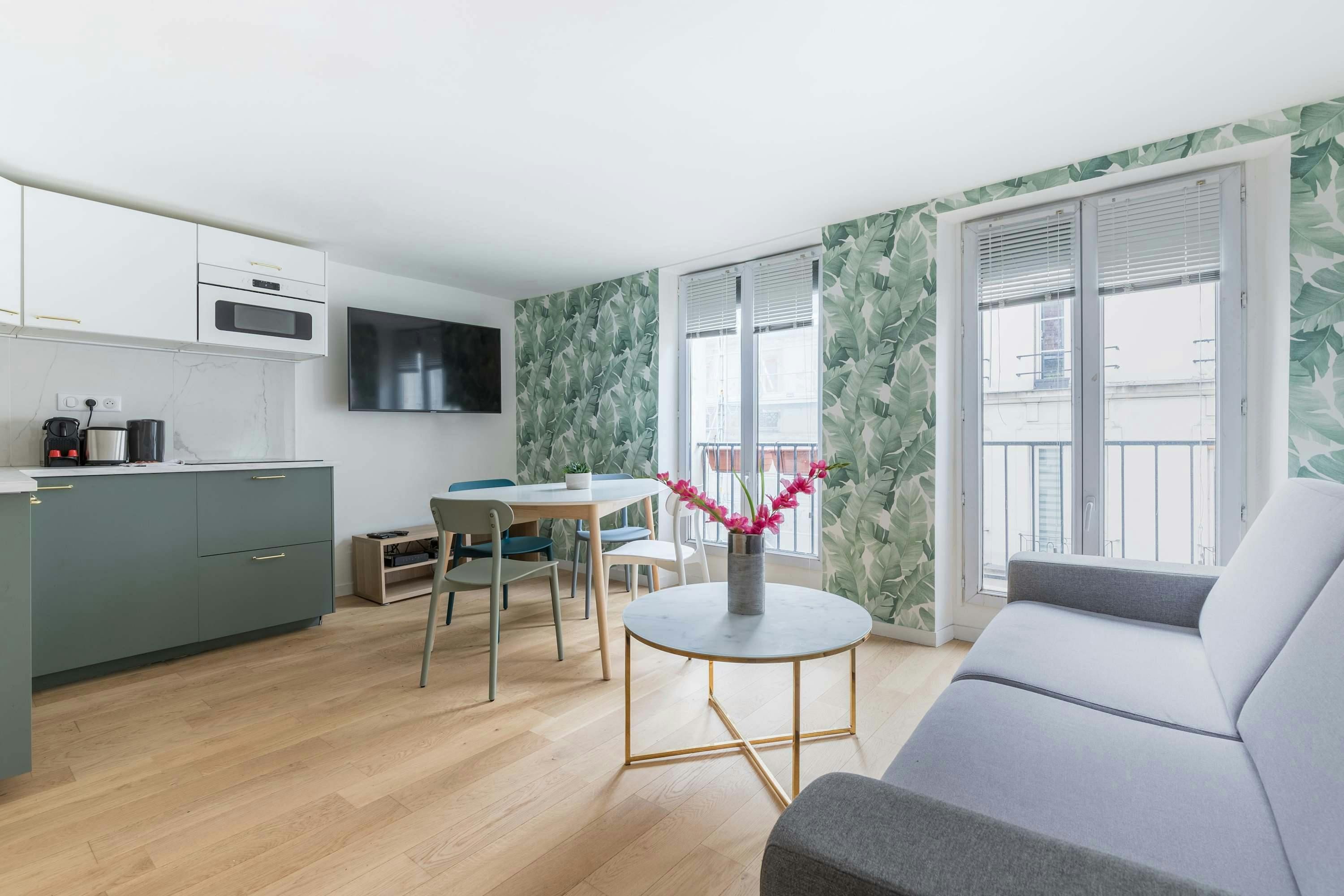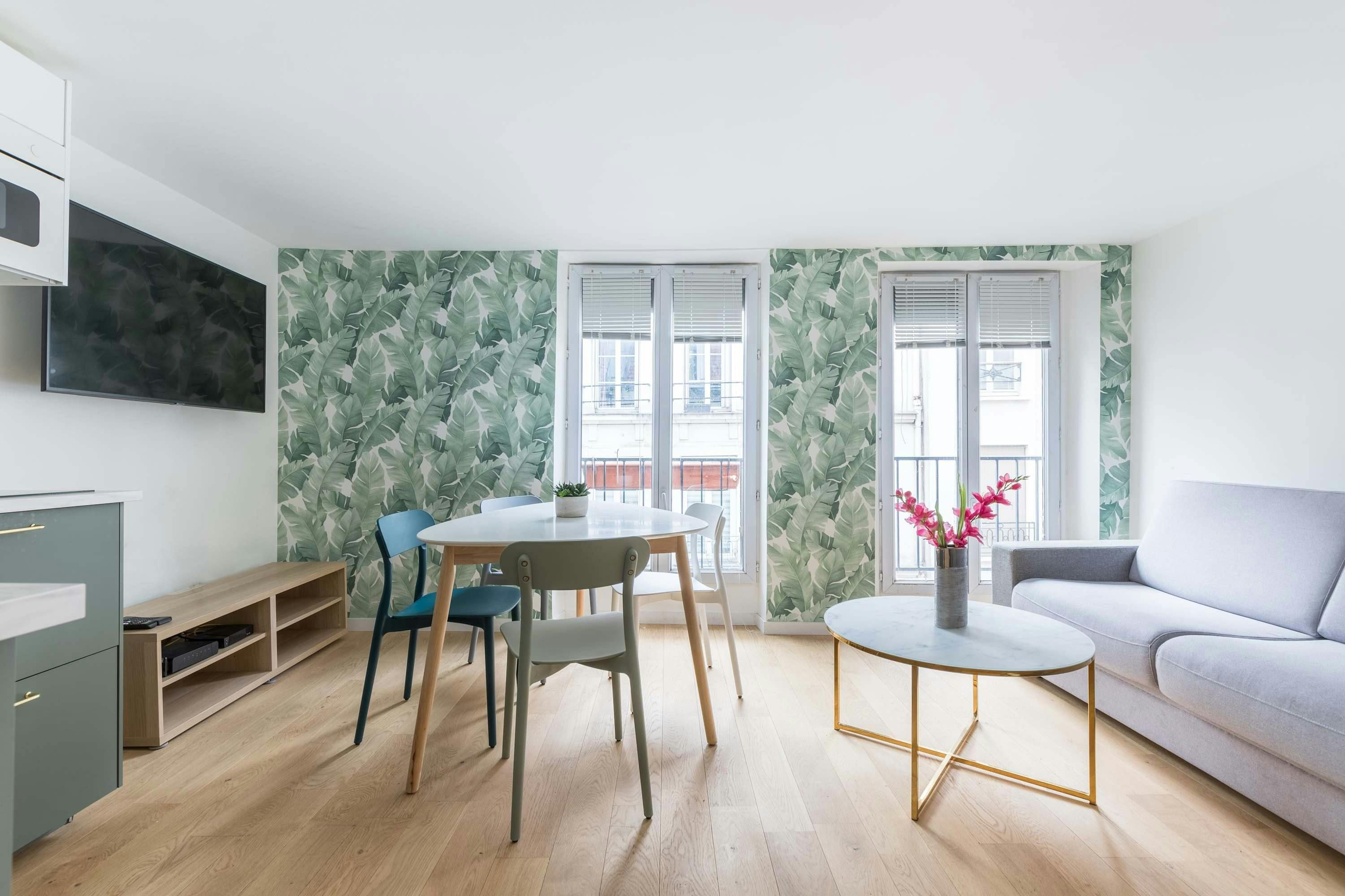 This central Parisian apartment is ideal for couples, professionals, or small families visiting the city. The sofa turns into a bed for two and the dining table for four is ideal for sharing light meals or using as a desk. There's only a small kitchenette here, but in such a central location, you'll have your pick of authentic bistros and wine bars. There's a metro stop a few steps away, but you'll also be within walking distance of prime spots like the Louvre and the Opera, and there's even a chocolate museum around the corner.