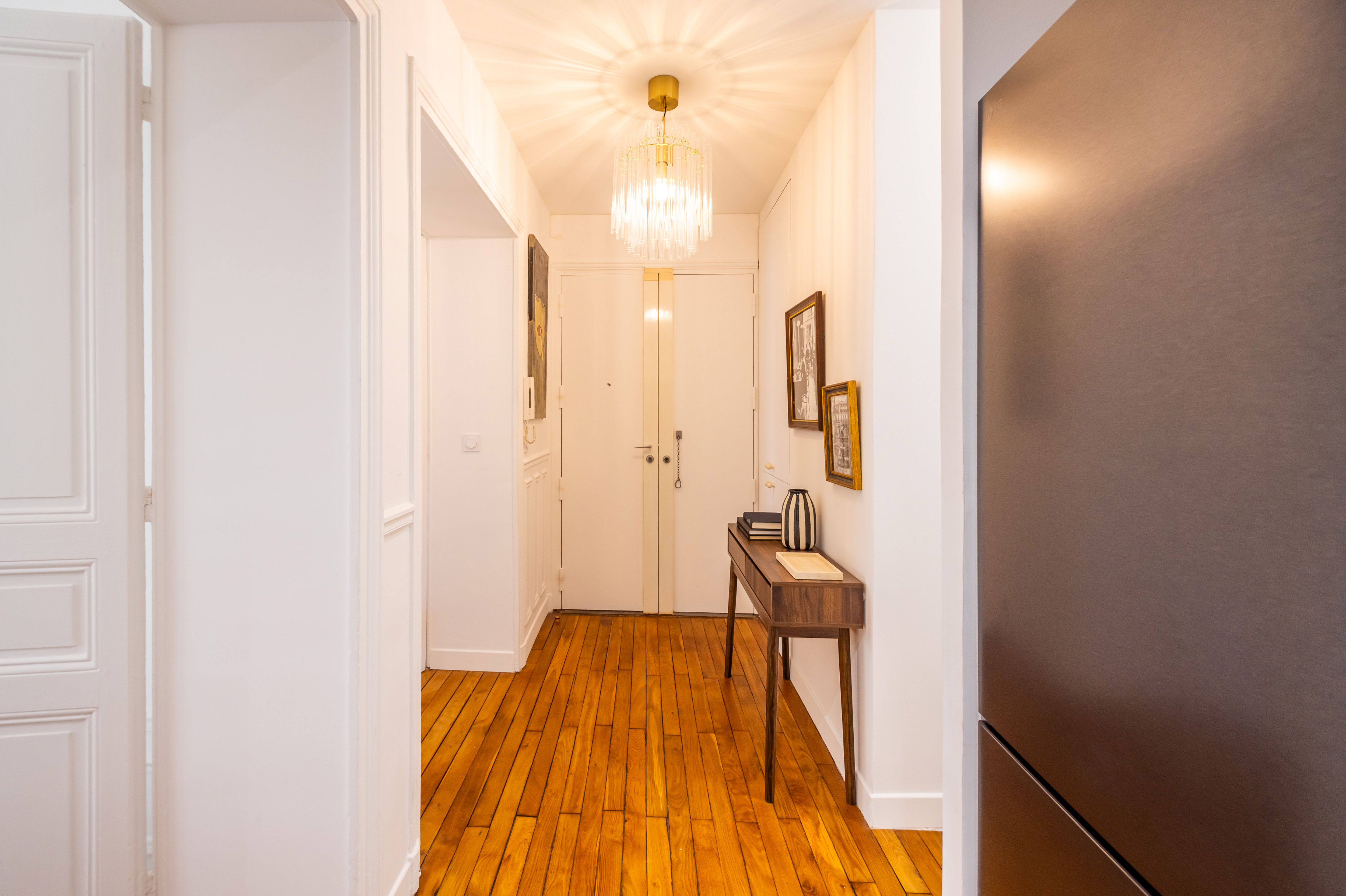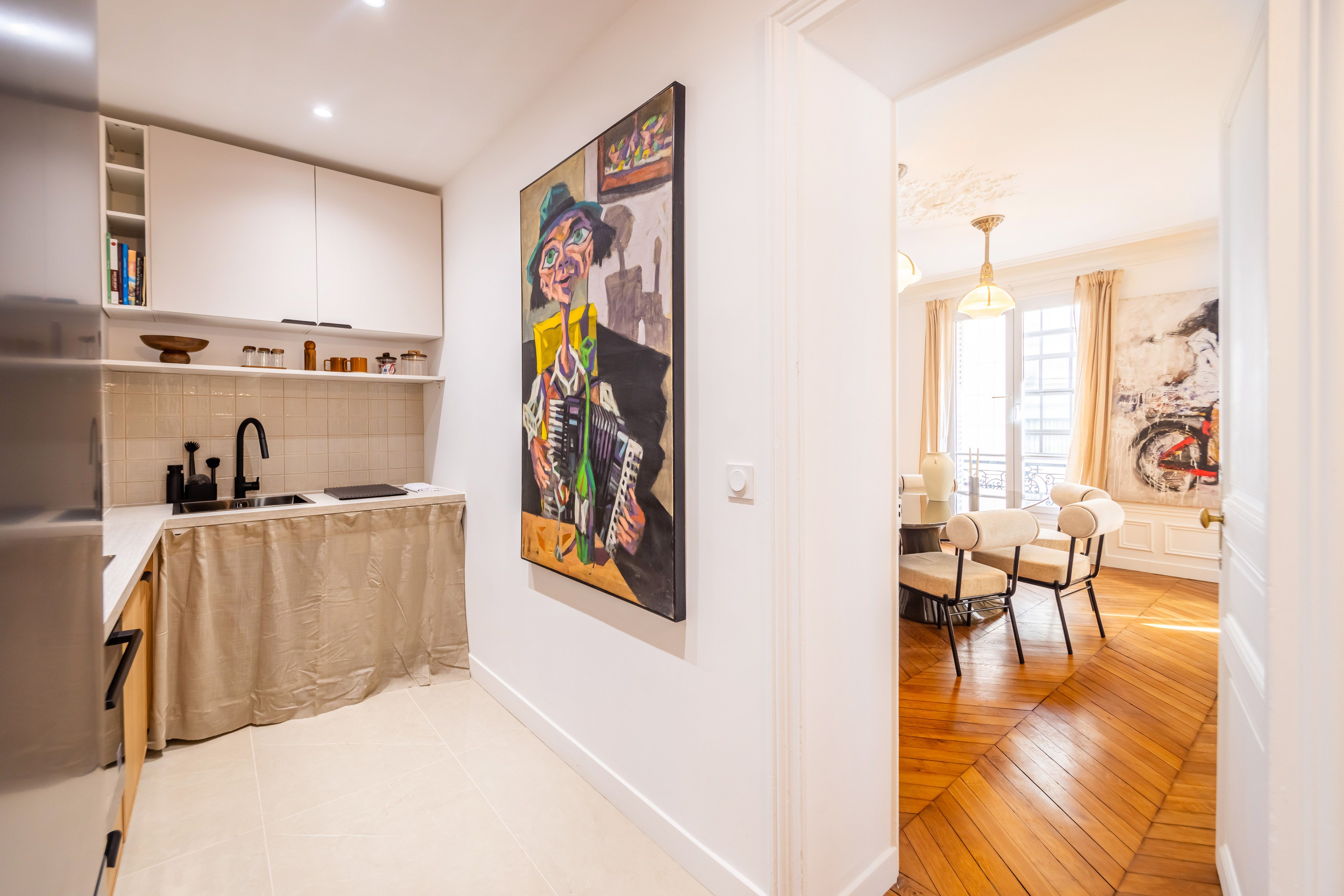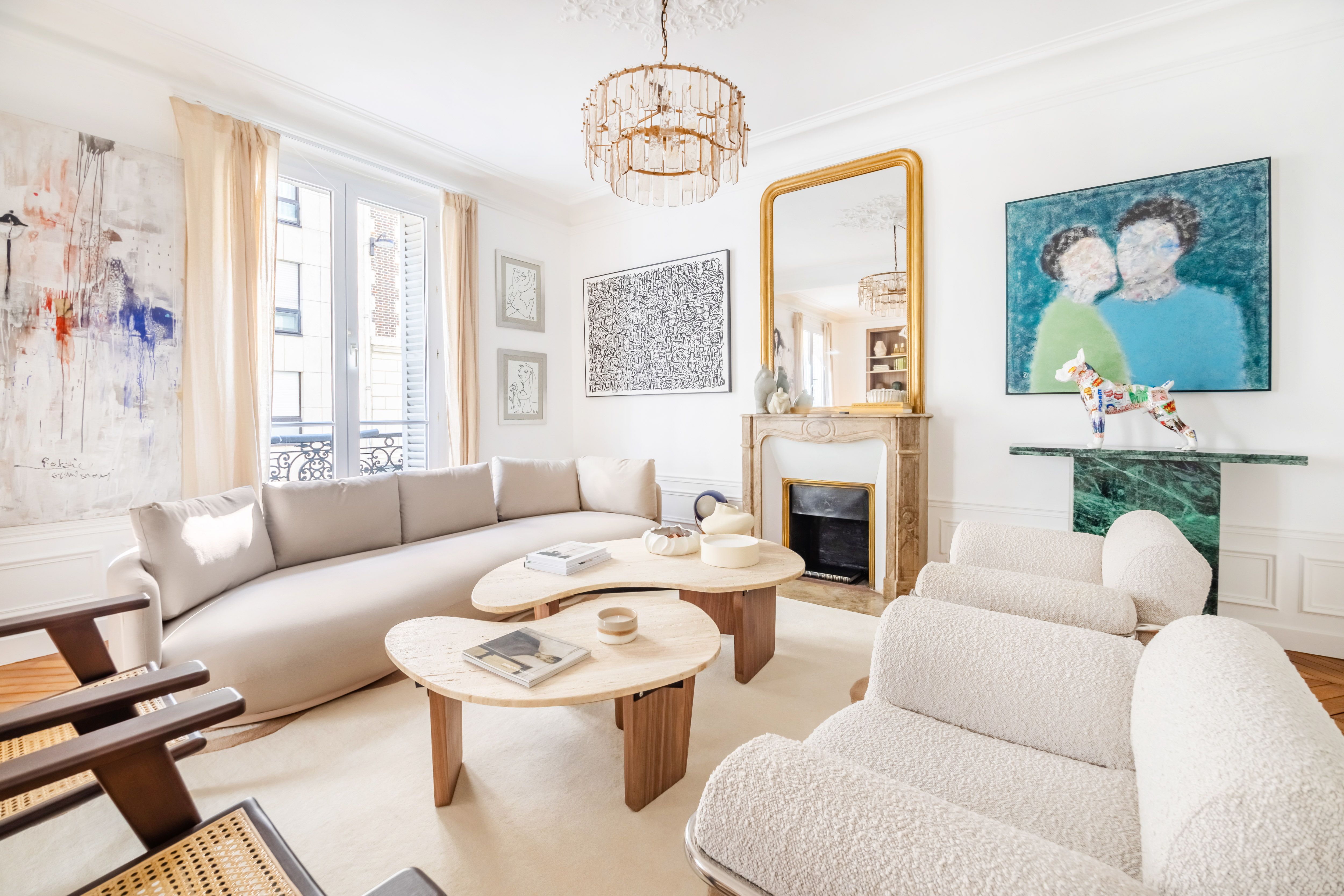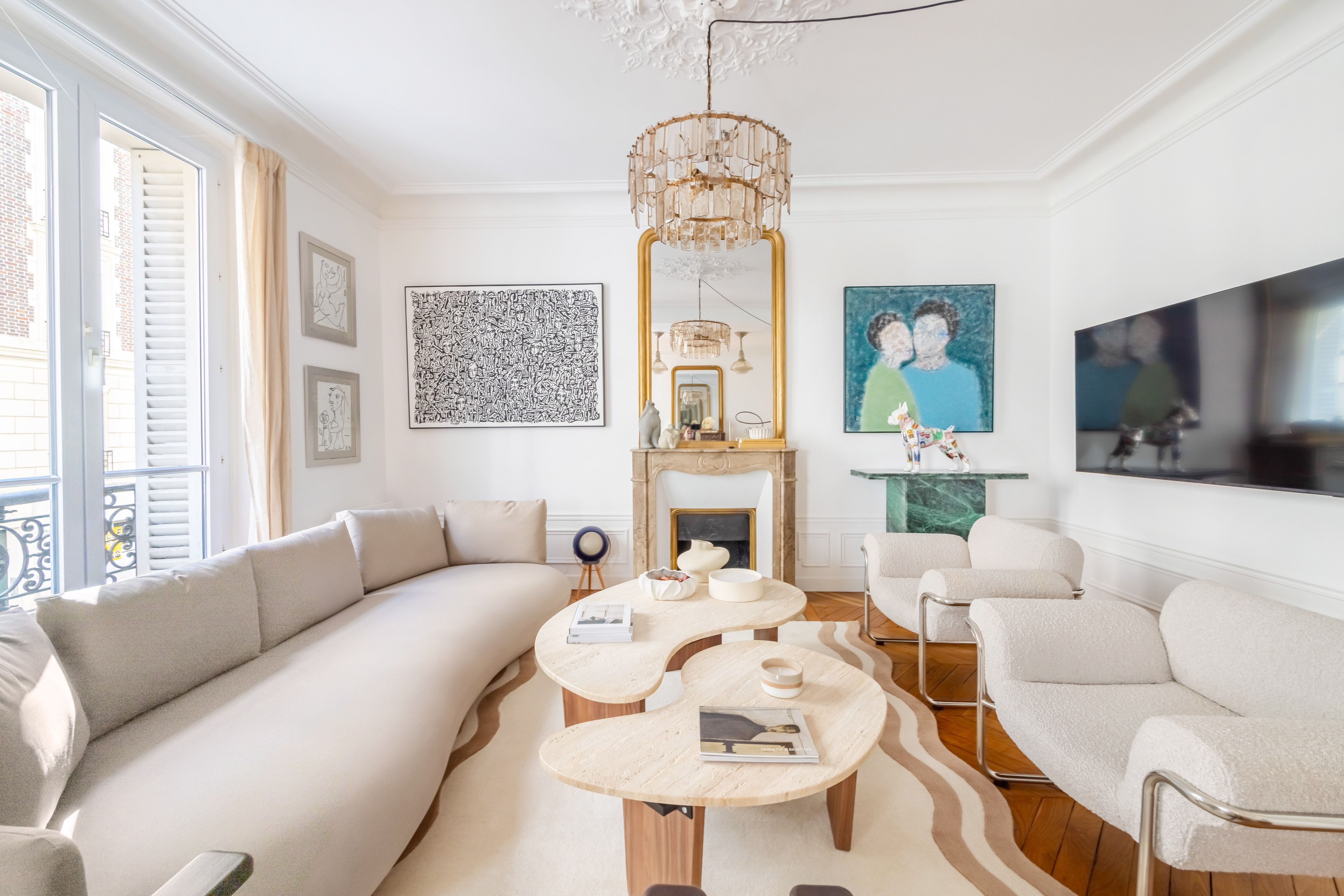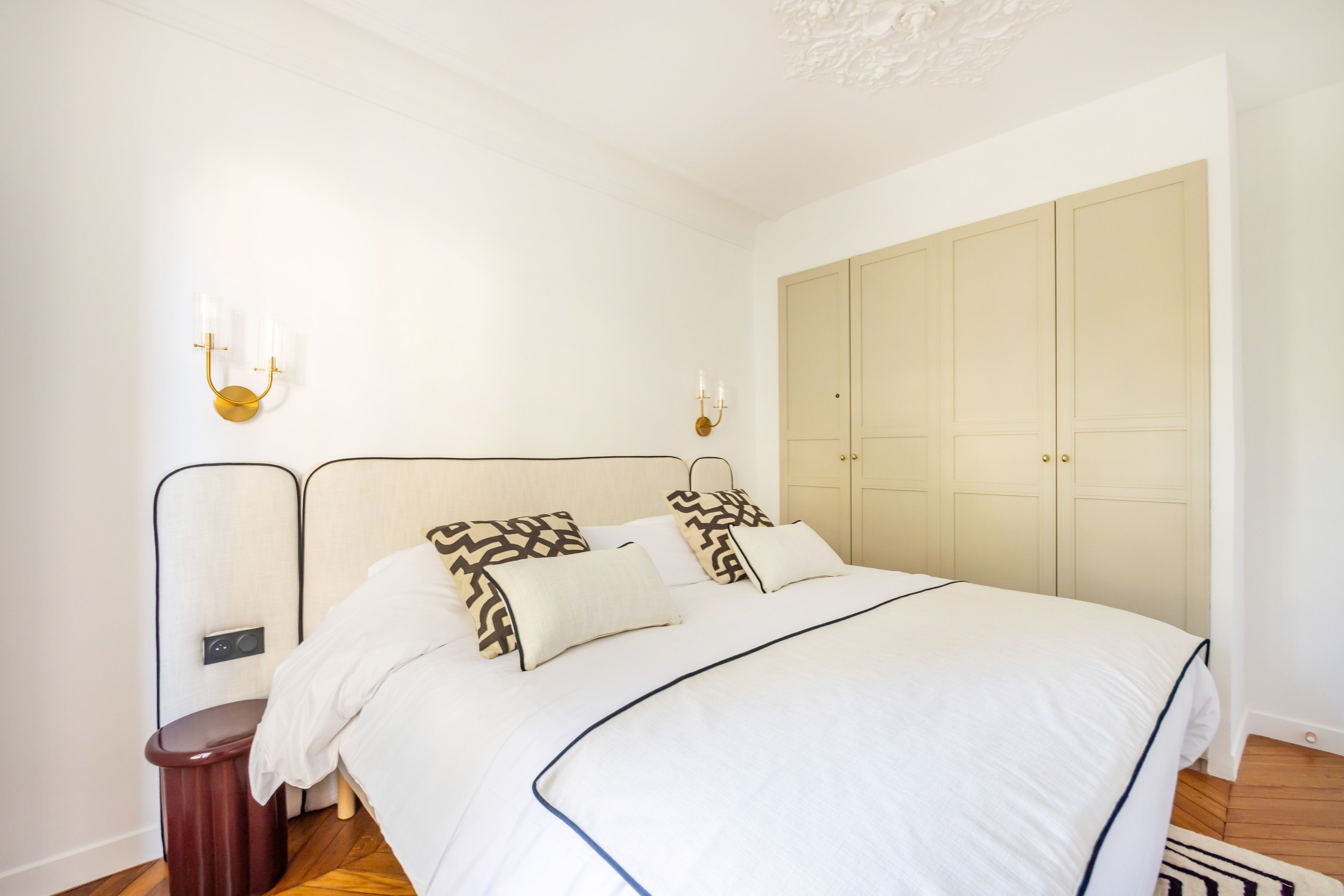 Experience the best of Paris from this beautifully designed apartment. It’s in a classic Haussmann-style building in the 15th arrondissement, with hardwood herringbone floors, vintage-style chandeliers, and elegant moldings. These historic details are offset by interesting artwork. The double living area is perfect for spending time together, with comfortable seating and a chic dining area – and there’s a well-equipped kitchen to cook in. Staying here, you’ll be within walking distance of shops, restaurants, and attractions including the Champ de Mars and the Eiffel Tower – what more could you ask for?