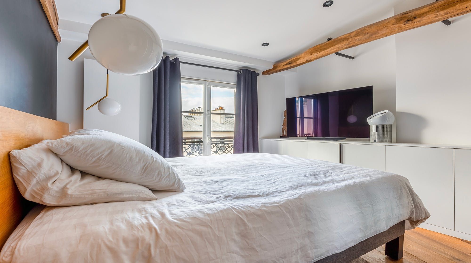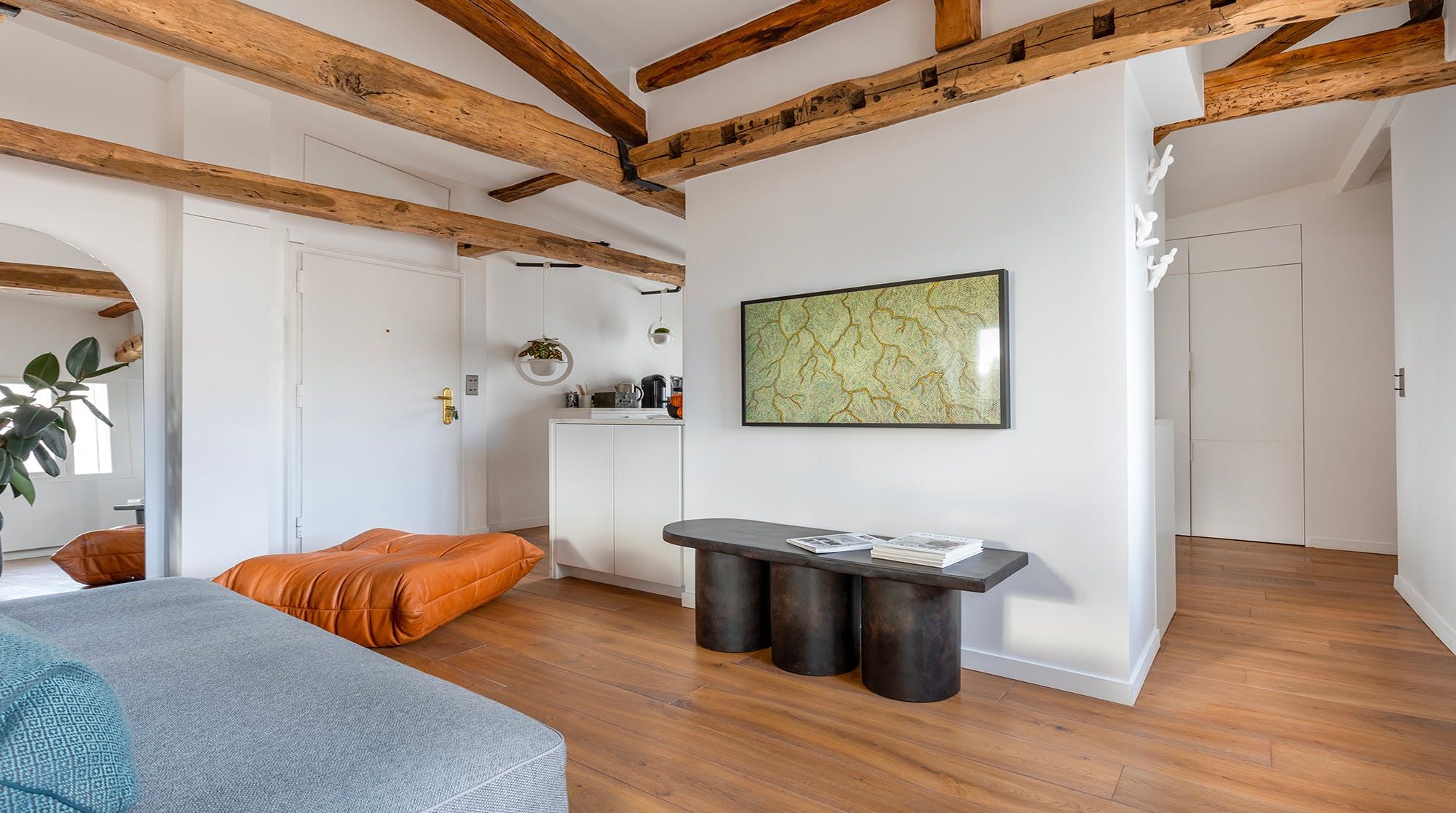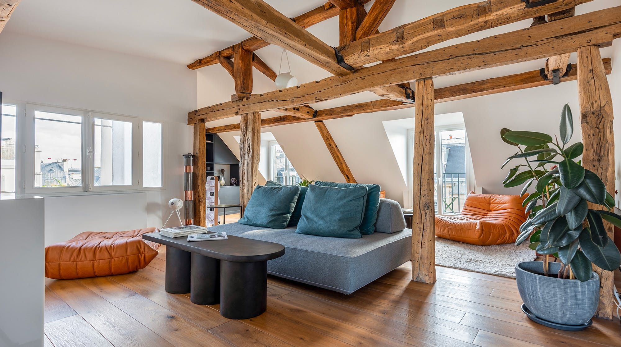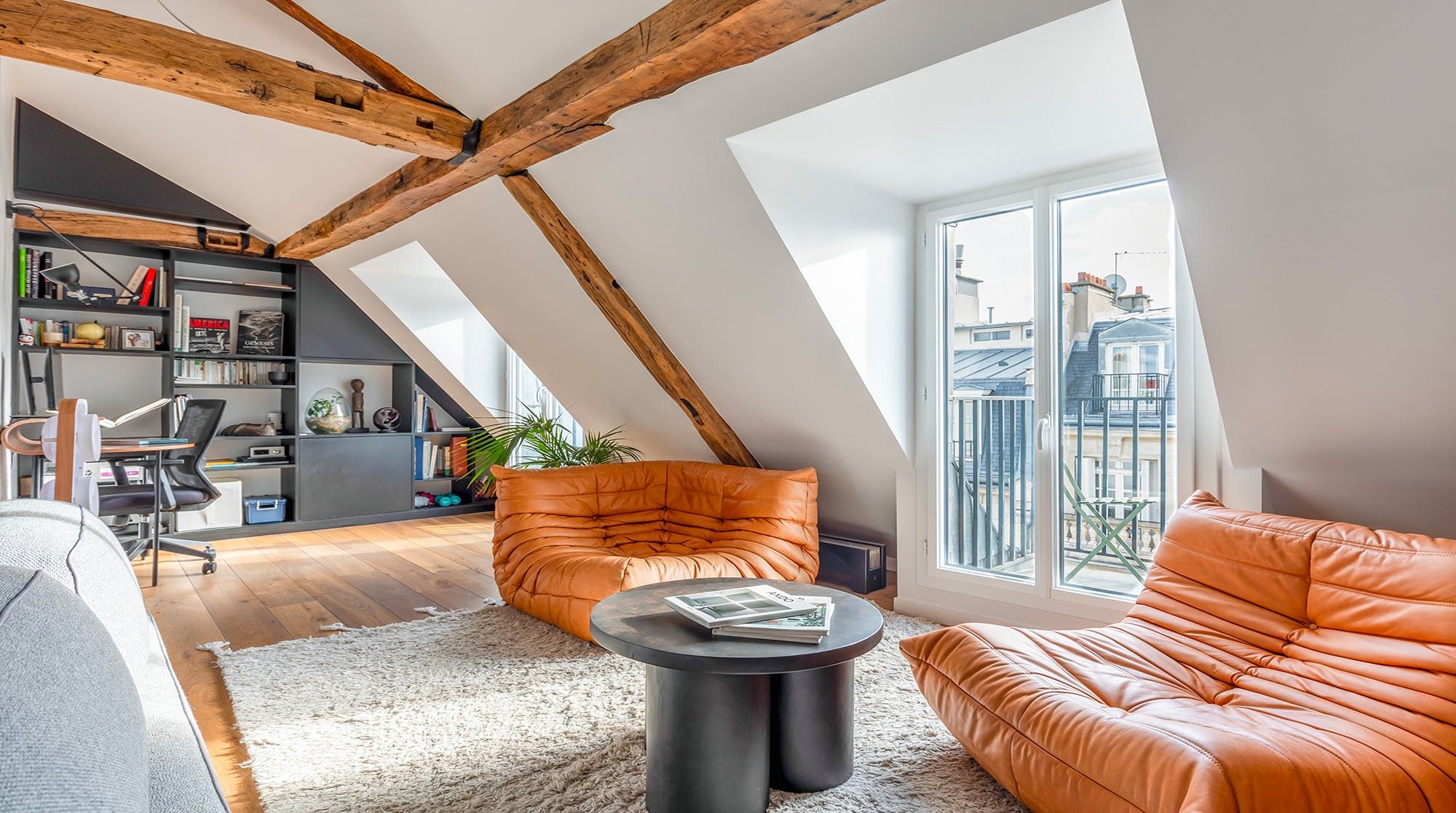 With its exposed beams and raw-wood columns, there’s a feeling of rustic vintage chic alongside an effortlessly modern decor. We love the abundance of light streaming in through the slanted windows, as well as the natural textures throughout, adding a touch of luxury bohemia to the proceedings. Make yourself comfortable on the low-slung leather chairs with a good book or a game on the Nintendo Switch. Alternatively, catch up on work at the well-equipped home office space that's all set to make doing business from home a breeze. At sunset, step out onto the private balcony for dazzling city vistas over a glass of French wine before gathering in the sleek kitchen for a homemade meal. After a soak in the en-suite tub, you’ll be ready to curl up in bed for a dreamy night’s sleep, sure to leave you feeling rested and raring to go for another day of adventure in the City of Light.