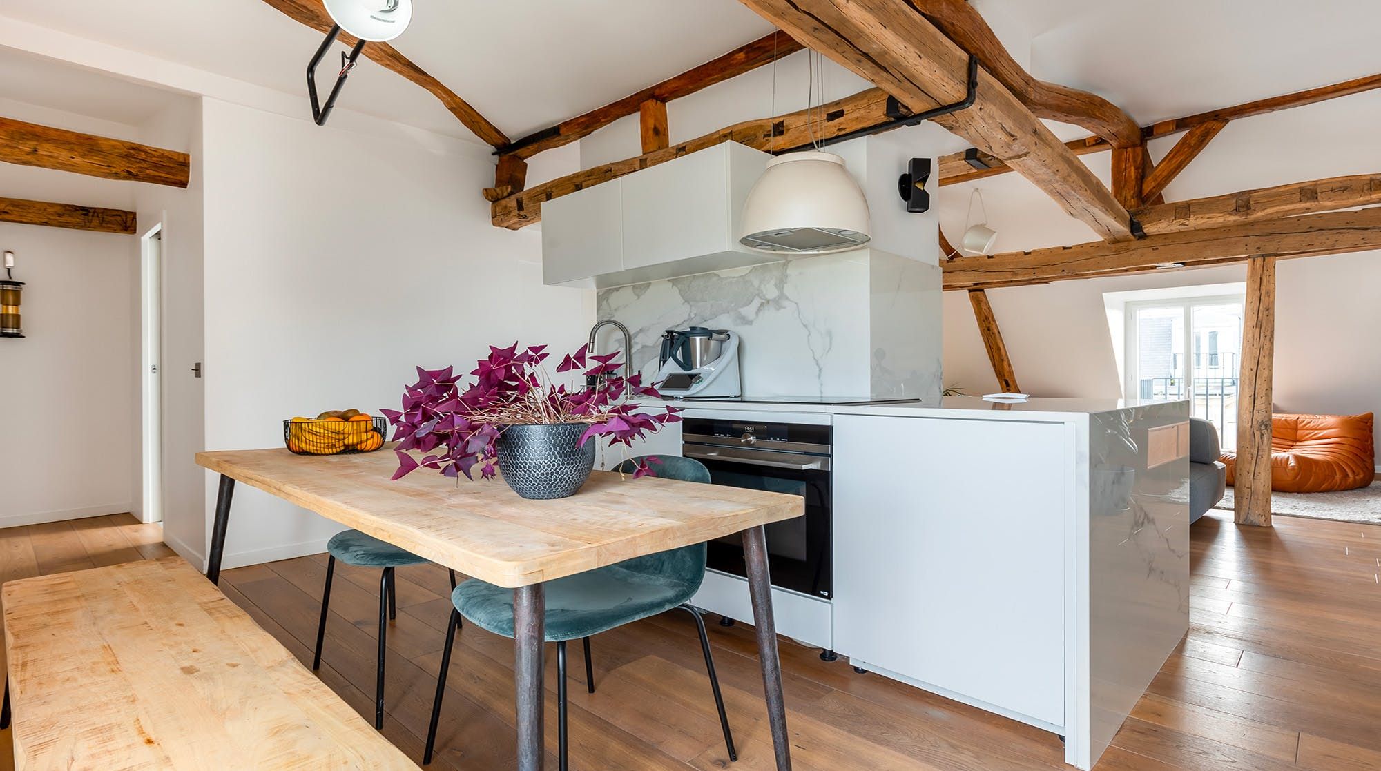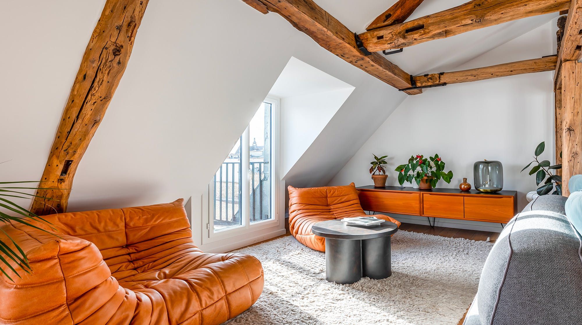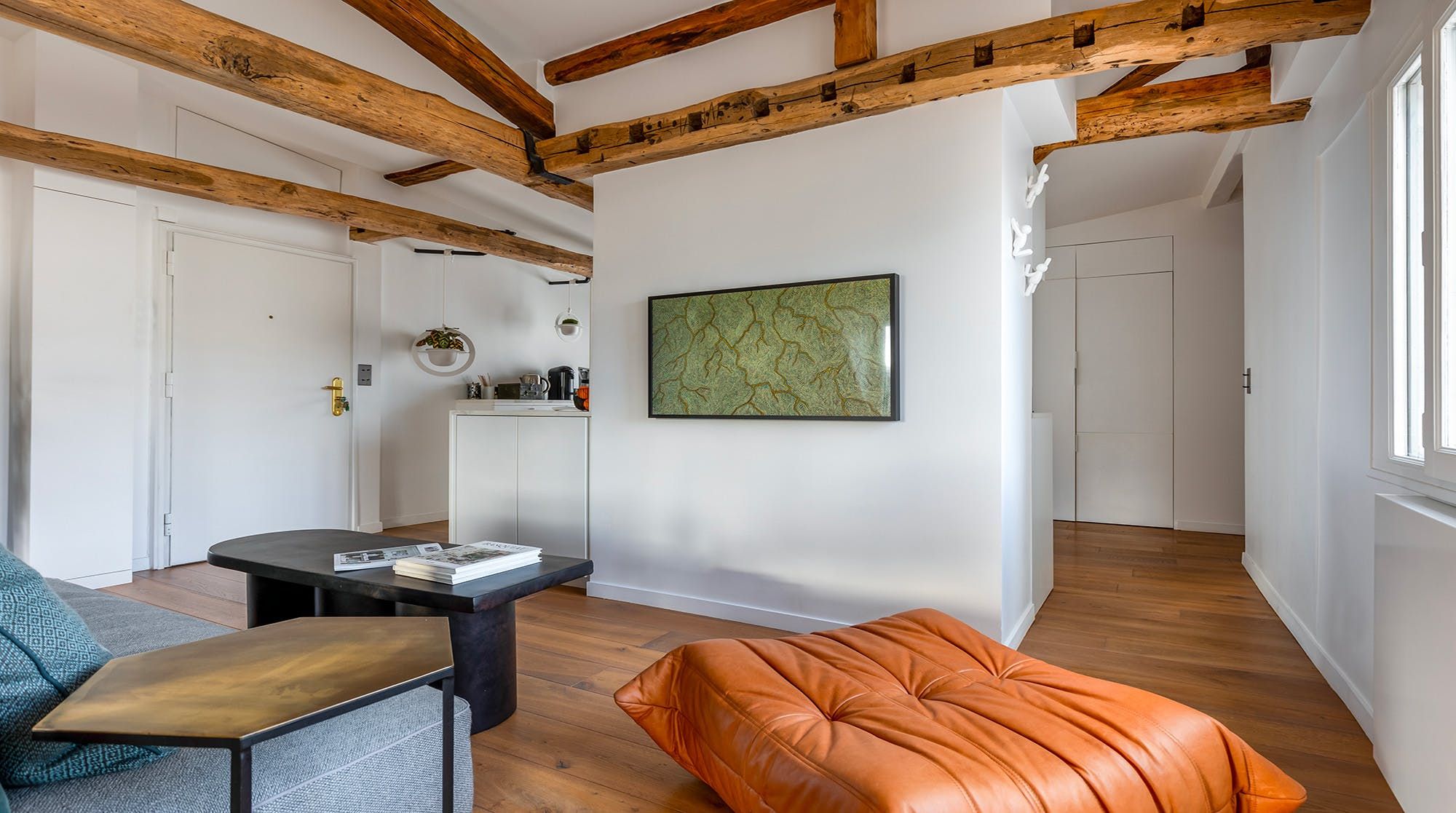 With its exposed beams and raw-wood columns, there’s a feeling of rustic vintage chic alongside an effortlessly modern decor. We love the abundance of light streaming in through the slanted windows, as well as the natural textures throughout, adding a touch of luxury bohemia to the proceedings. Make yourself comfortable on the low-slung leather chairs with a good book or a game on the Nintendo Switch. Alternatively, catch up on work at the well-equipped home office space that's all set to make doing business from home a breeze. At sunset, step out onto the private balcony for dazzling city vistas over a glass of French wine before gathering in the sleek kitchen for a homemade meal. After a soak in the en-suite tub, you’ll be ready to curl up in bed for a dreamy night’s sleep, sure to leave you feeling rested and raring to go for another day of adventure in the City of Light.