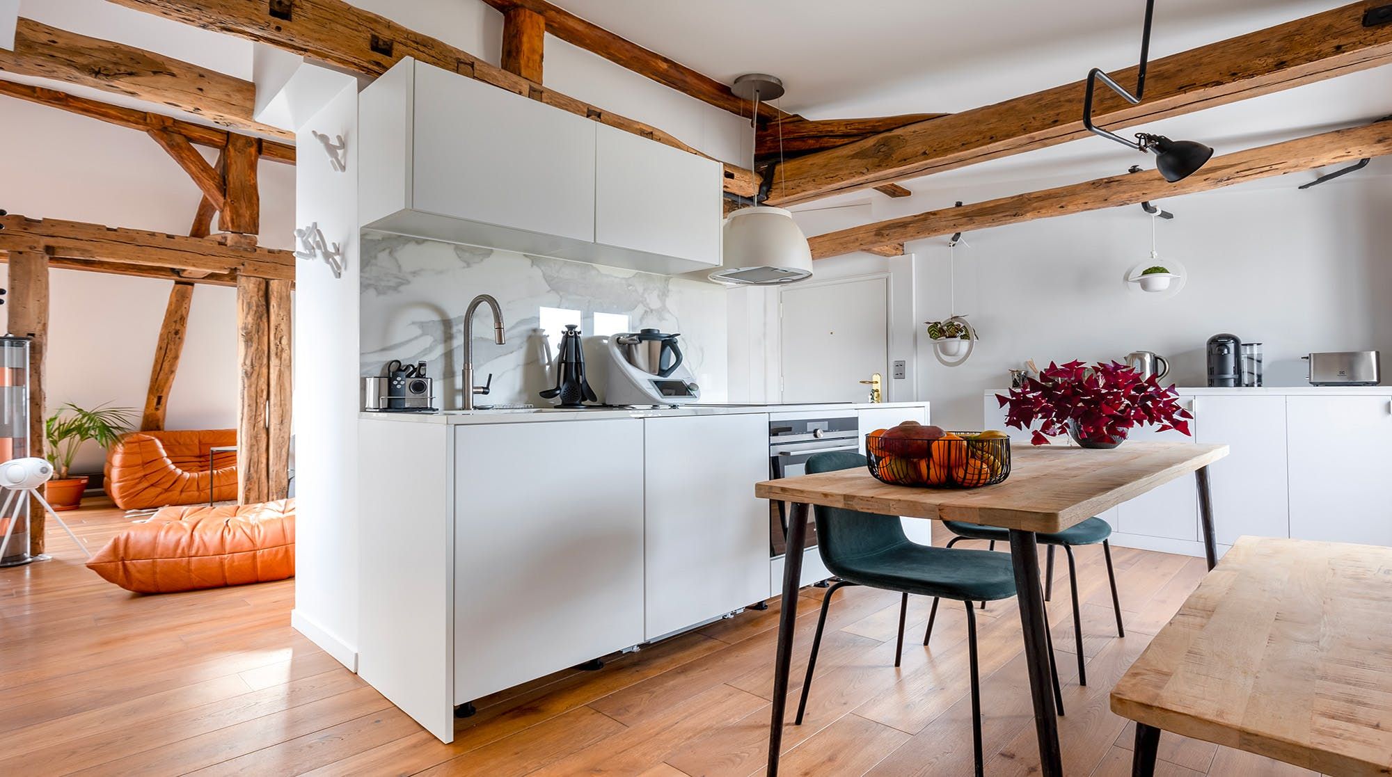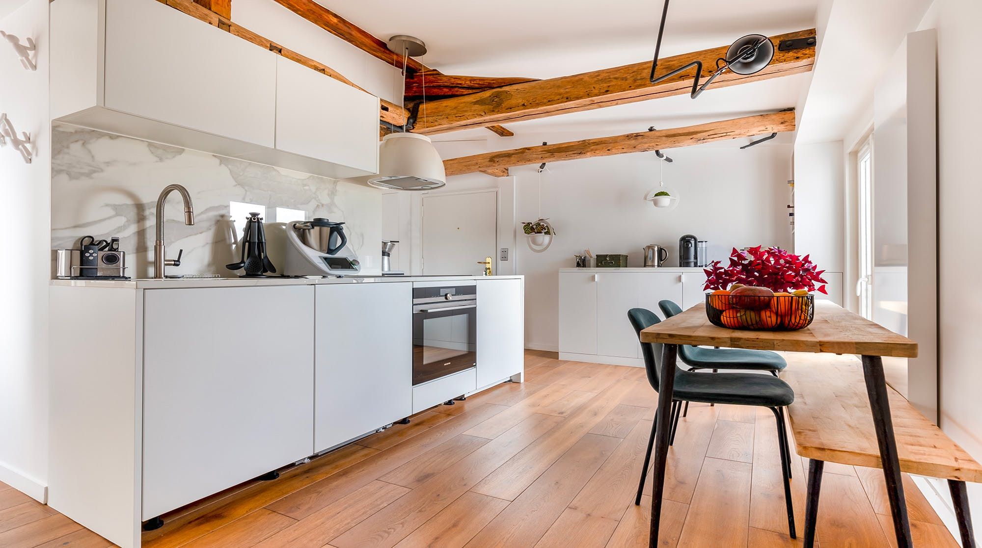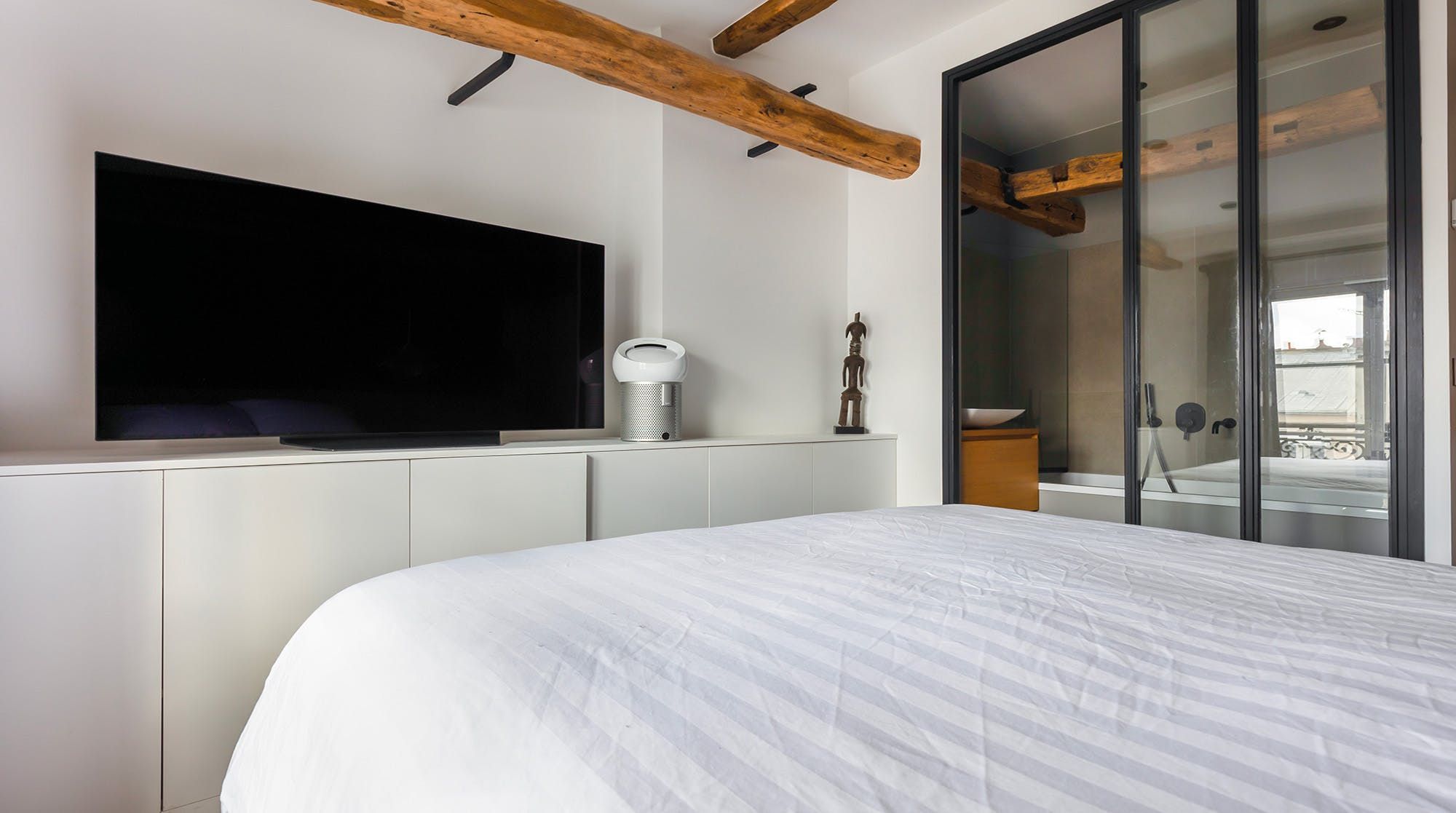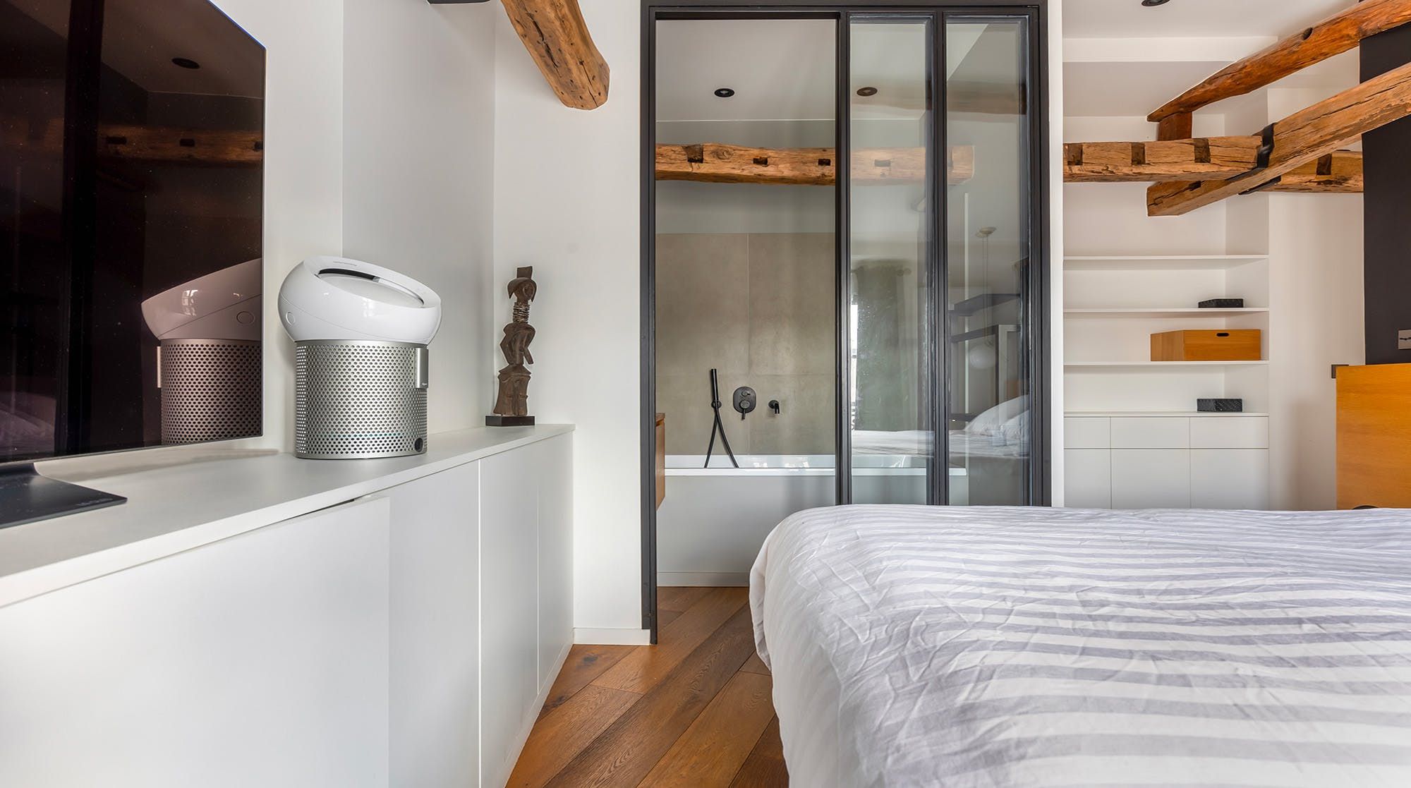 With its exposed beams and raw-wood columns, there’s a feeling of rustic vintage chic alongside an effortlessly modern decor. We love the abundance of light streaming in through the slanted windows, as well as the natural textures throughout, adding a touch of luxury bohemia to the proceedings. Make yourself comfortable on the low-slung leather chairs with a good book or a game on the Nintendo Switch. Alternatively, catch up on work at the well-equipped home office space that's all set to make doing business from home a breeze. At sunset, step out onto the private balcony for dazzling city vistas over a glass of French wine before gathering in the sleek kitchen for a homemade meal. After a soak in the en-suite tub, you’ll be ready to curl up in bed for a dreamy night’s sleep, sure to leave you feeling rested and raring to go for another day of adventure in the City of Light.