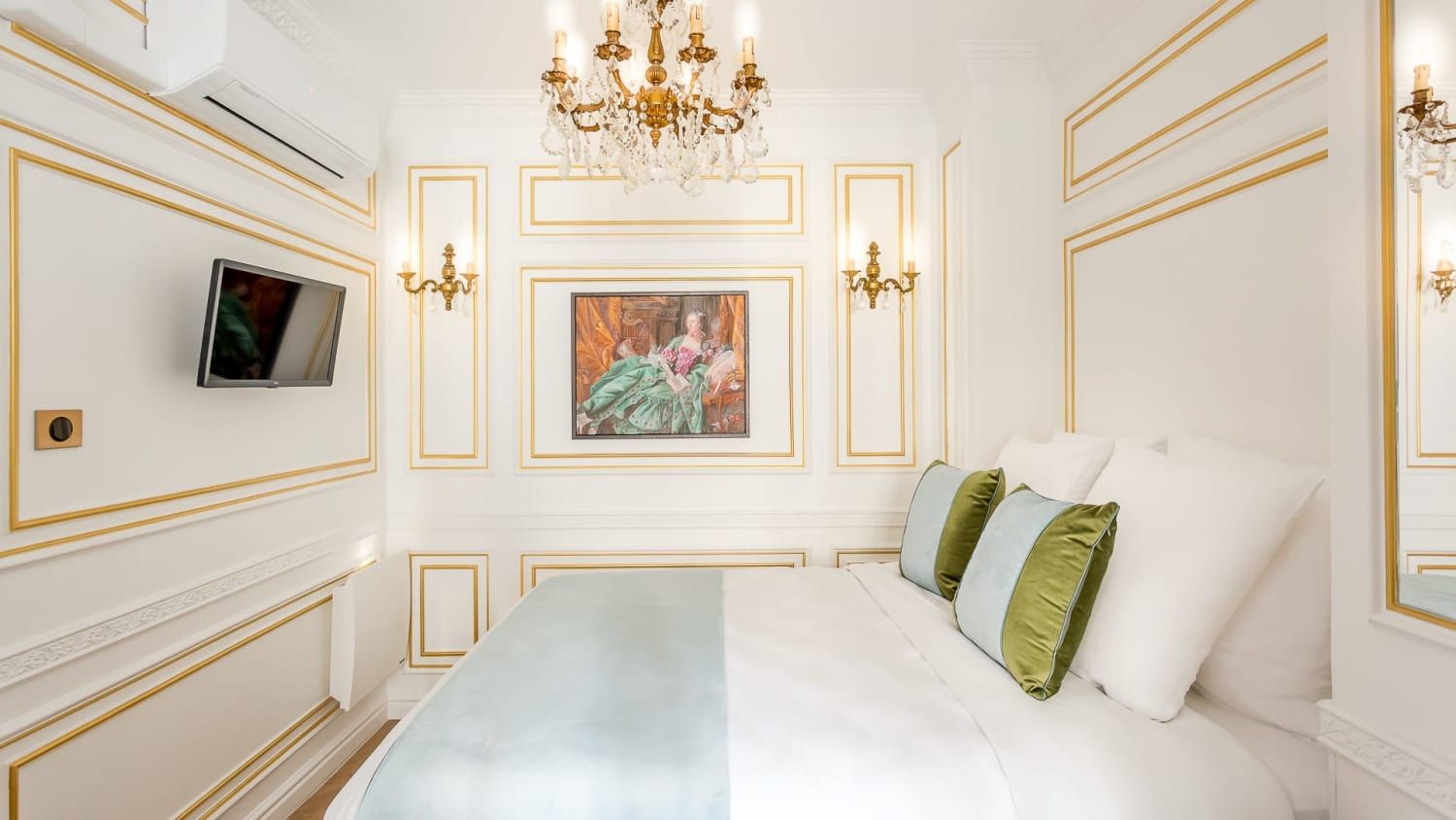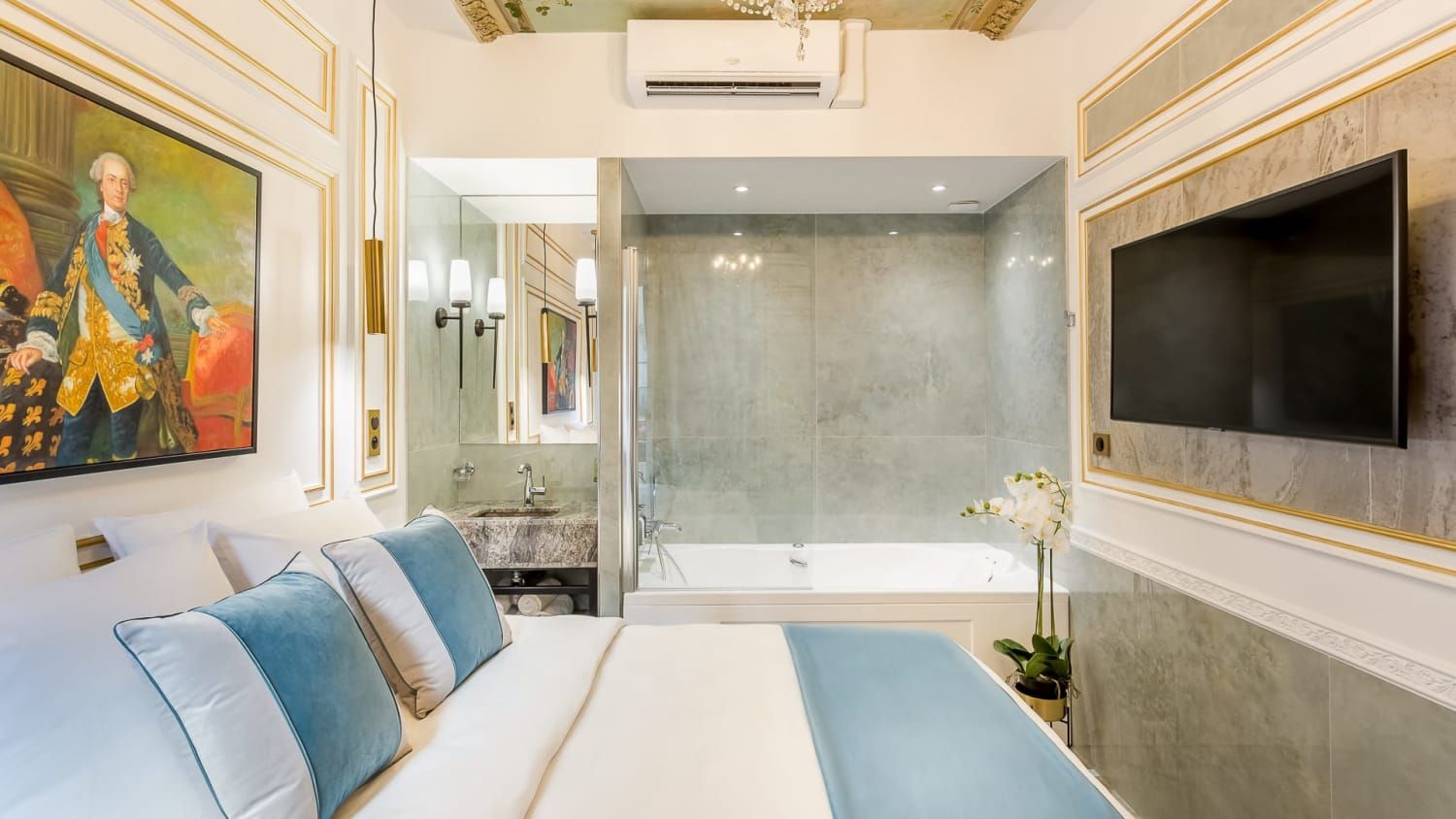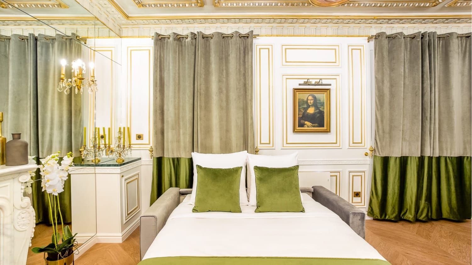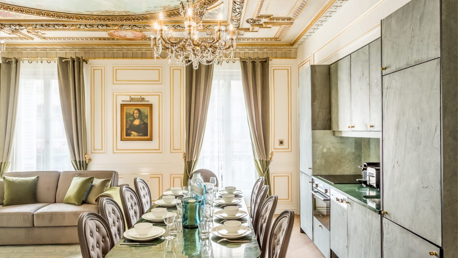 Quite literally dripping in gold, spectacular hand-painted original features, including mouldings gilded with gold leaf, retain hundreds of years of history encapsulated in this home. Listed as a heritage monument, the building dates back to the reign of King Louis XIV and has since been redesigned by a Parisian architect, allowing guests and residents to immerse themselves in French history, alongside all the contemporary comforts of modern-day luxury living. When we say "luxury", that's exactly what we mean, as the apartment is decked out in plush beds and sofas, antique furniture and one-of-a-kind artwork throughout. With copious restaurants, bars and cafes – all within walking distance, you'll have plenty of options when it comes to sampling the local cuisine. That being said, you'll certainly want to make the most of the opulent dining area in your Parisian home too, so sit down to a French banquet of dreams one evening for an unforgettable experience of pure indulgence. Bon appetit! The night doesn't end there – follow your dinner of great food and wine with a relaxing soak in one of the cosy jacuzzi bathtubs.