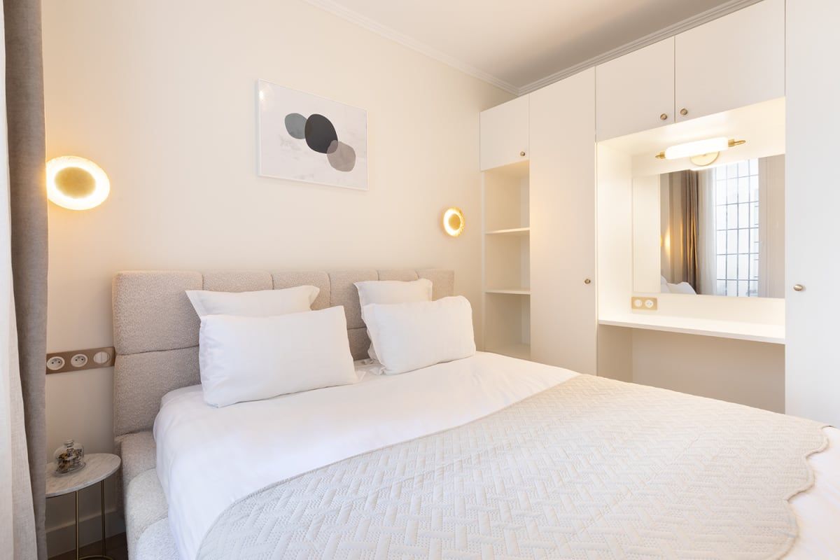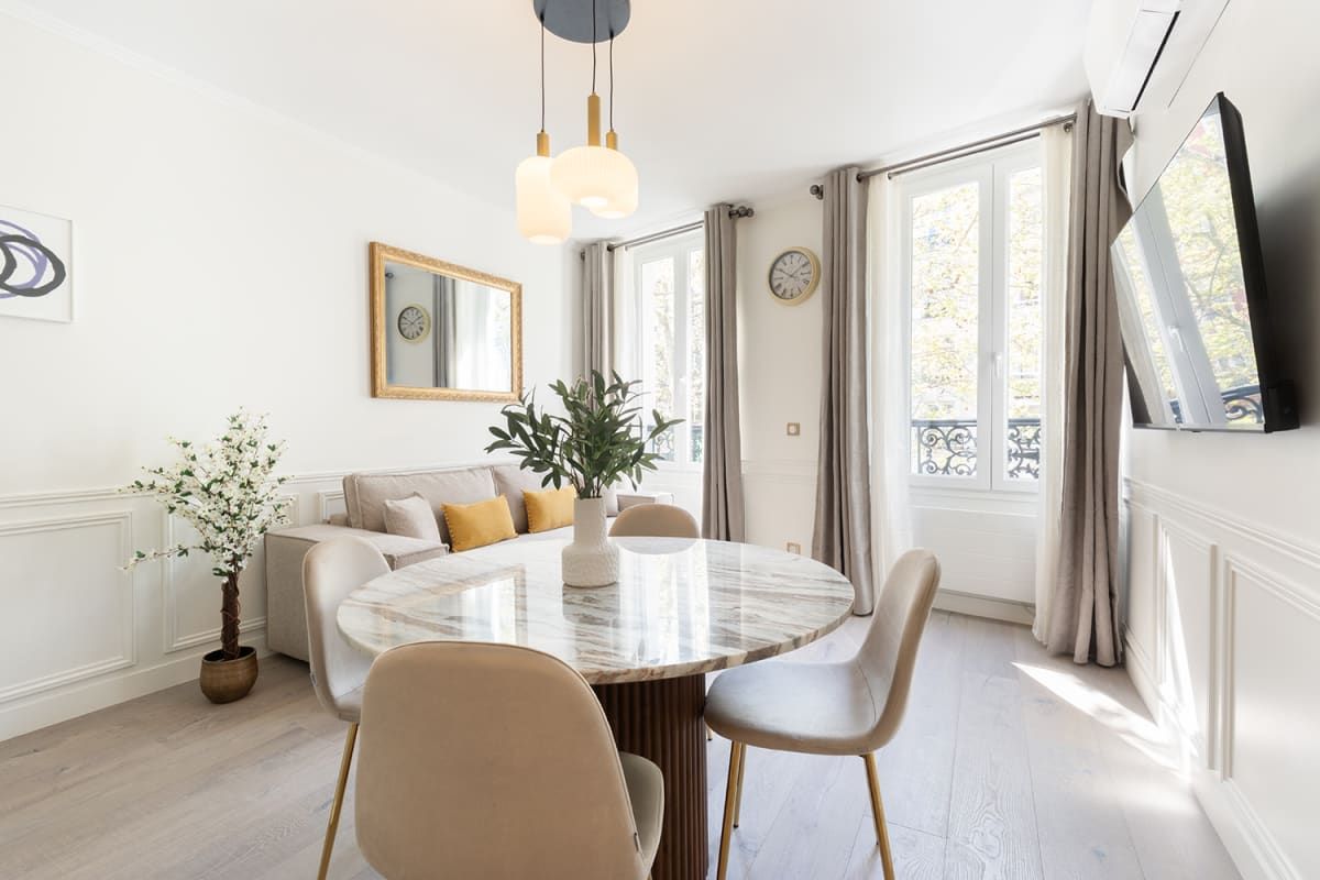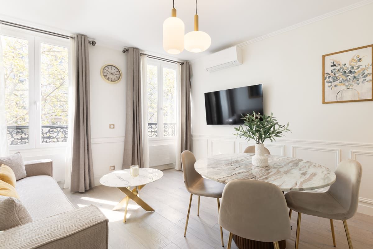 If you’re looking to be within walking distance of the City of Light’s many beautiful green spaces, then this apartment could be the one for you. You’ll also find Montmartre reachable on foot with its many shops, cafes and restaurants. The open-plan living space at this home is a great place to relax after a busy day. This room also sleeps guests three and four on a sofa bed. Situated in a Haussmann building, we’re sure you’ll appreciate the typical period features here too. This home is ideal if you want an elegant place to stay.