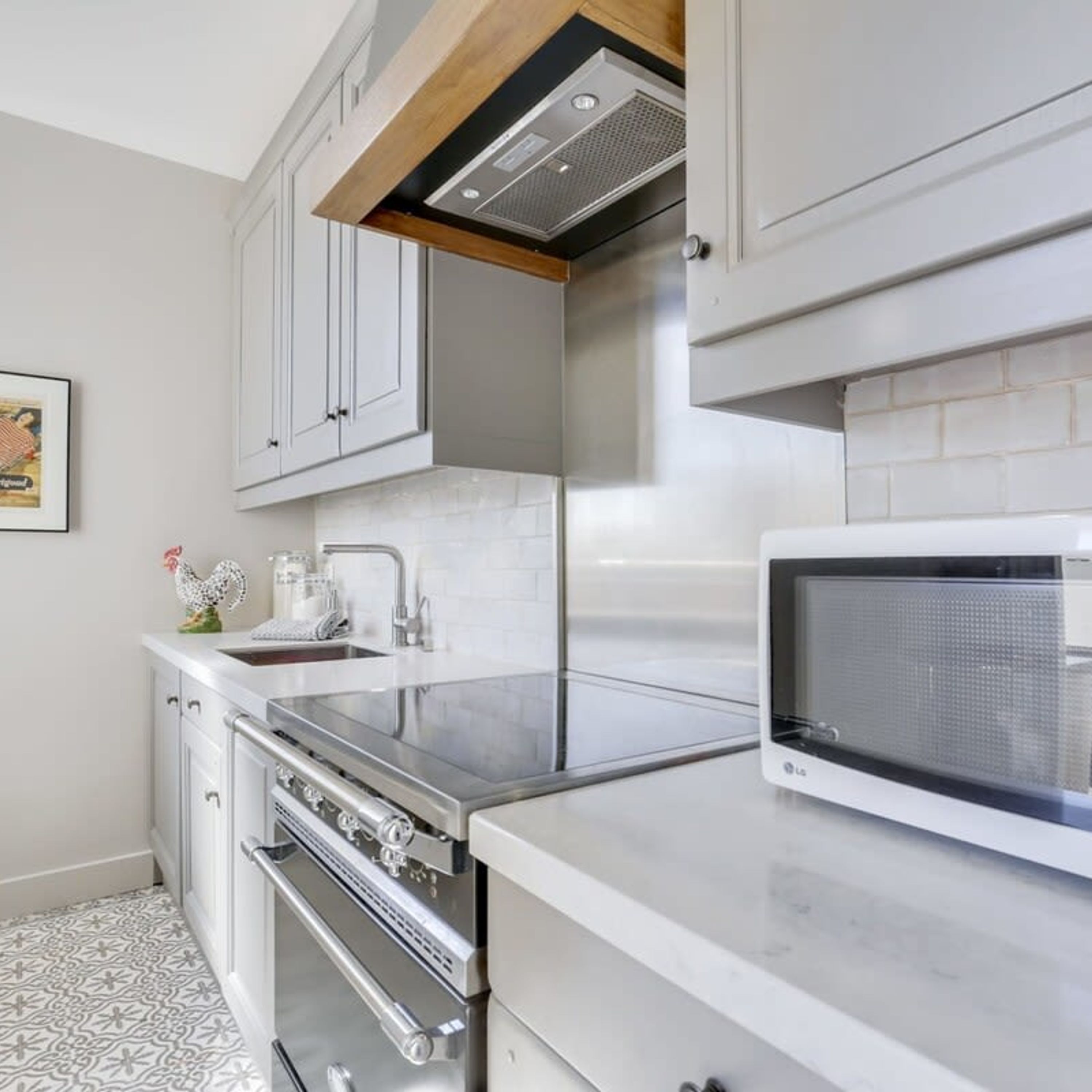 This charming apartment is located in Bastille, a lively district rich in revolutionary history. One of the best open-air markets in Paris is just around the corner – it’s the perfect spot to stock up on fresh ingredients for the convenient kitchen. The apartment has a bright, welcoming living and dining area that opens to a balcony, where you can watch Parisians in the street below. For more fresh air, take a stroll along Coulée Verte, a garden suspended above the streets – it’s just a few minutes away.