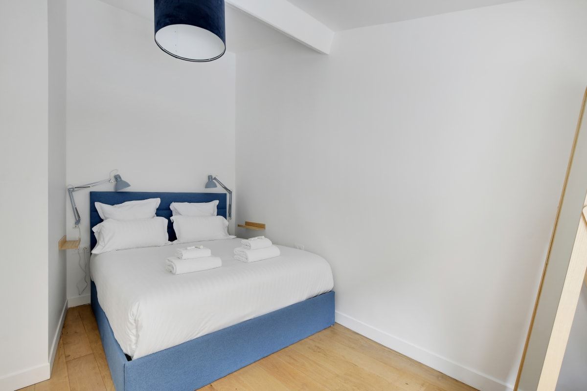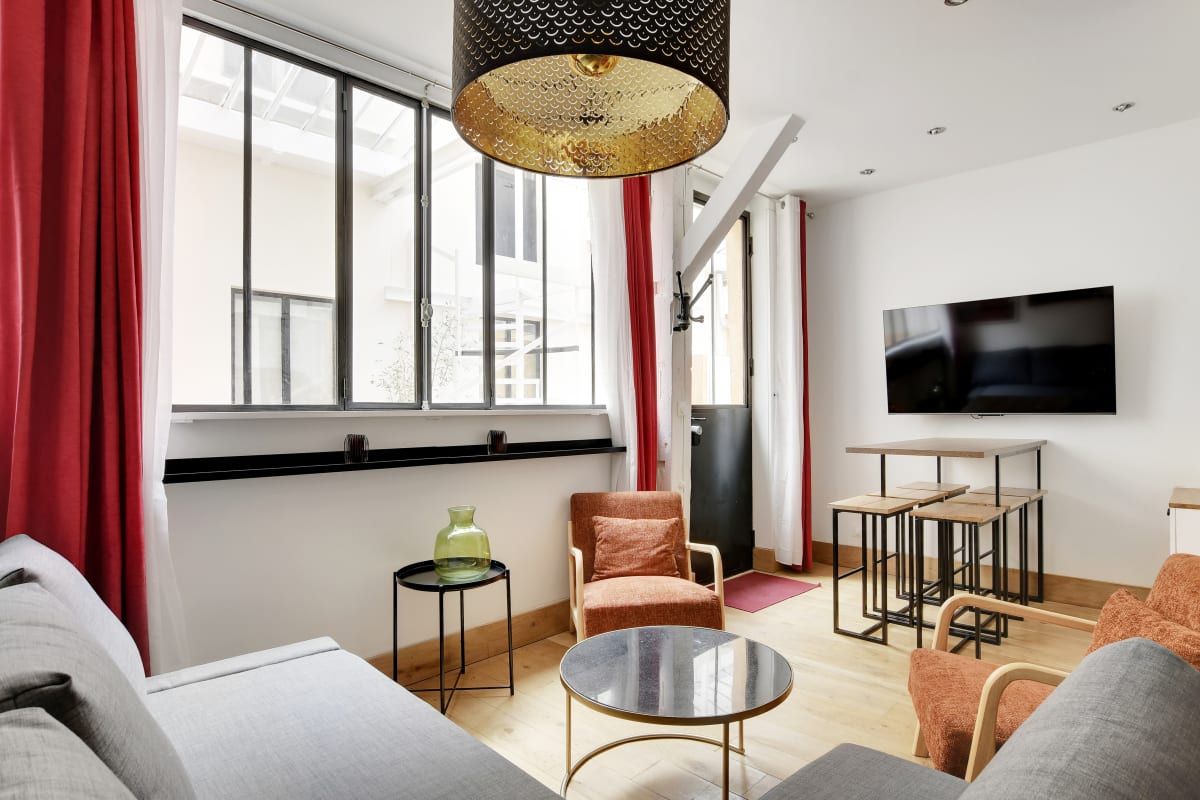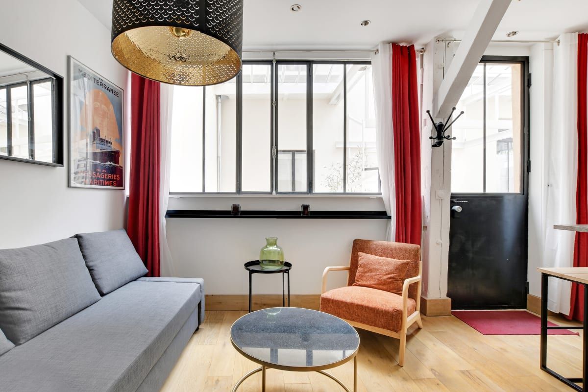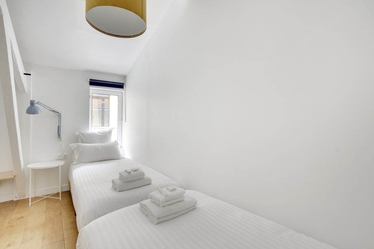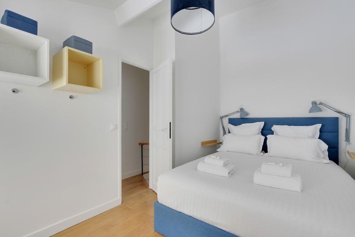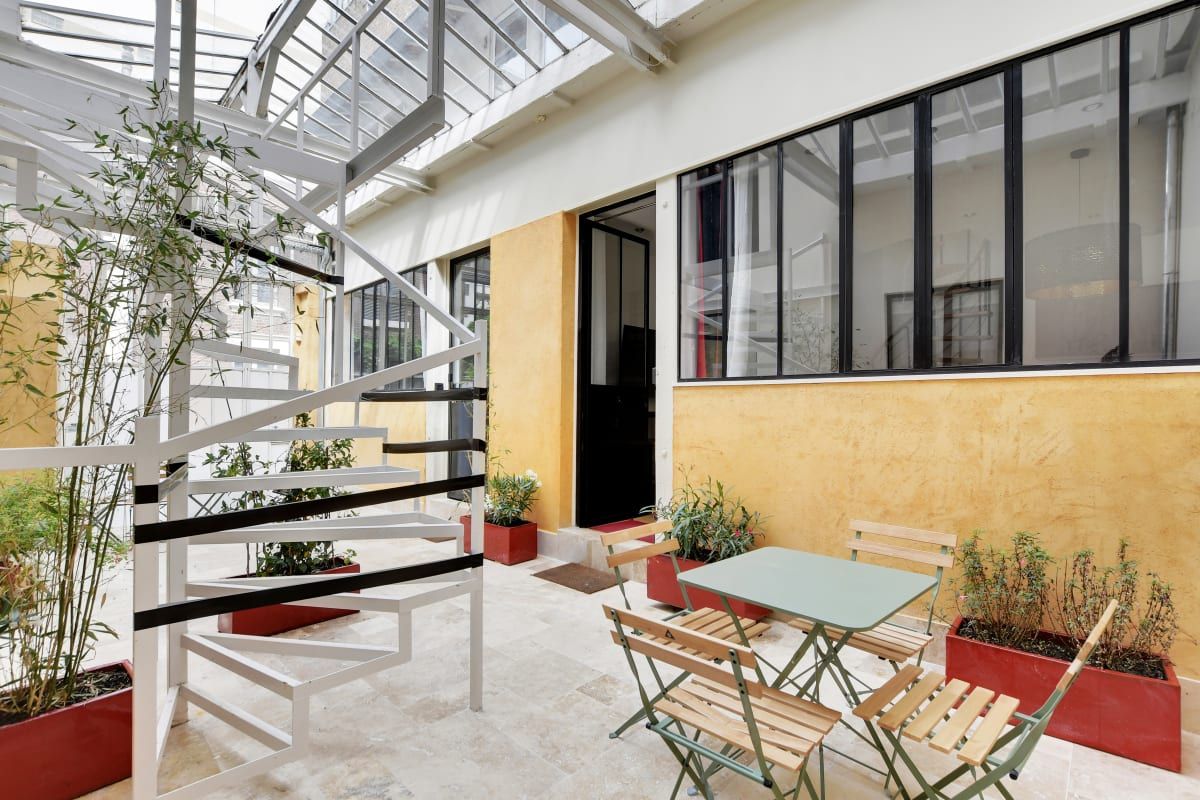 This charming two-floor apartment can be found in a quiet courtyard in the 18th arrondissement. From here, you can walk to Sacré-Coeur and meander the winding streets of Montmartre. Lamarck-Caulaincourt metro, served by line twelve, is nearby, so you can easily travel around Paris. The apartment has a spiral staircase from the cosy living and dining space to the bedrooms, which have hotel-quality bedding. This is a comfortable home-from-home that’s perfect for a family.
