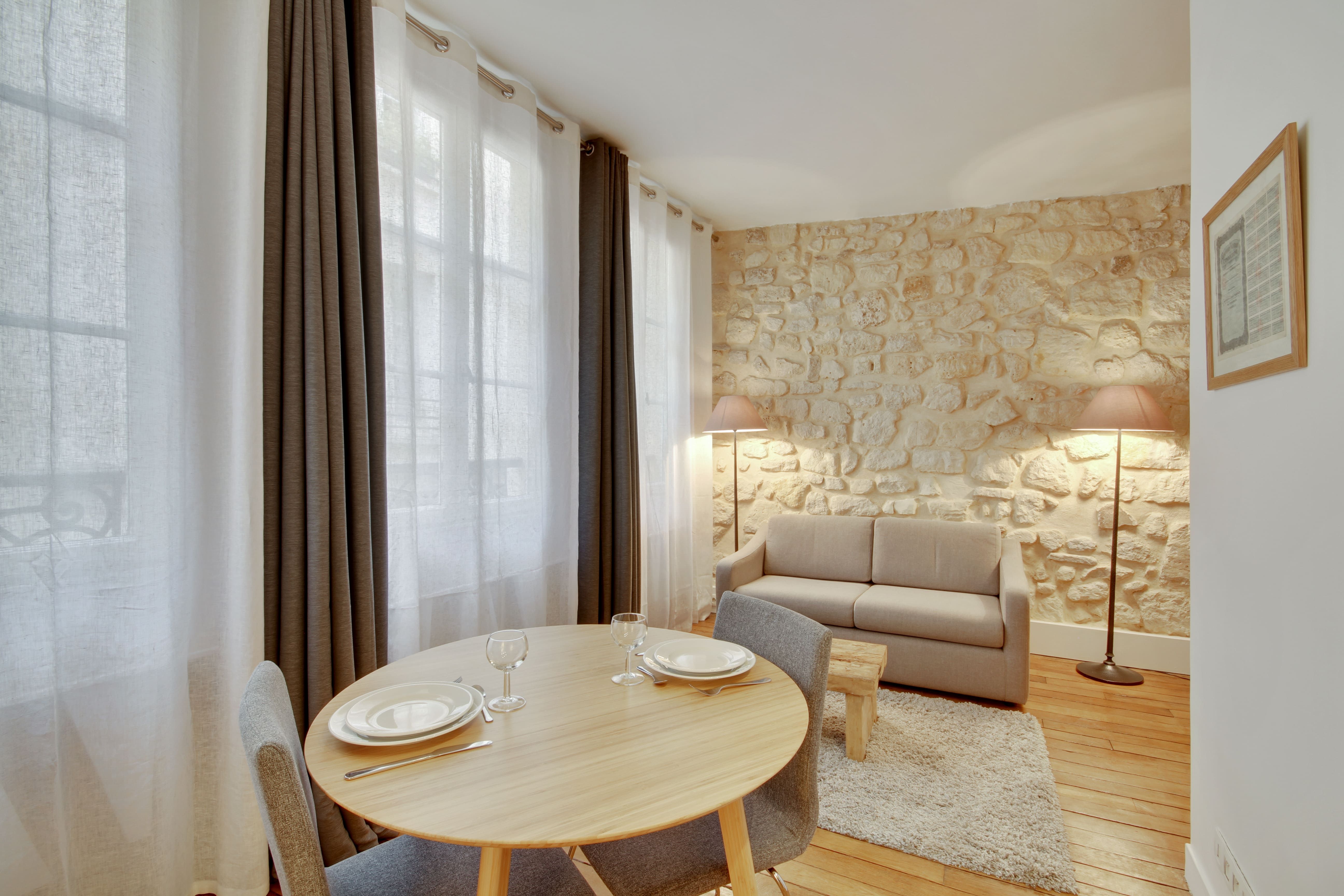 Le Marais, the Centre Pompidou, the Louvre Museum and the Palais Royal are all within walking distance of this apartment, tailored to business professionals. Excellent public transport links are also a short stroll away, so getting to anywhere in Paris is simple. There are plenty of cafes and restaurants in the vicinity, too, or you can make use of the kitchenette here in the open-plan living room. There’s no dedicated workspace here but the dining table doubles up as a place for the laptop. This serviced apartment is a great place for when you need a longer stay in the City of Light.