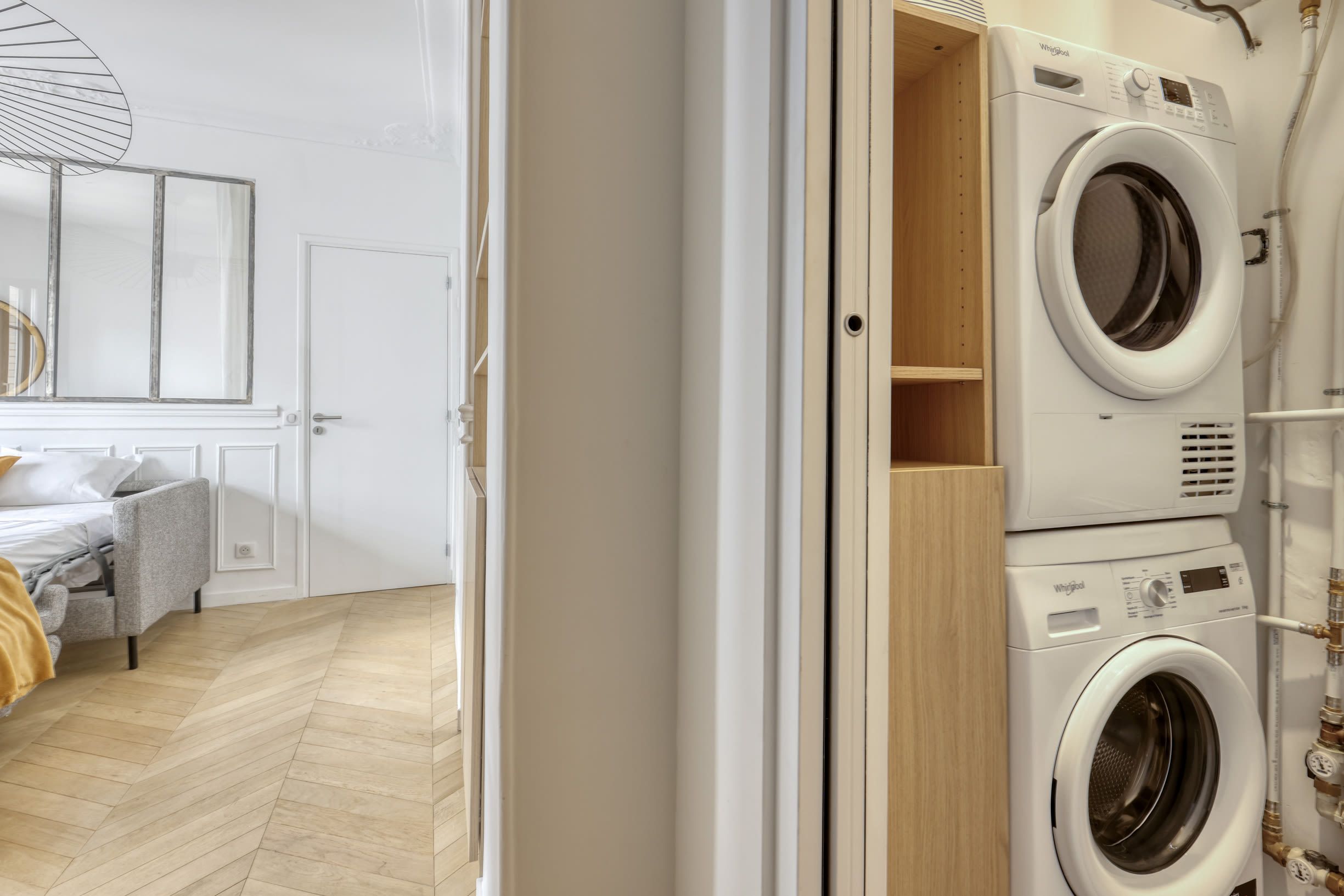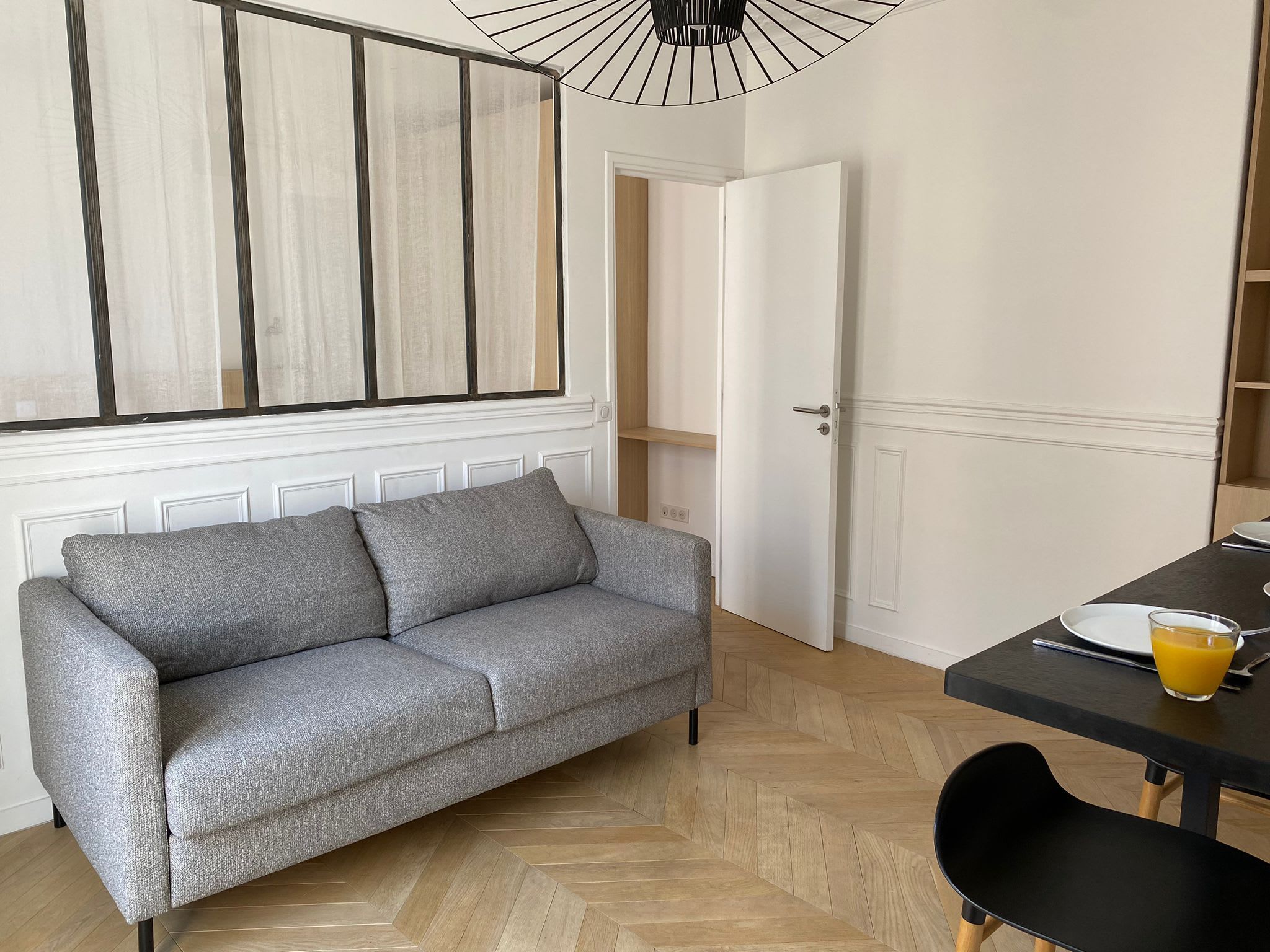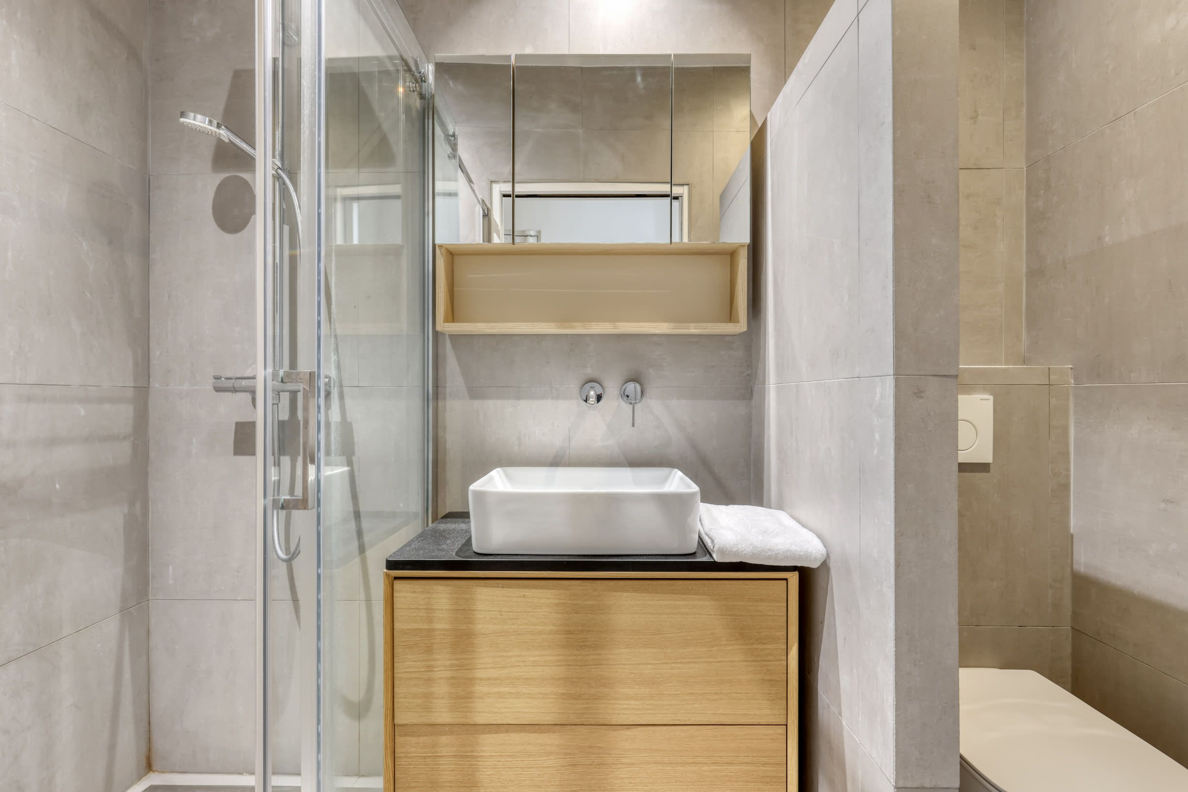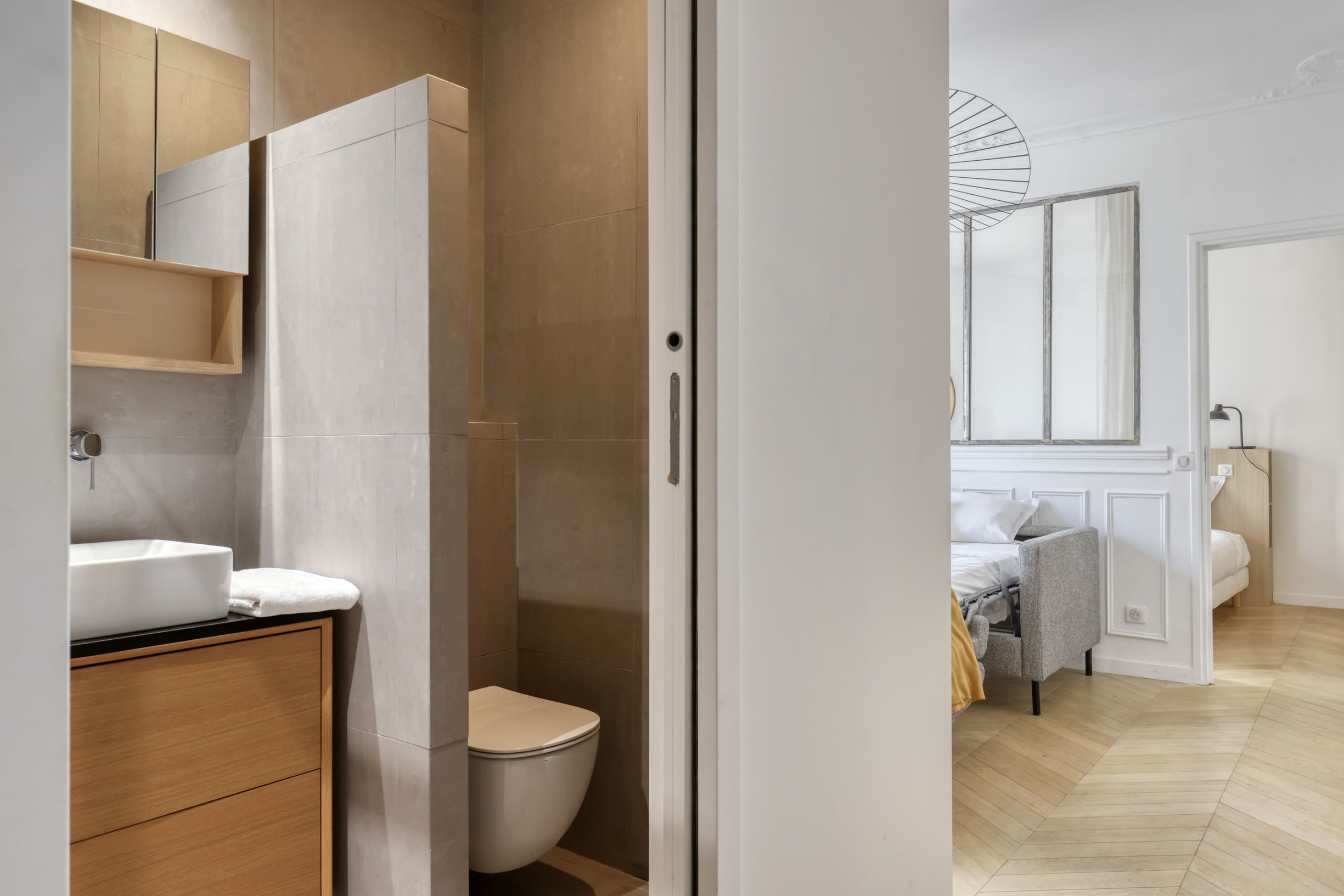 Located in the 15th arrondissement, this apartment is within walking distance of the Champ de Mars and the iconic Eiffel Tower. The River Seine and the Parc André Citroën are also reachable on foot when you feel like a stroll. You’ll find plenty of shops, and typically Parisian cafes, bars and restaurants in the vicinity as well. The apartment itself has a bright living room (this space also sleeps two guests on a sofa bed at full occupancy). There’s a separate compact but well-appointed modern kitchen here, too, perfect for cooking some Parisian cuisine.