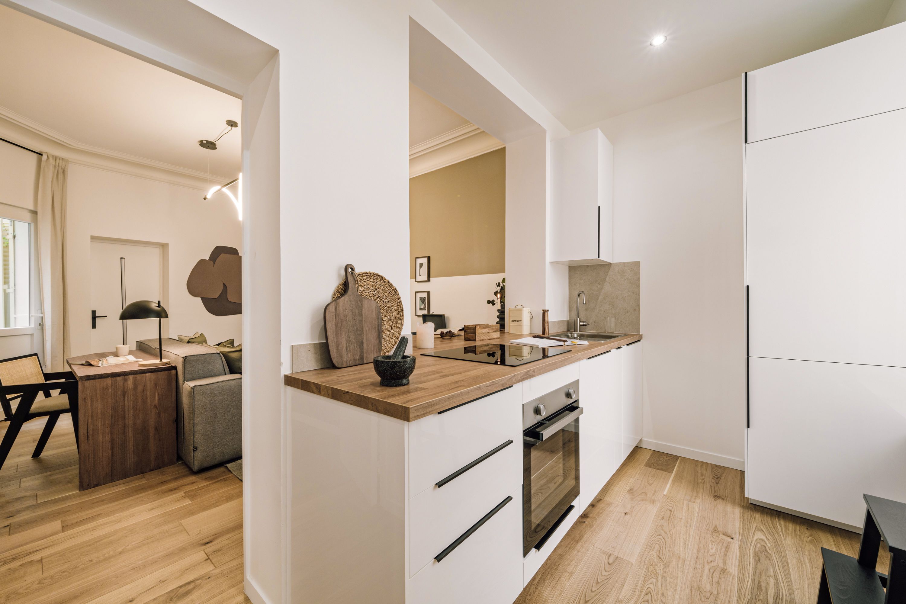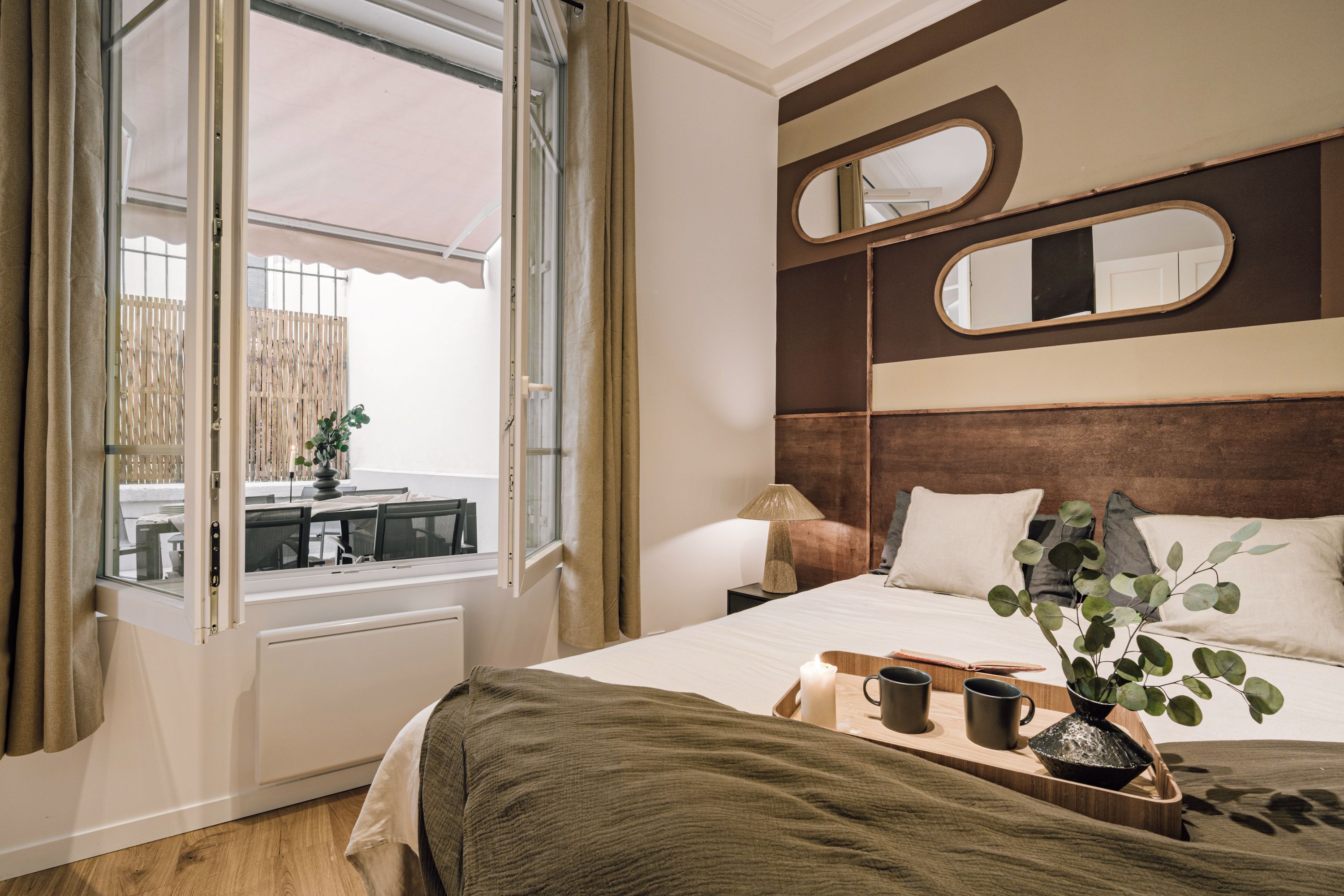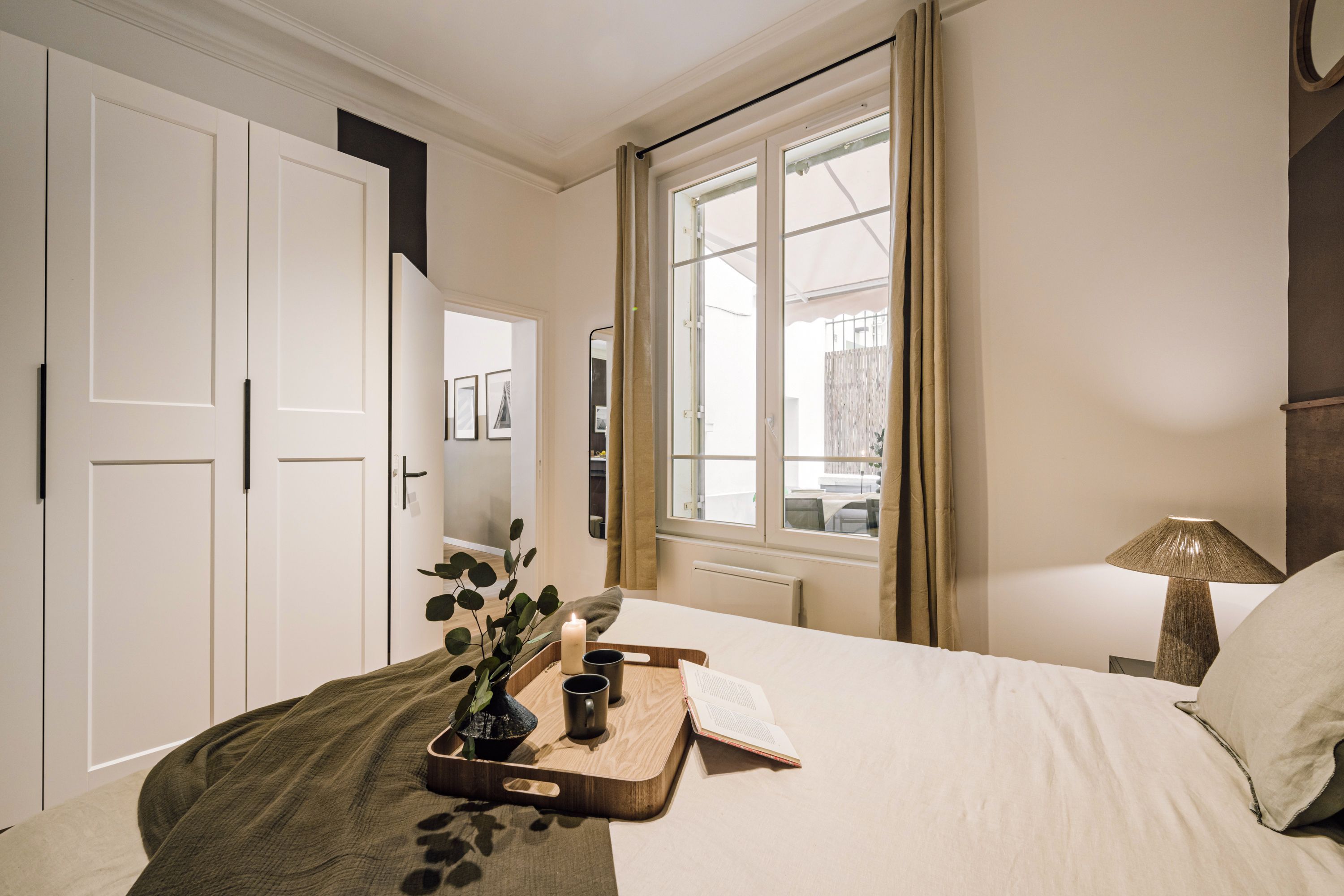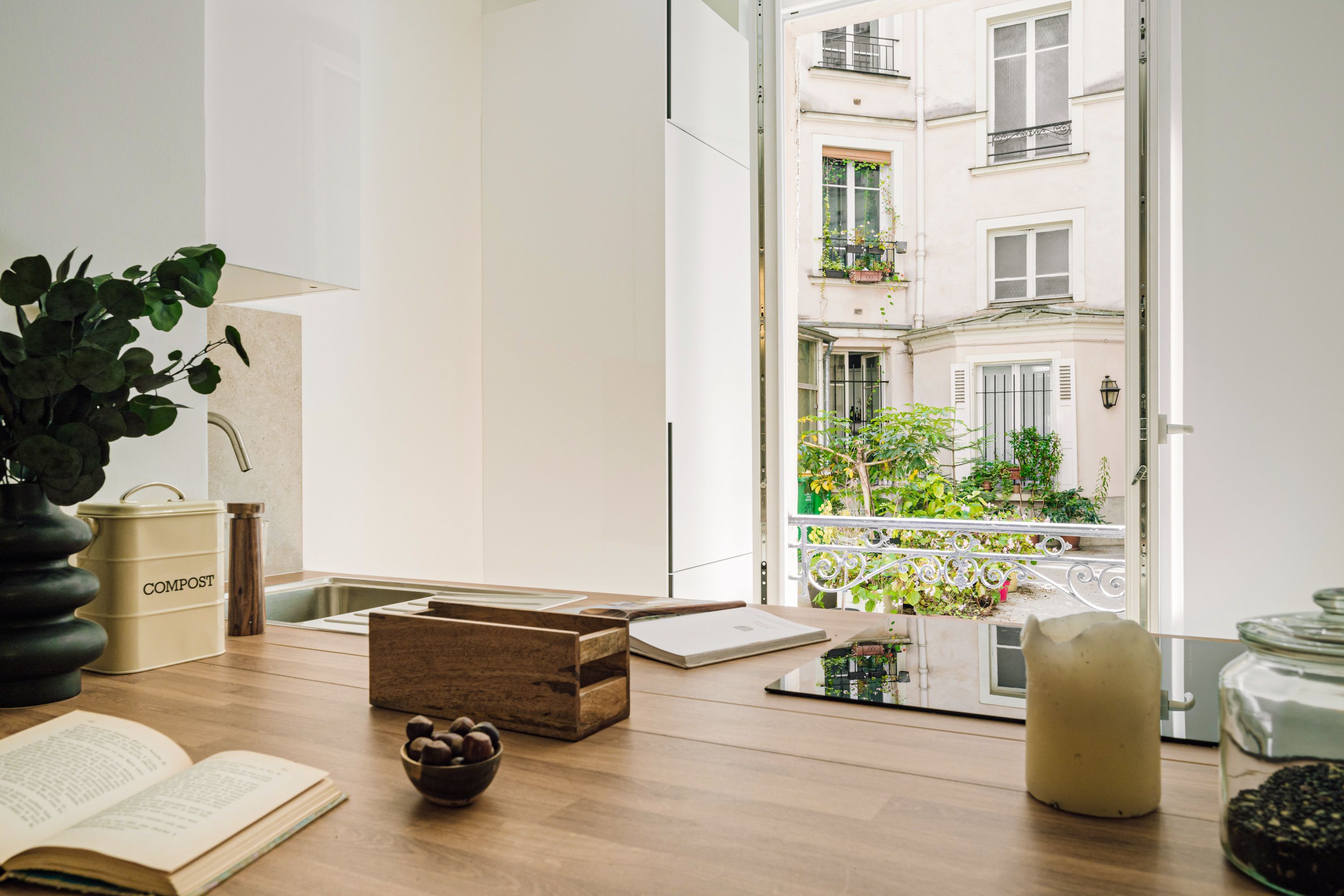 Situated in the predominantly residential area of Saint-Vincent-de-Paul in the 14th arrondissement, this district is known for its historic architecture. You’ll be within walking distance of Basilique du Sacré-Cœur and Montmartre with its charming streets. The area has fantastic public transport links so exploring the rest of Paris is easy. After a busy day of sightseeing, there’s a private terrace to relax on at this home. The well-equipped kitchen has views out over the communal internal courtyard too. This home is great for a couple, a single traveller or a business professional wanting plenty of space.