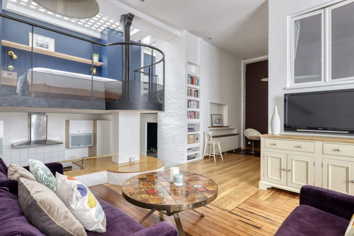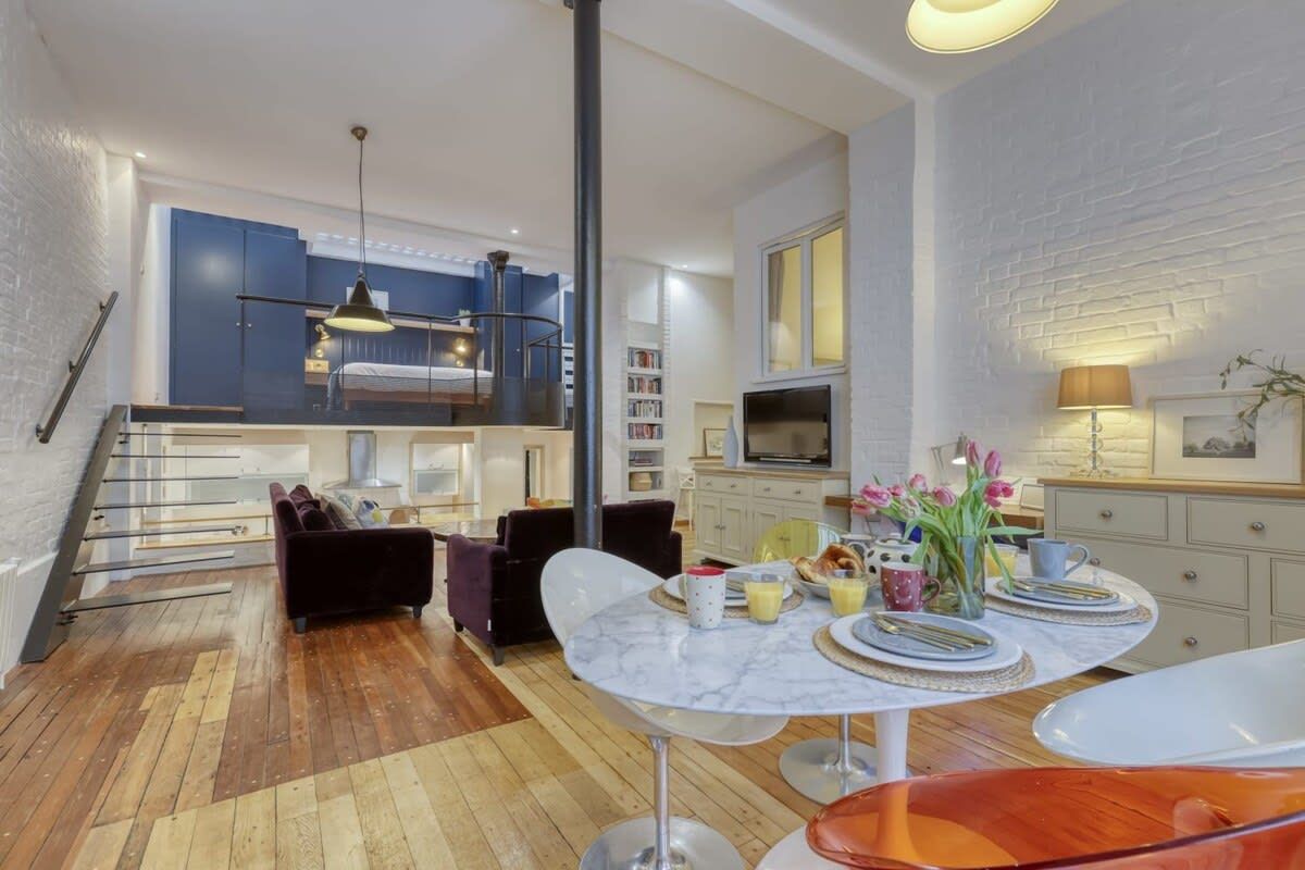 This chic apartment is perfect for families, friends, and couples seeking a cosy base in Paris. It’s in the 10th arrondissement, one of the liveliest parts of the city, with a wealth of restaurants and bars nearby. Shoppers will love having designer boutiques within easy reach, and culture-vultures will enjoy the proximity to excellent museums and galleries. The apartment is attractive and equipped with everything you might need for a city break, though we’d recommend a guest count of two if you’re seeking more privacy as the mezzanine-level bedroom is open to the living space below.