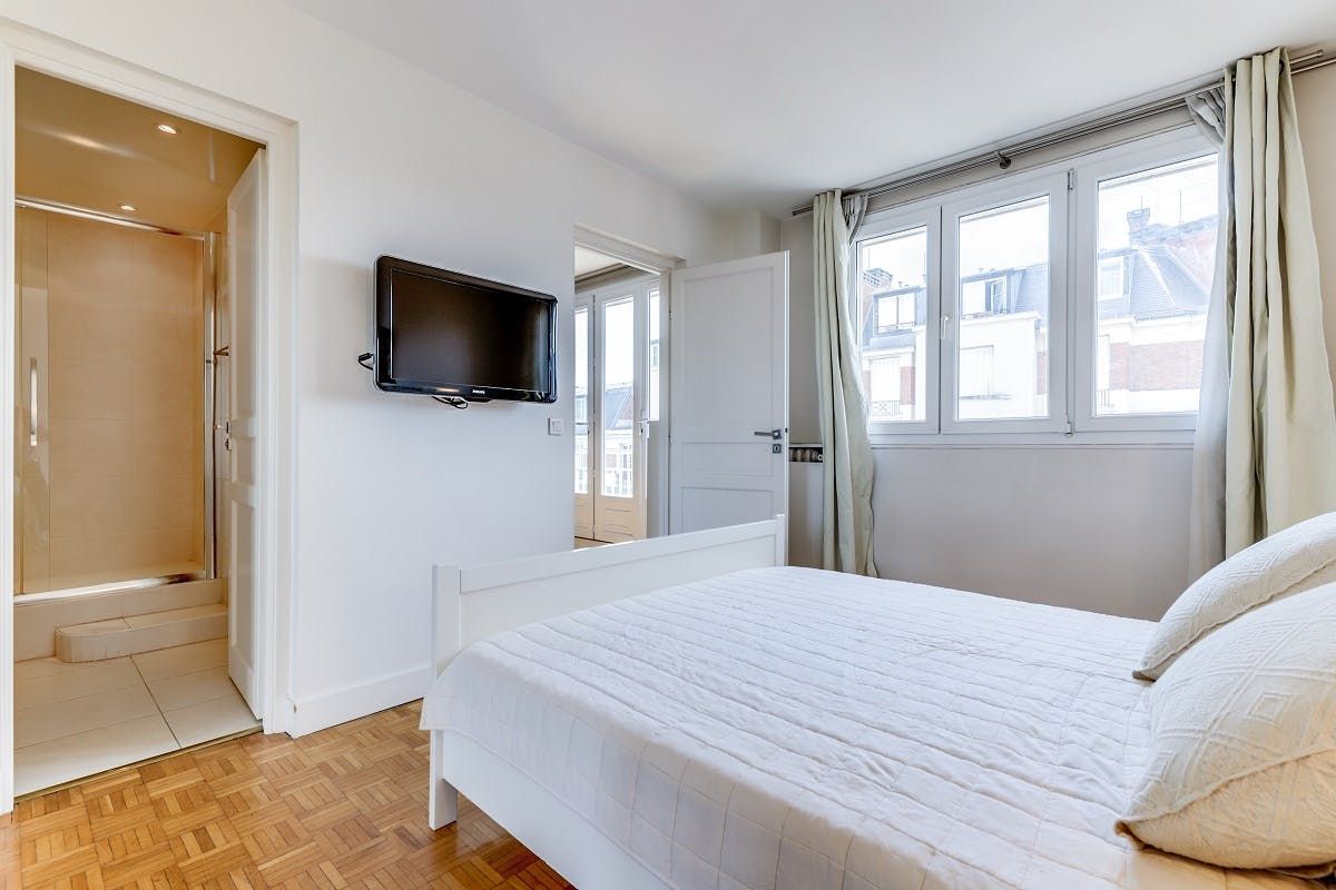 Home truths: *The small double bed only sleeps one guest, ideally a child. The third bathroom only has a shower and a sink – the toilet is separate. *At present, there's nowhere to sit on the balcony. However, it's still a nice spot to watch Paris pass by if you don't mind standing. *The kitchen is compact. We think it's best for rustling up light bites. *Given the home's central spot, expect to hear some street noise throughout your stay. *You won't need a car in Paris. Instead of driving, explore on foot or take advantage of easily accessible public transportation. *If you're travelling for work, you won't find a dedicated desk here. However, the dining table doubles up as a laptop-friendly workspace.