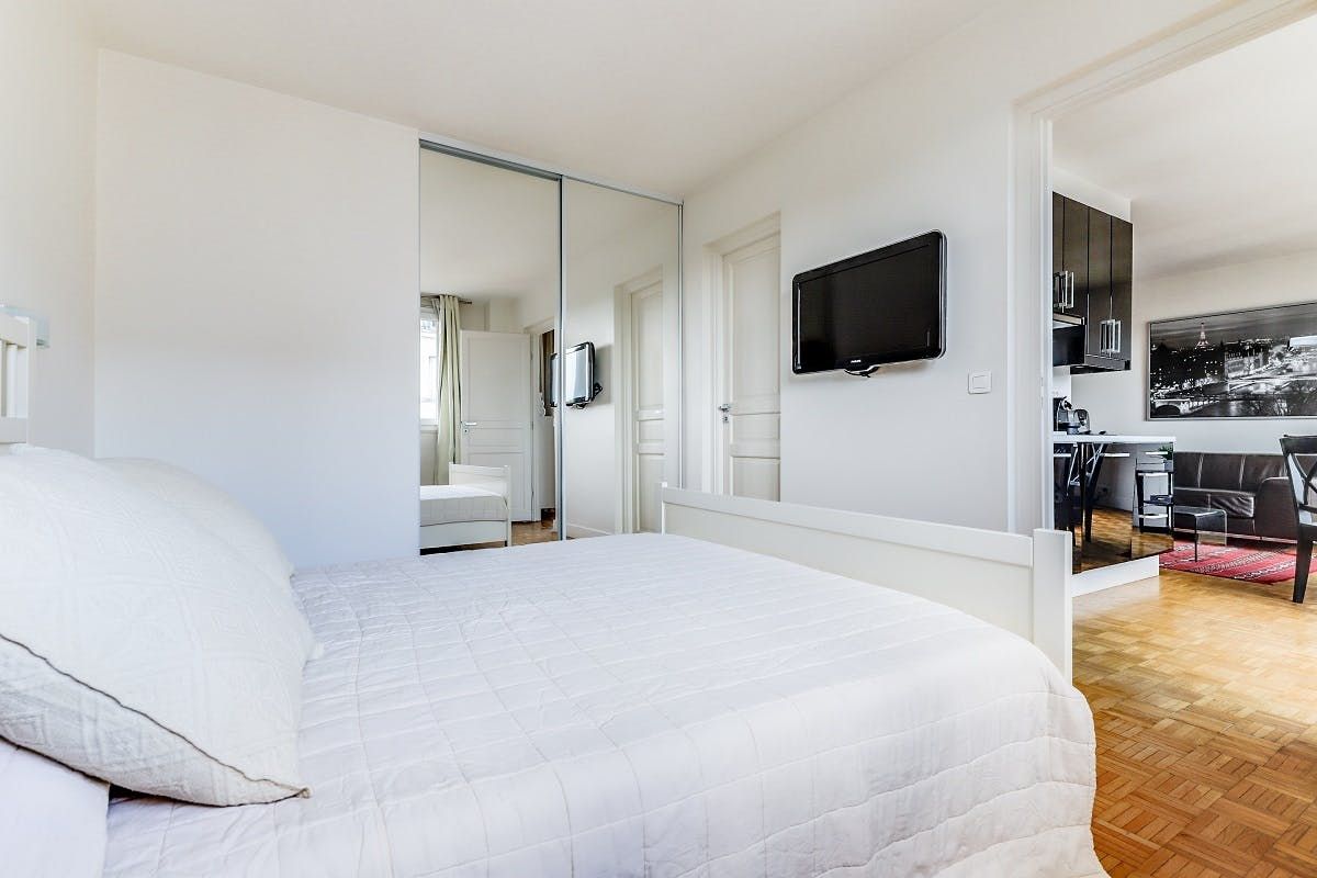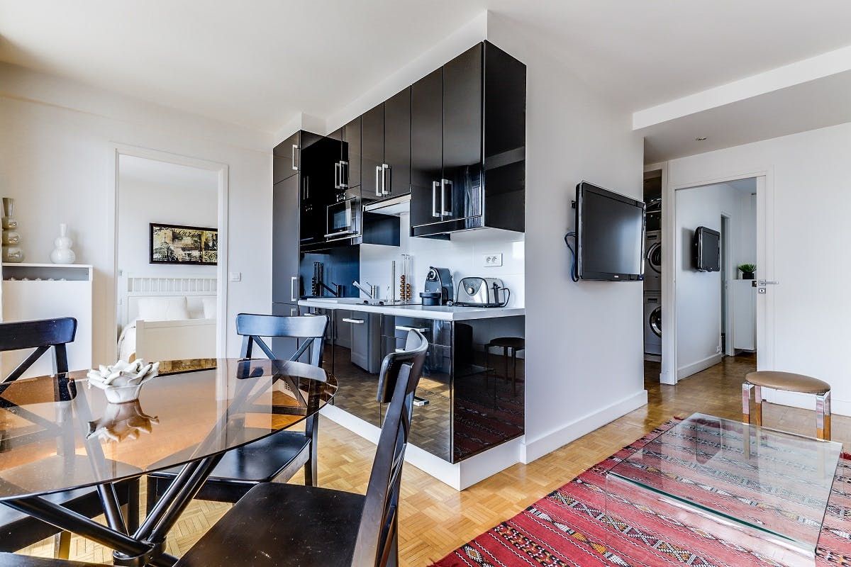 You'll find this apartment in the 15th arrondissement, a short stroll from metro stations, shops, and eateries. It's a fantastic base if sightseeing is at the top of your to-do list – the most famous landmark of them all, the Eiffel Tower, is easily reached on foot. You can even glimpse the top of it from the private balcony – there may not be anywhere to sit, but the street views are quintessentially Parisian. Inside, the kitchen is compact, and you'll have to do most of your unwinding around the table since there's not a lot of space on the sofa. But, to be so close to the action, we think that's a worthwhile trade.
