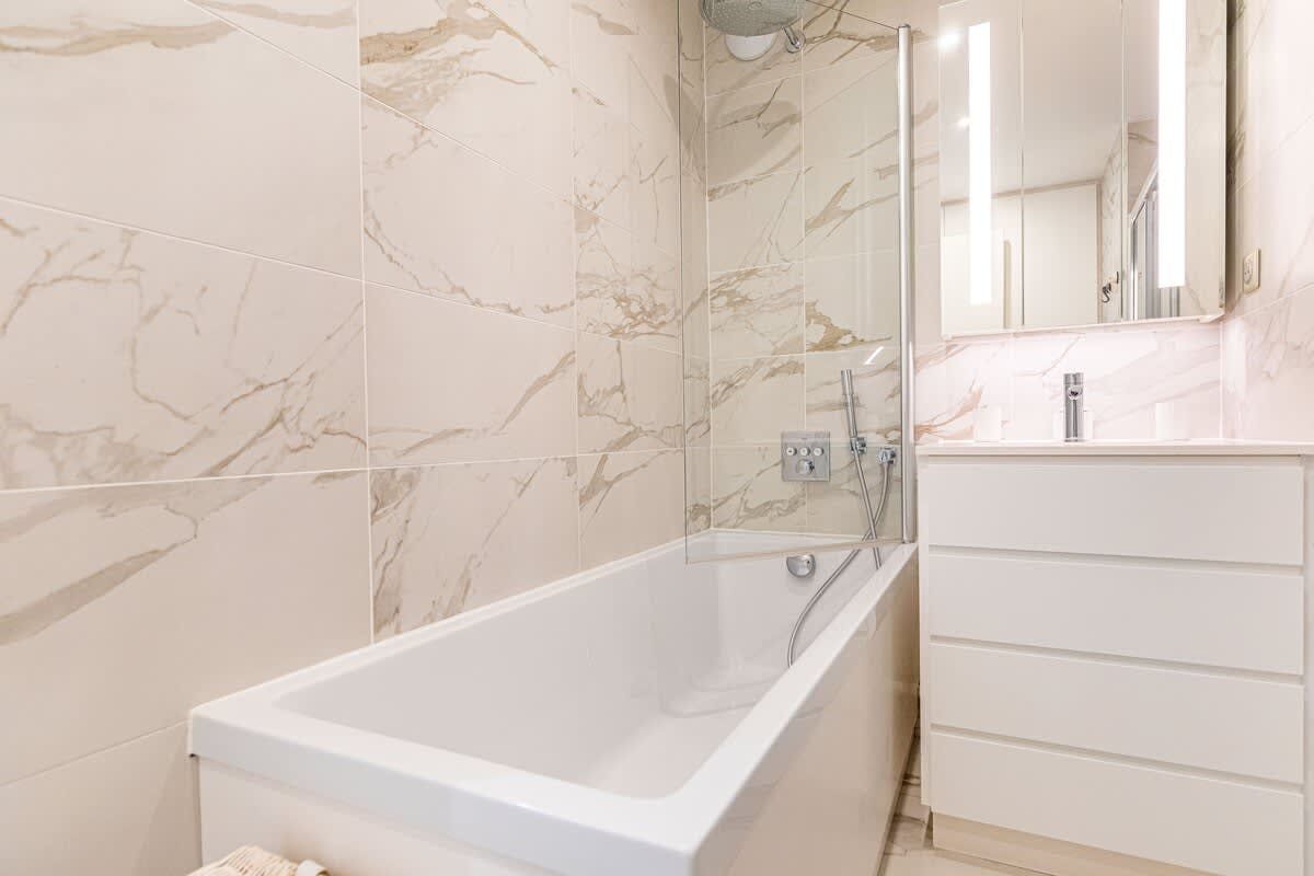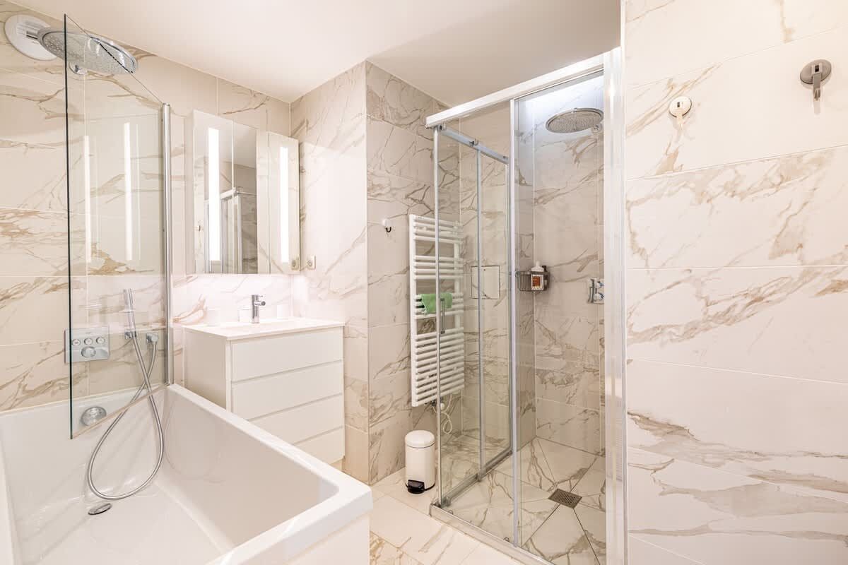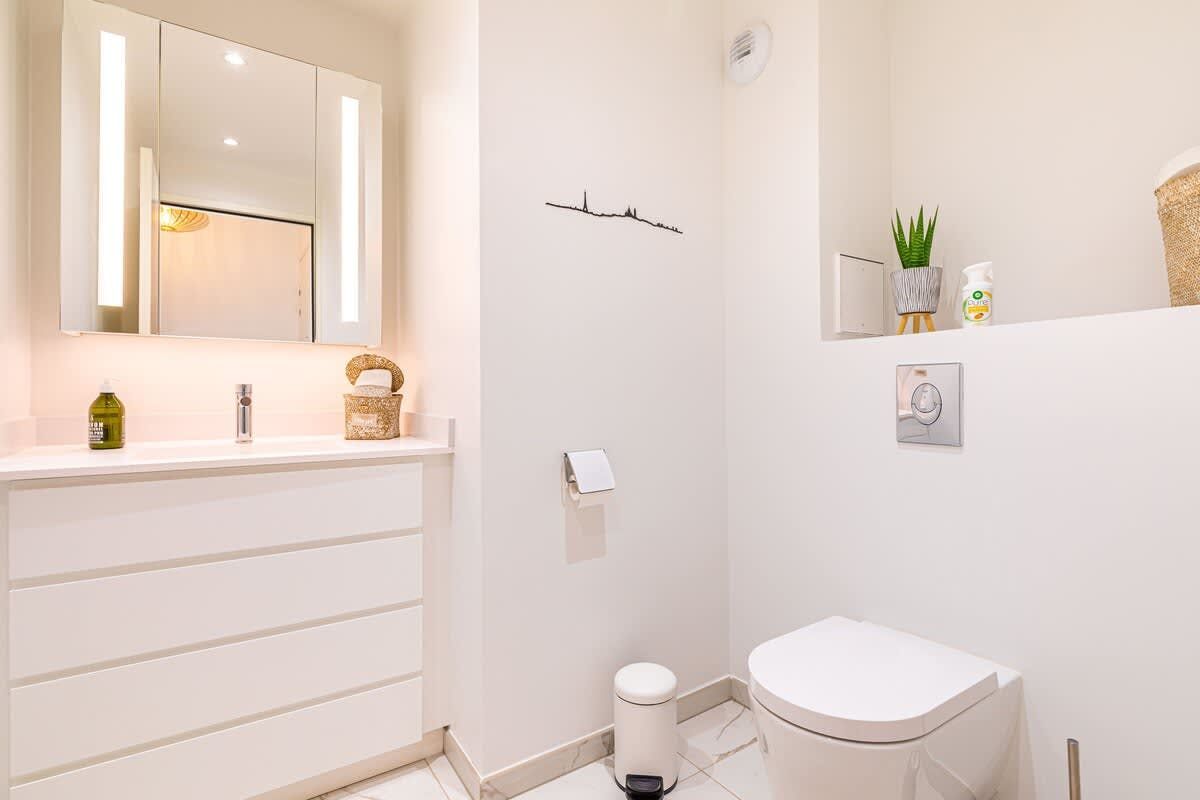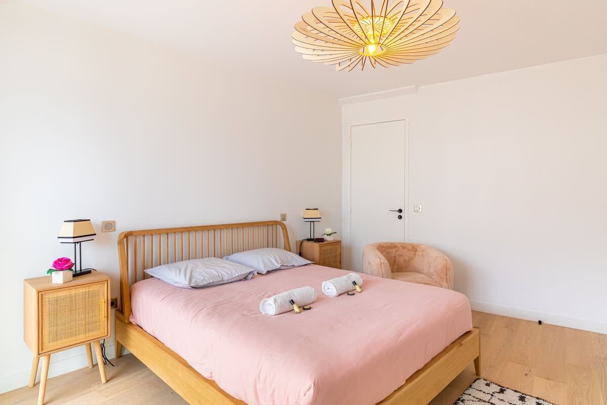 Whether you're here for work or play, this colourful apartment is the perfect base. It has two balconies – one with bistro seating for morning coffees or evening drinks – and an open-plan kitchen and living area with a breakfast bar and dining table (both double up nicely as a desk if you need it). Location-wise, it's in the tranquil neighbourhood of Boulogne Billancourt, a short walk from the Bois de Boulogne and the banks of the Seine. When you're ready to explore the rest of the city, the metro stop is right outside your door.