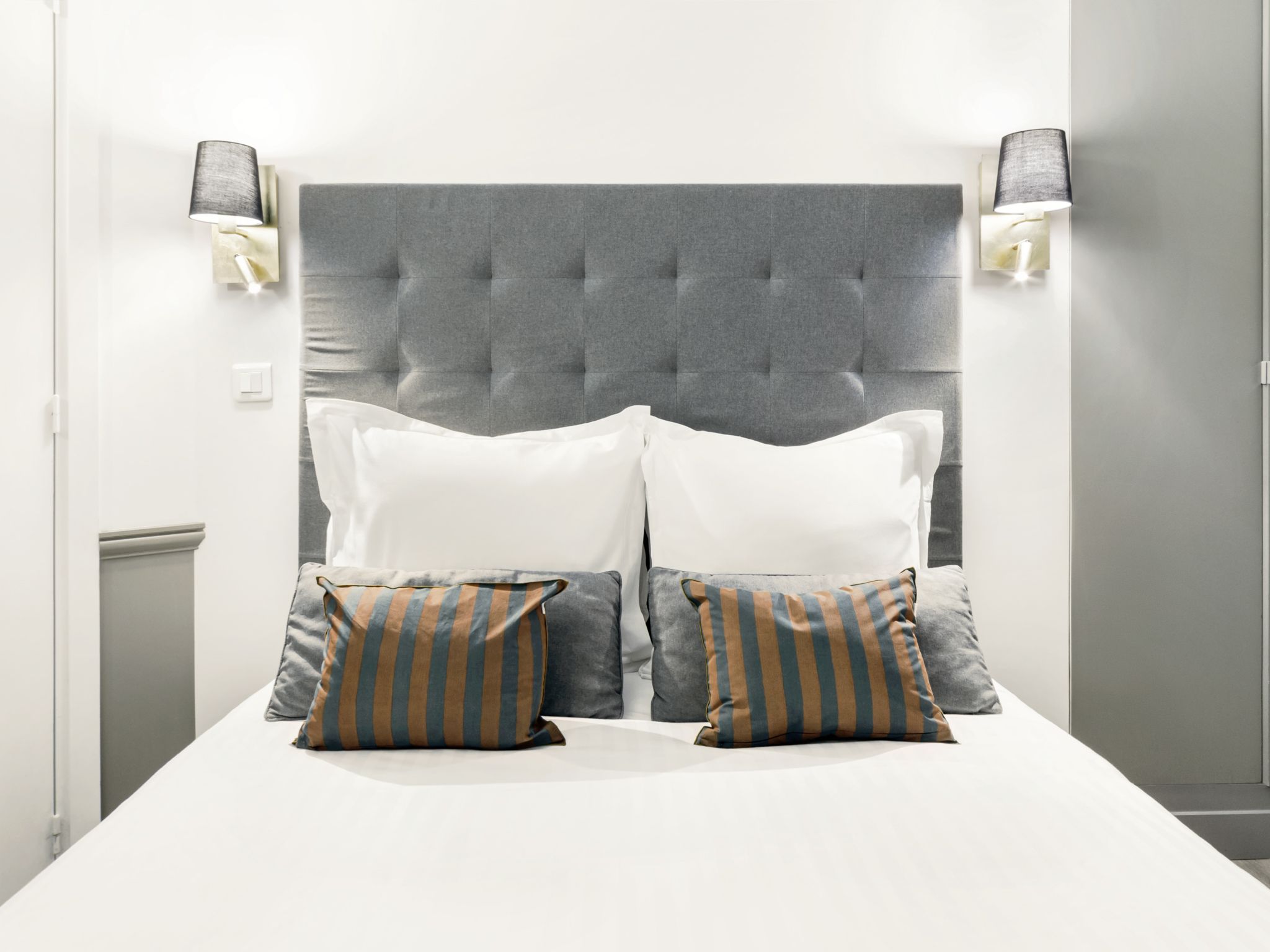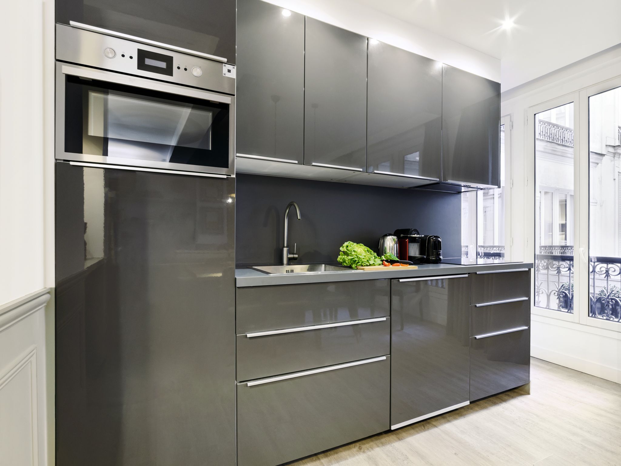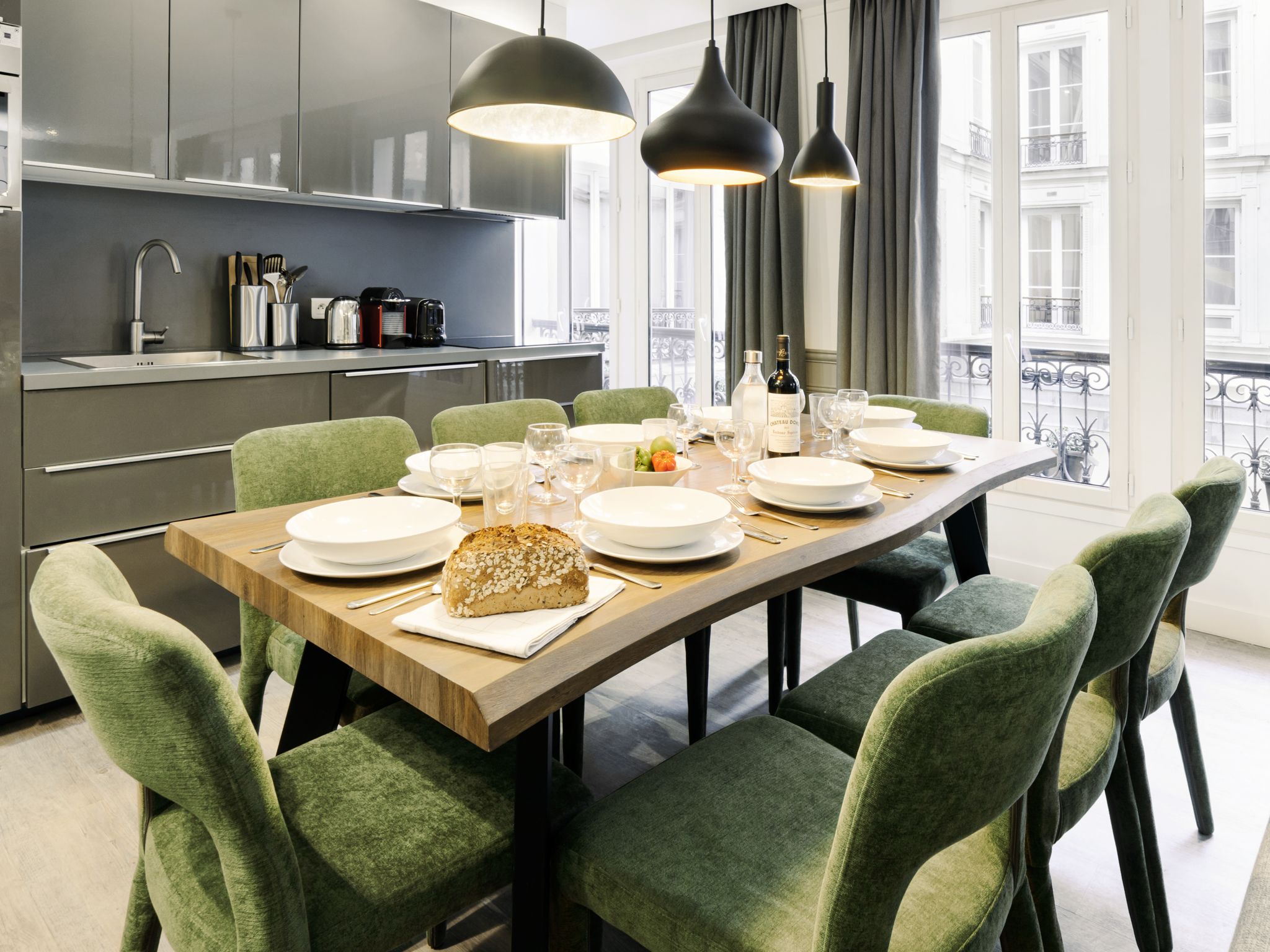 Settle into Parisian life with this sleek apartment, boasting charming courtyard views. The slate grey and crisp white colour palette creates a sophisticated vibe, where you can relax in style in between adventures. With an open-plan layout, you can chat with your guests as you cook, before opening up a bottle of red wine and gathering at the table for a homemade feast. Or, if you would prefer someone else took on the catering duties, then there are a diverse range of restaurants nearby, from classic French spots to noodle shops and hearty Middle Eastern eateries. The winding streets of Le Marais are some of the prettiest in Paris, and you'll love dipping into the indie boutiques and coffee shops as you explore. Visiting the city's iconic sights is easy from here too – Place de la République and the Musée des Arts et Métiers are both less than ten minutes away on foot. And, it takes less than twenty-five minutes to walk to the Louvre, or you can hop on the métro to arrive there in under fifteen.