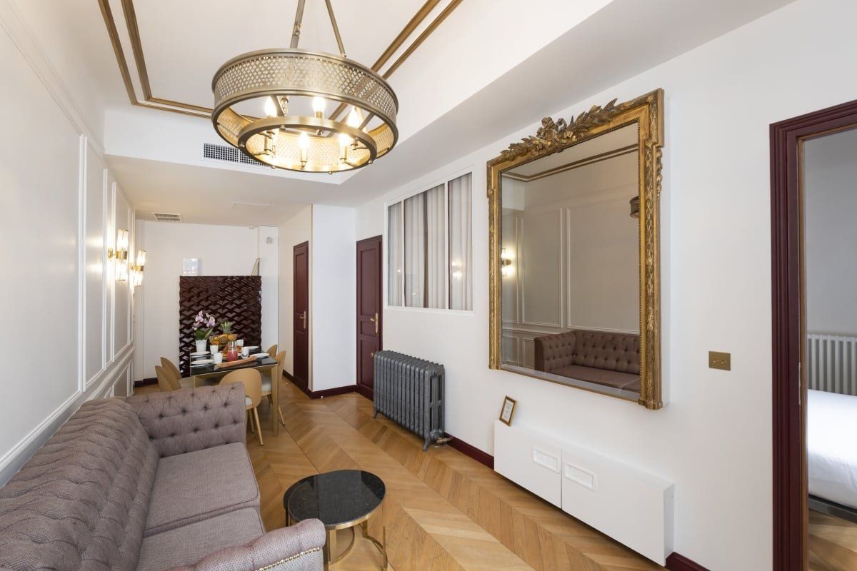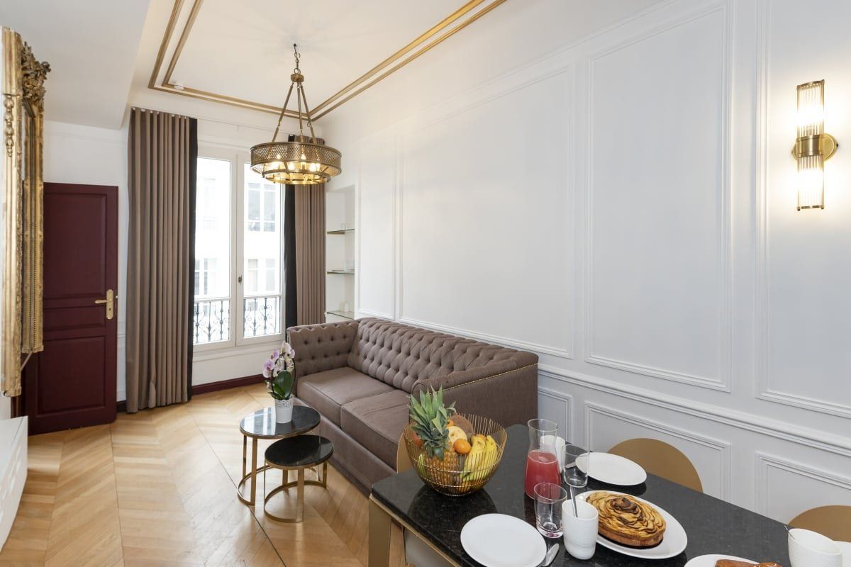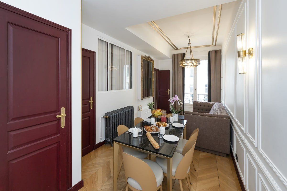 This petite apartment is classic Parisian in style. You’ll find elegant furniture and stylish touches throughout, and the floor-to-ceiling window floods the space with light – despite its small size this home packs a punch.