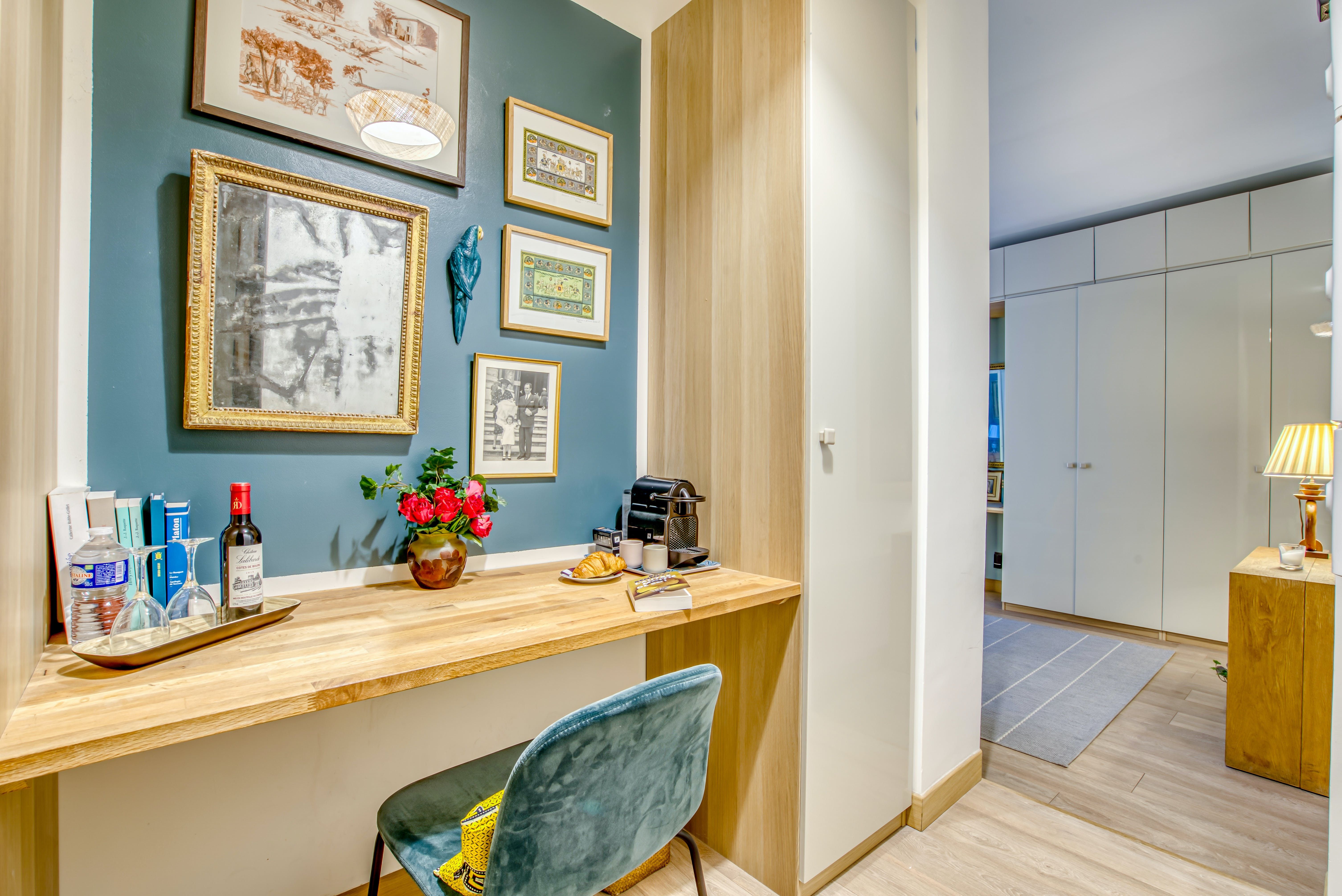 Natural light fills the home through large windows that open onto a small communal courtyard. The living area is contemporary and vibrant – with a velvet chaise longue, colourful textiles and eclectic artworks – this makes for a stylish space to unwind after a day exploring the modern works at Palais de Tokyo. If work is on the agenda, pick up a bottle of wine from a local cave and slip it in the fridge – when you’ve signed off from emails at your desk, pop the cork and relax. When hunger strikes, seek out a good steak and pomme frites, then take a late-night stroll along the River Seine to soak up the city's energy.