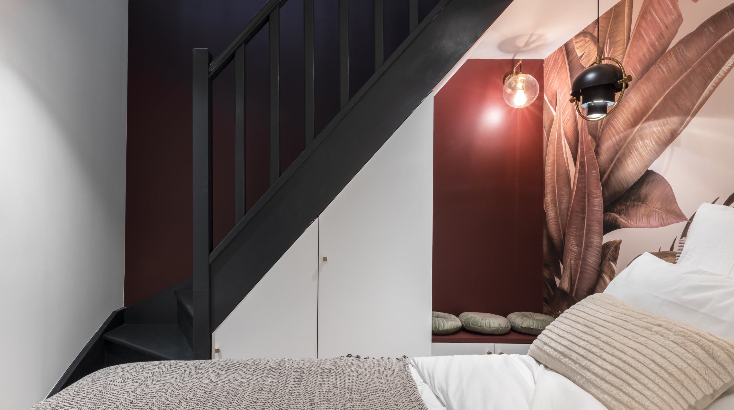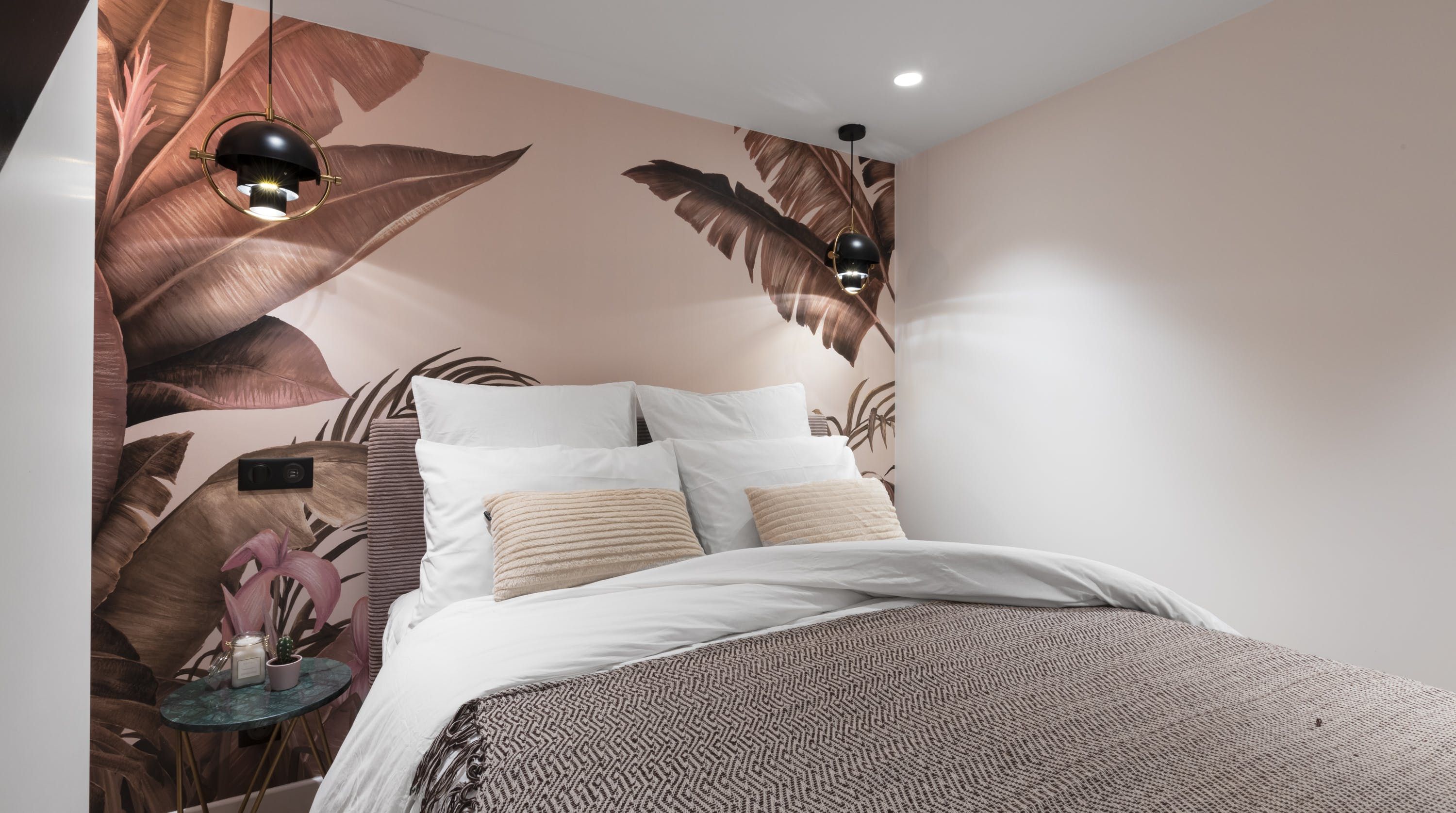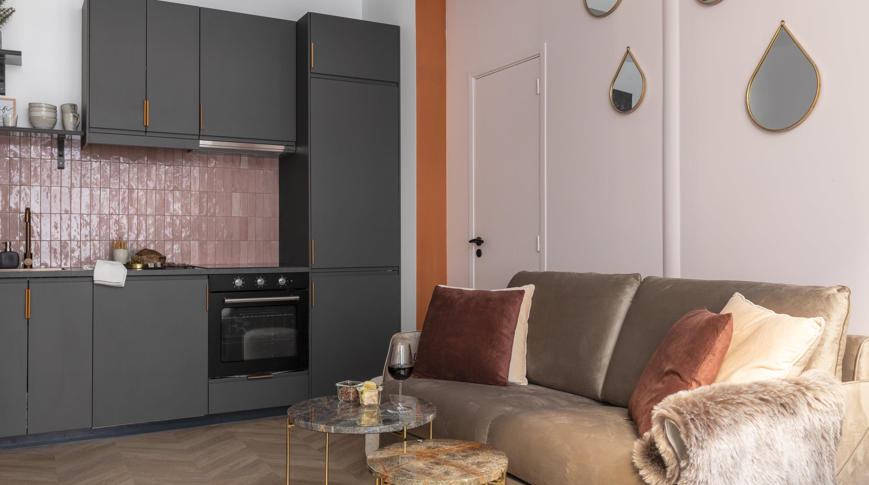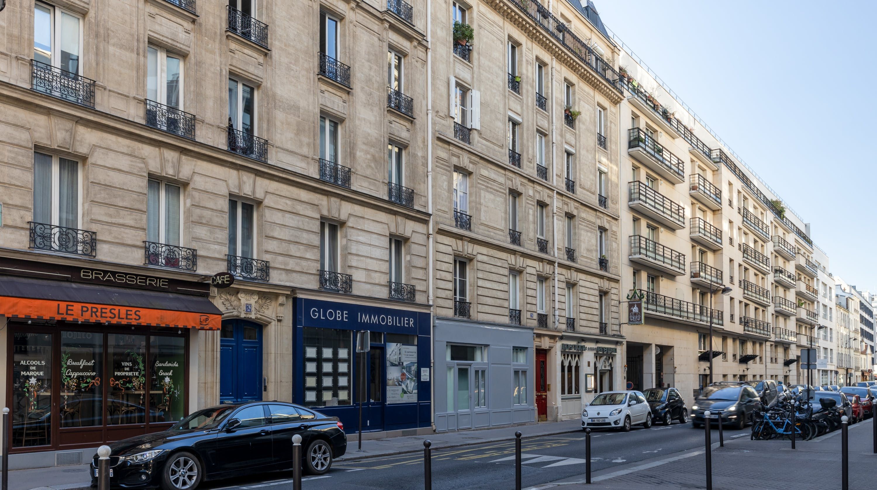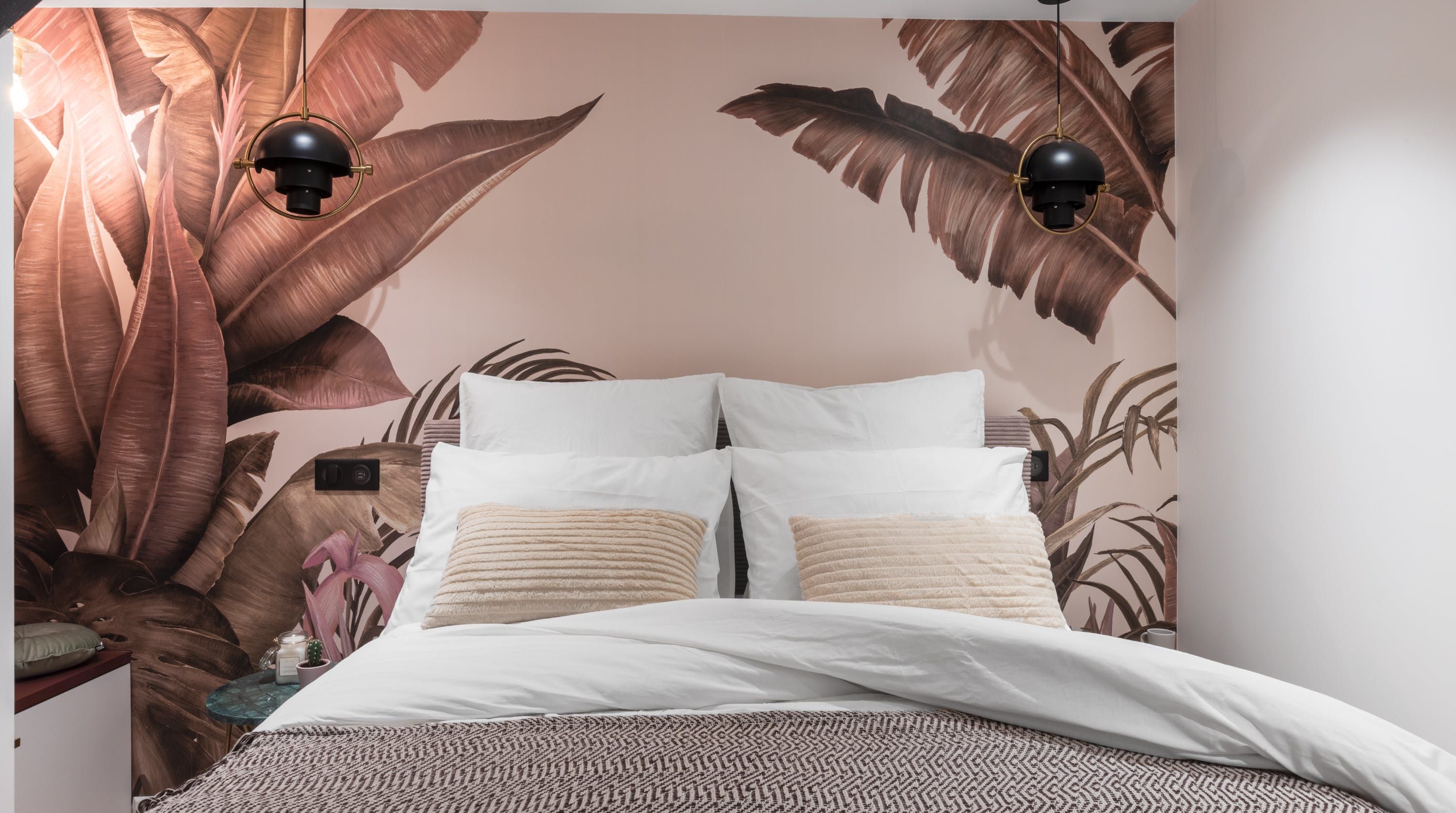 Back inside, this home packs a decorative punch with a neutral palette offset by soft pink accents, bold wallpaper prints and traditional parquet flooring. We love the pink backsplash in the kitchenette – perfectly suited for whipping up your morning croque madame or simply loading the oven with pain au chocolats. After a day exploring, eating and drinking, return to one of the cosy, beautifully decorated bedrooms for a delightful night's sleep, knowing the sights of the city of lights are just outside.
