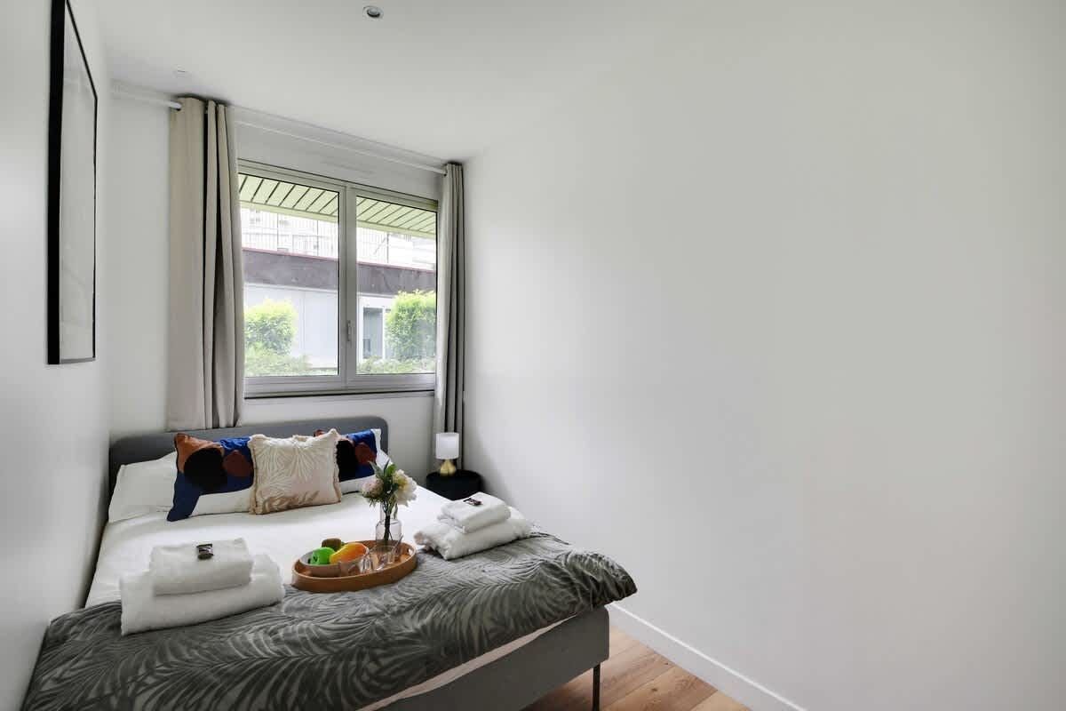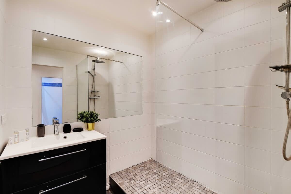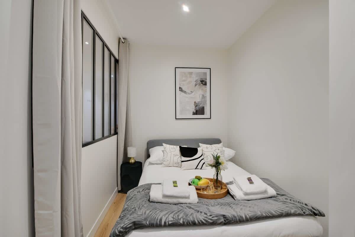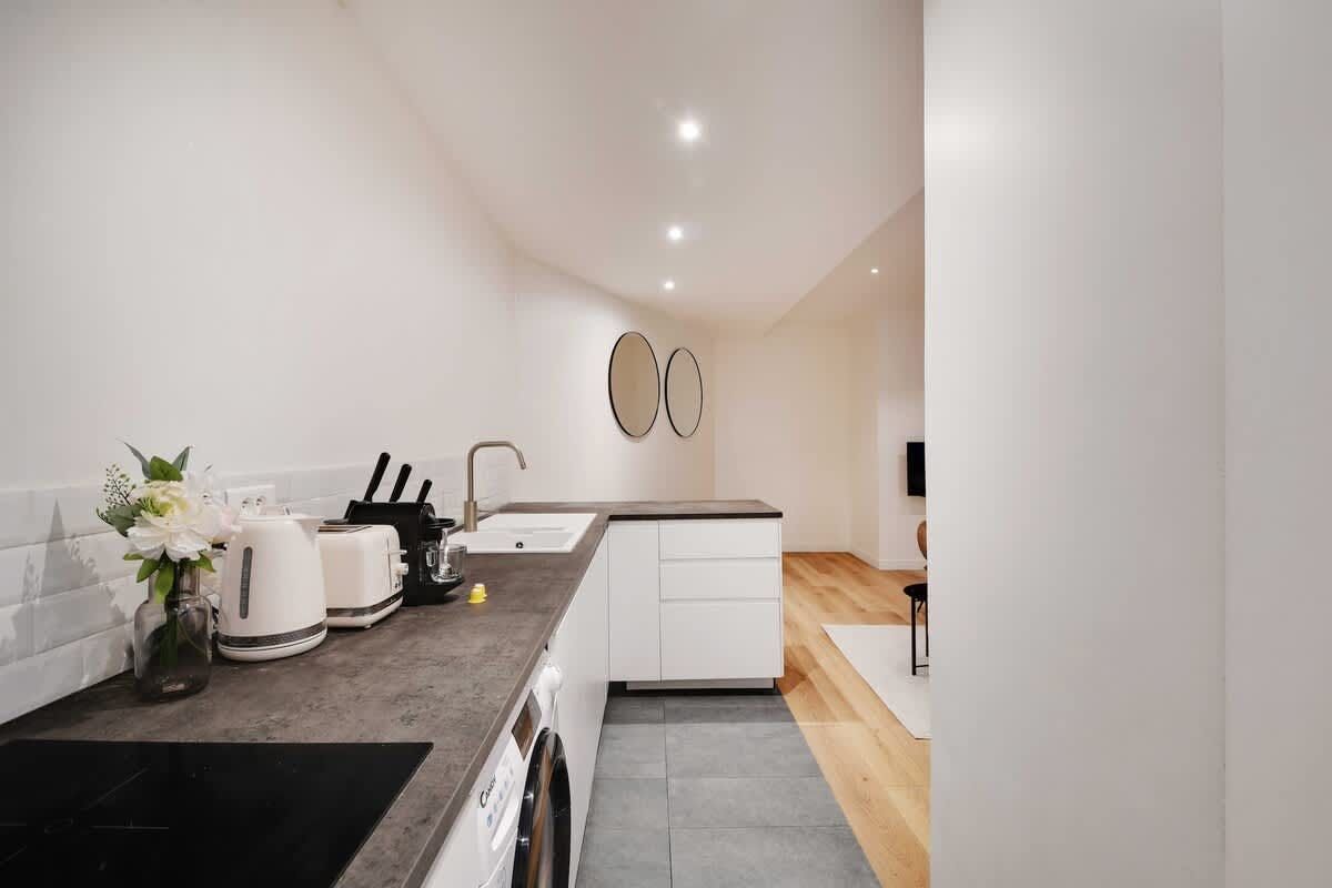 You’ll find this apartment a short walk from several green spaces. You can also easily walk to the historic Place de la Nation, along with plenty of shops and restaurants. The apartment itself has a large open-plan living space, which also sleeps two guests on a sofa bed at full occupancy. A few things to note. There’s only one sofa and not quite enough dining chairs for eight guests. Also, one of the bedrooms borrows light from the lounge area, and in general, the bedrooms are a bit snug. But they have everything you need for a comfortable night’s sleep.