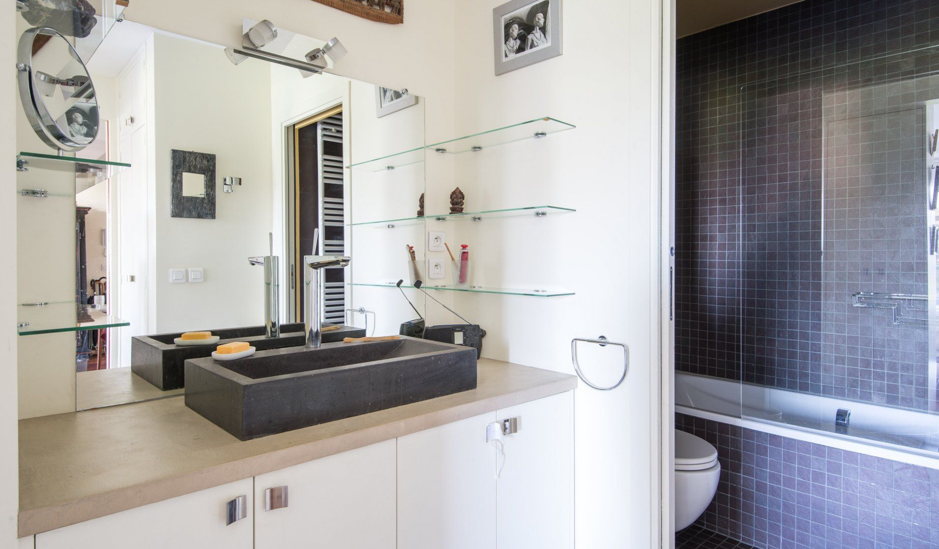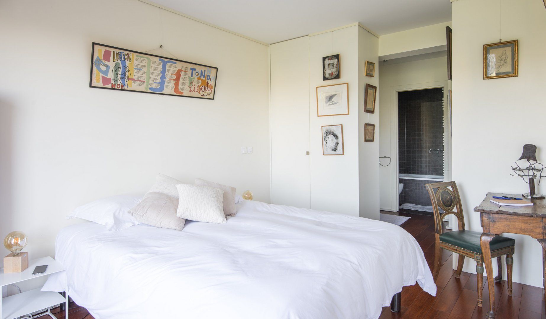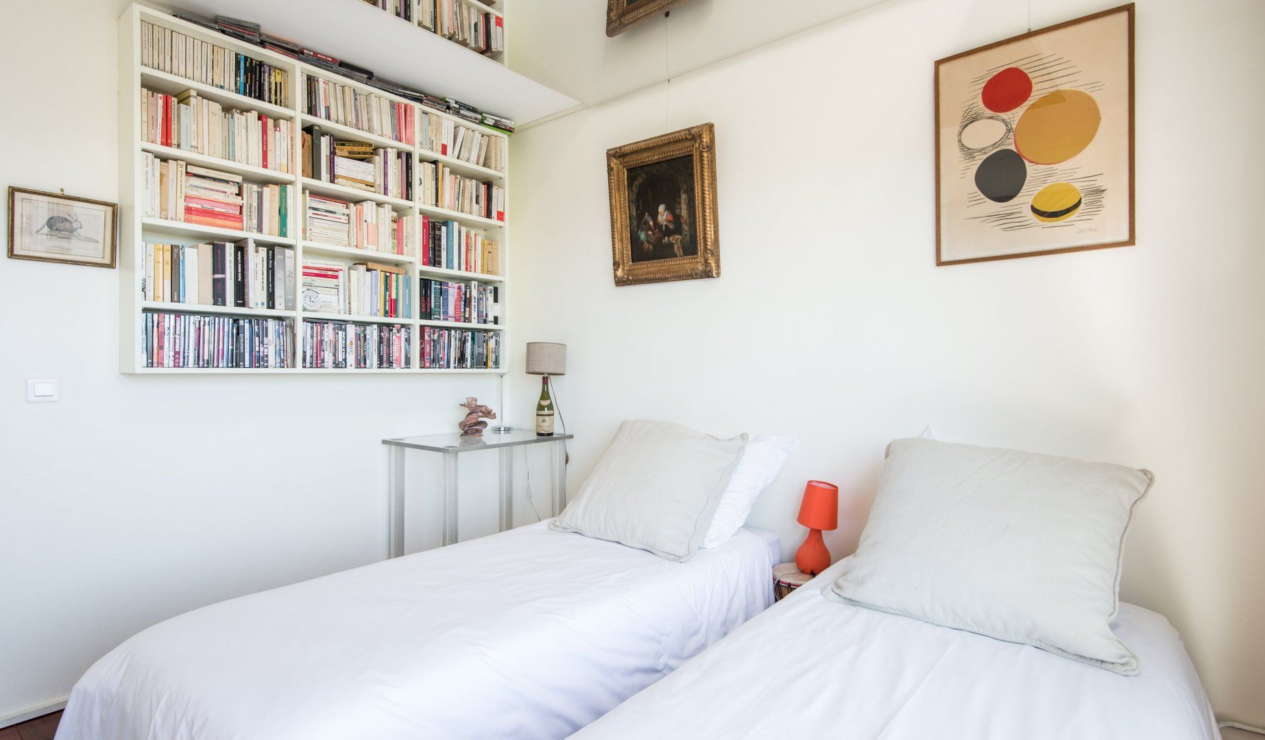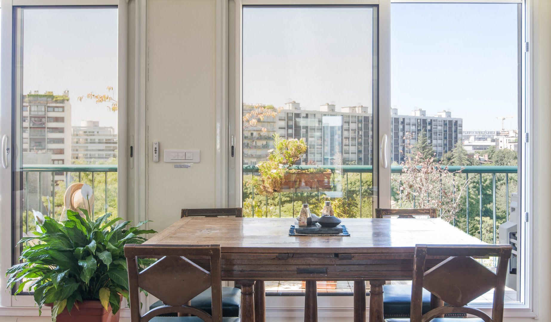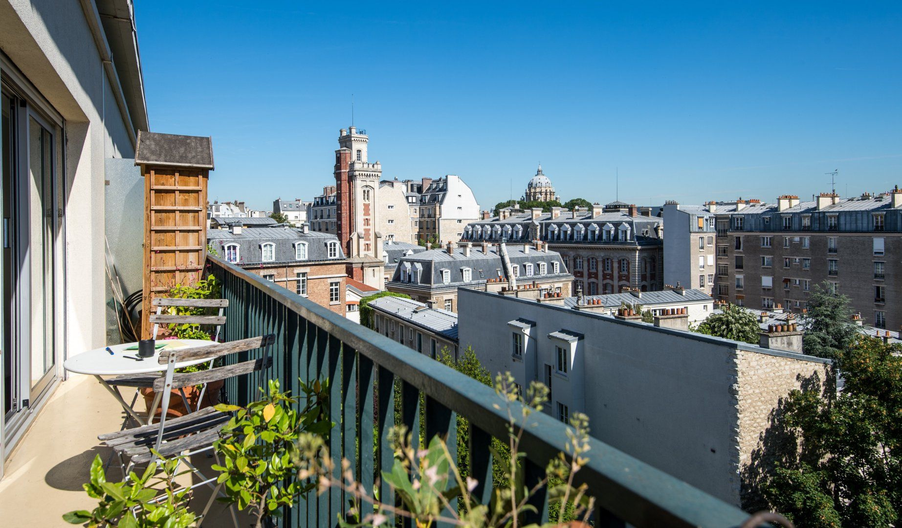 This Parisian apartment's traditional interior design features antique wood furnishings, a Persian rug and bookshelves so tall that they come with a ladder system to reach those hidden away at the top. We found it had the refined atmosphere of a quiet and cosy library, but that's until you step out through the large glass doors that take up one side of the light-filled living space and onto the home's suntrap of a balcony. Being up on the eighth floor means that there's a wonderful view of the south Paris skyline and the towering dome of the Pantheon can even be spotted. It should give you a bit of inspiration to go out and explore the French capital. The spectacular Jardin du Luxembourg is only fifteen minutes away on foot, as are the Catacombs if you fancy a unique historical perspective of the city.