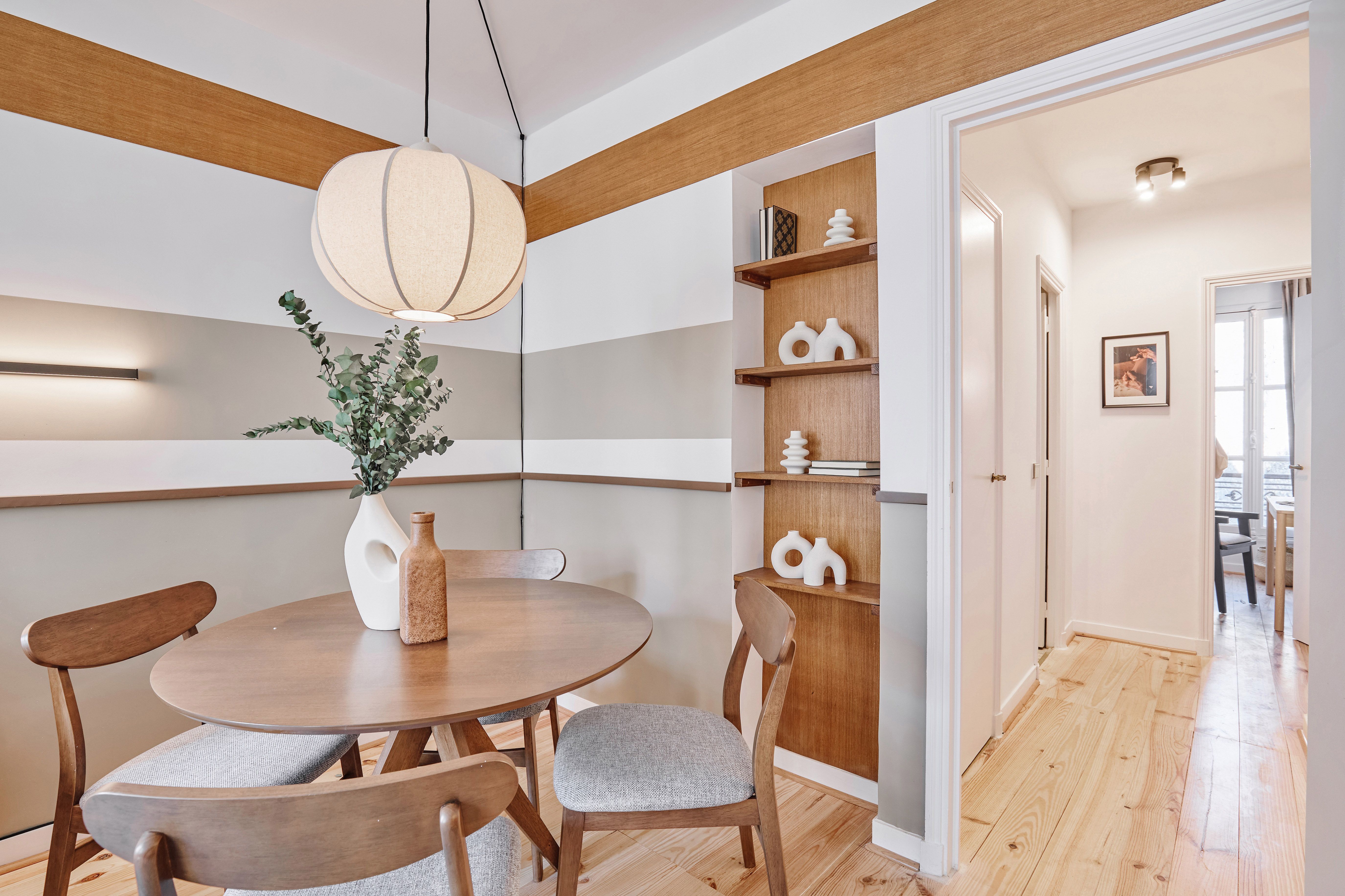 This apartment is in the 6th arrondissement of Paris, where charming residential streets are adorned with classic Parisian architecture. It’s close to the Metro, with easy access to the attractions of Paris, positioned pleasantly between the green spaces of Jardin du Luxembourg and Cimetière du Montparnasse. The decor is chic – this is warm, welcoming place to call home, with floor-to-ceiling windows. There’s a petite kitchenette and a workspace, making this a practical, convenient base.
