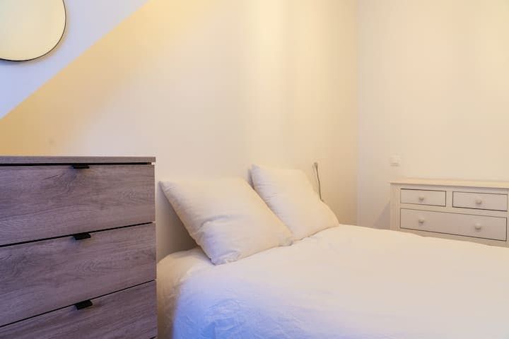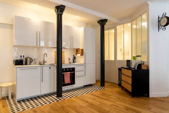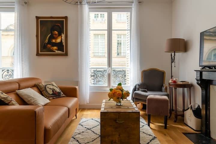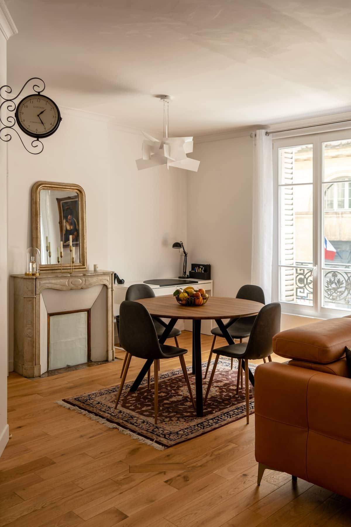 Live like a Parisian at this homely apartment filled with original features, antiques and art. Located in the 6th arrondissement, this Old-World pad puts you in the heart of the city yet with the sprawling greens of the Luxembourg Gardens right on your doorstep. Less than a ten-minute walk to the peaceful surroundings in one direction, and yet only a fifteen-minute stroll from the Louvre in the other – perhaps a little longer, if you include the pastry and flat-white pitstops along the way. Surrounded by typical cafés, cheery bistros and a handful of gourmet restaurants, there's plenty to distract you en route. Back inside, where this apartment paints the perfect picture of traditional Parisian living with its charming fireplace features, striking pillars, lightwood flooring and wrought-iron balconies. We love how the home's hard, yet elegant interiors are softened by the warm leather brown sofa, period portraits and quaint decor. It's a beautifully rustic space with all of the usual mod-cons needed for a comfortable stay. Snuggle up on the sofa with a novel, draw yourself a relaxing bath in the freestanding tub, or catch up on work at the desk, before a night out on the town.