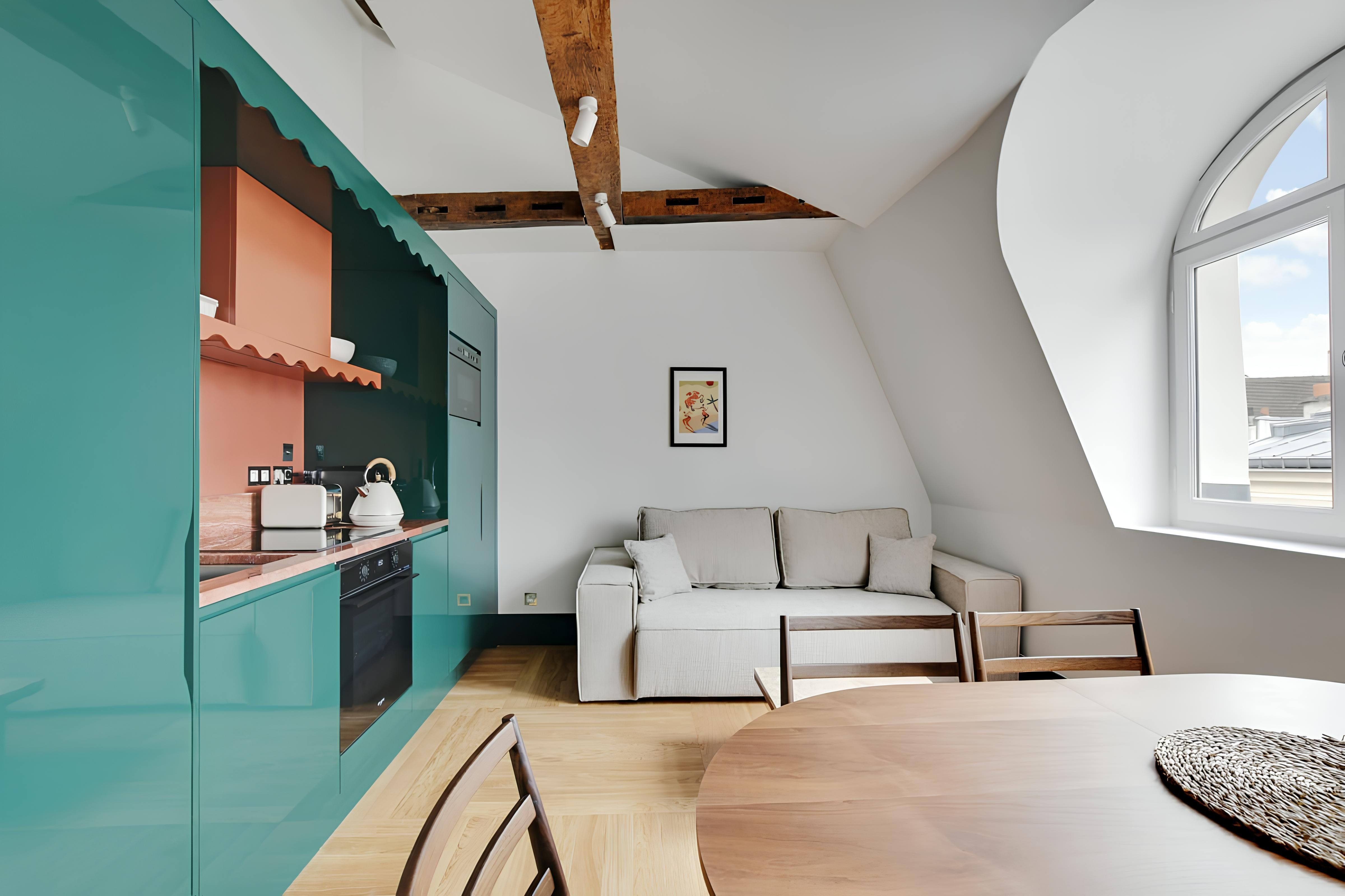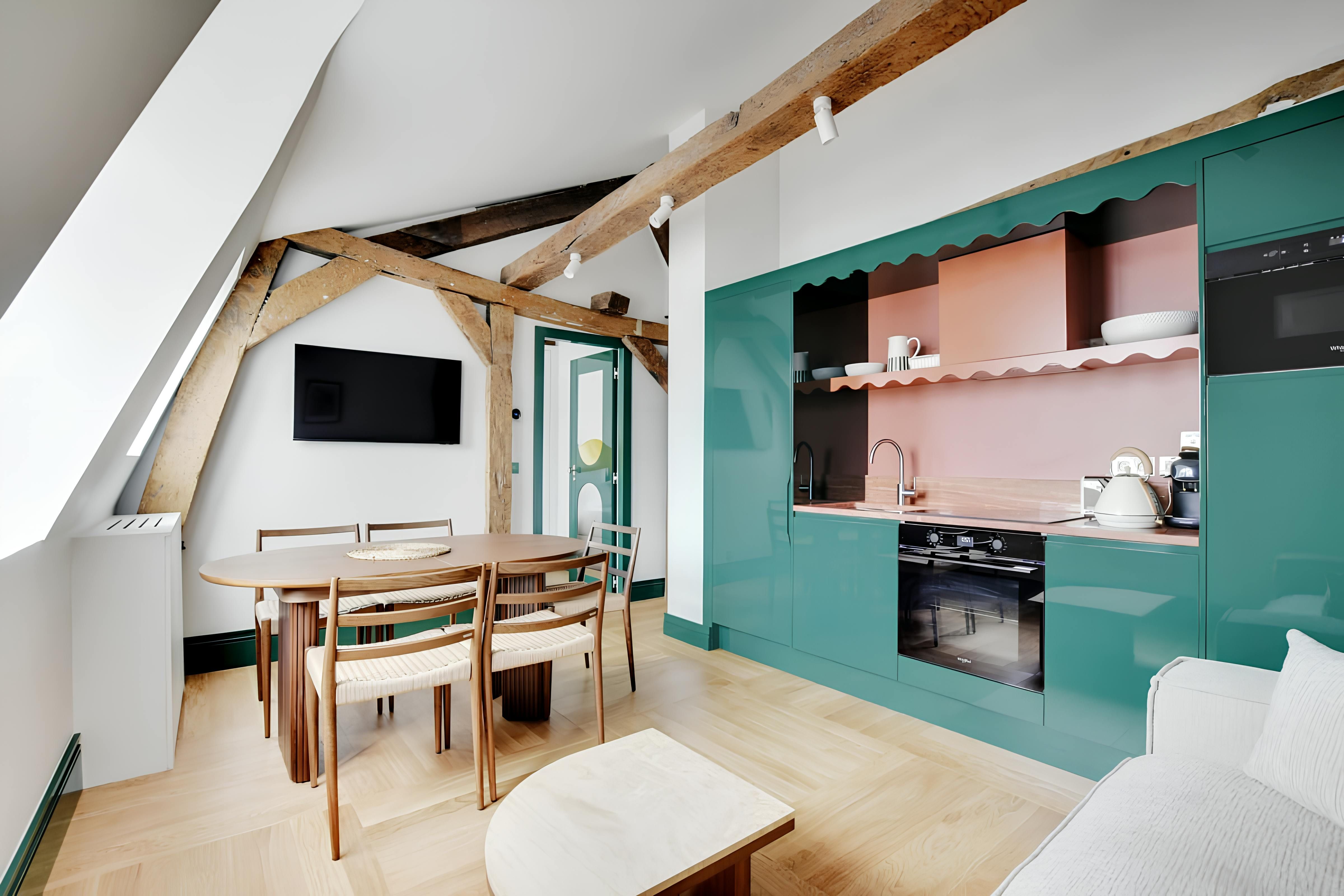 Just along the Seine from the Notre-Dame, this delightful apartment boasts a prime location in Paris. You’ll have your pick of restaurants, boulangeries, and bars, and Shakespeare and Company – one of the most beloved bookshops in the world – is just a stone’s throw away. The apartment has been charmingly decorated with bold splashes of colour and quirky details juxtaposed with traditional features like exposed beams. It’s a real home-from-home, the kind of space you can relax in during a busy city break. We especially love the pretty open kitchen – it wouldn’t be out of place in Barbie’s Dreamhouse.