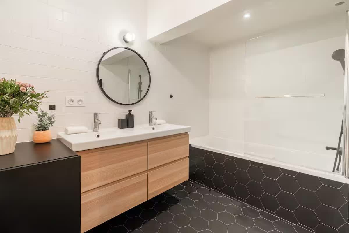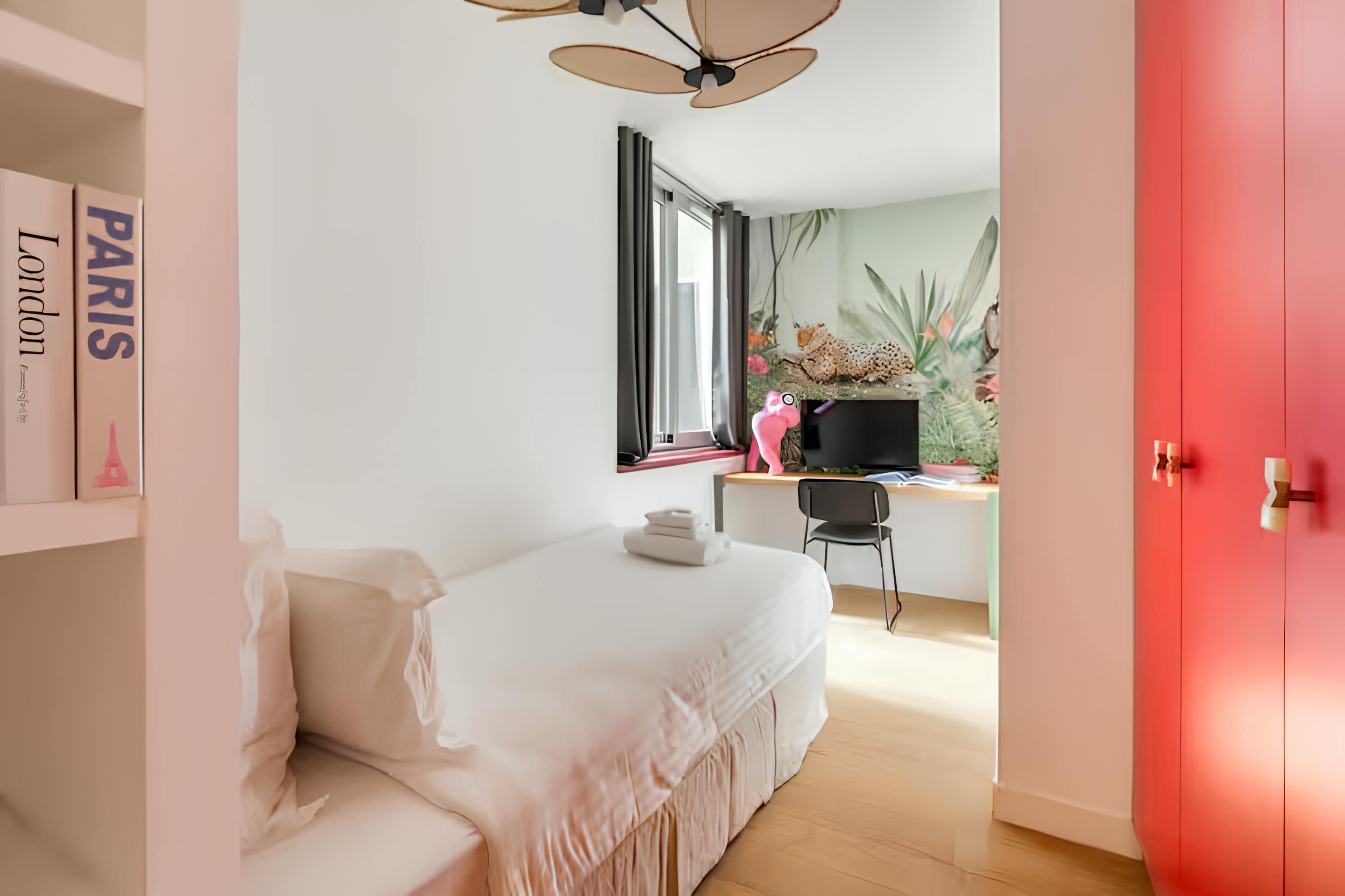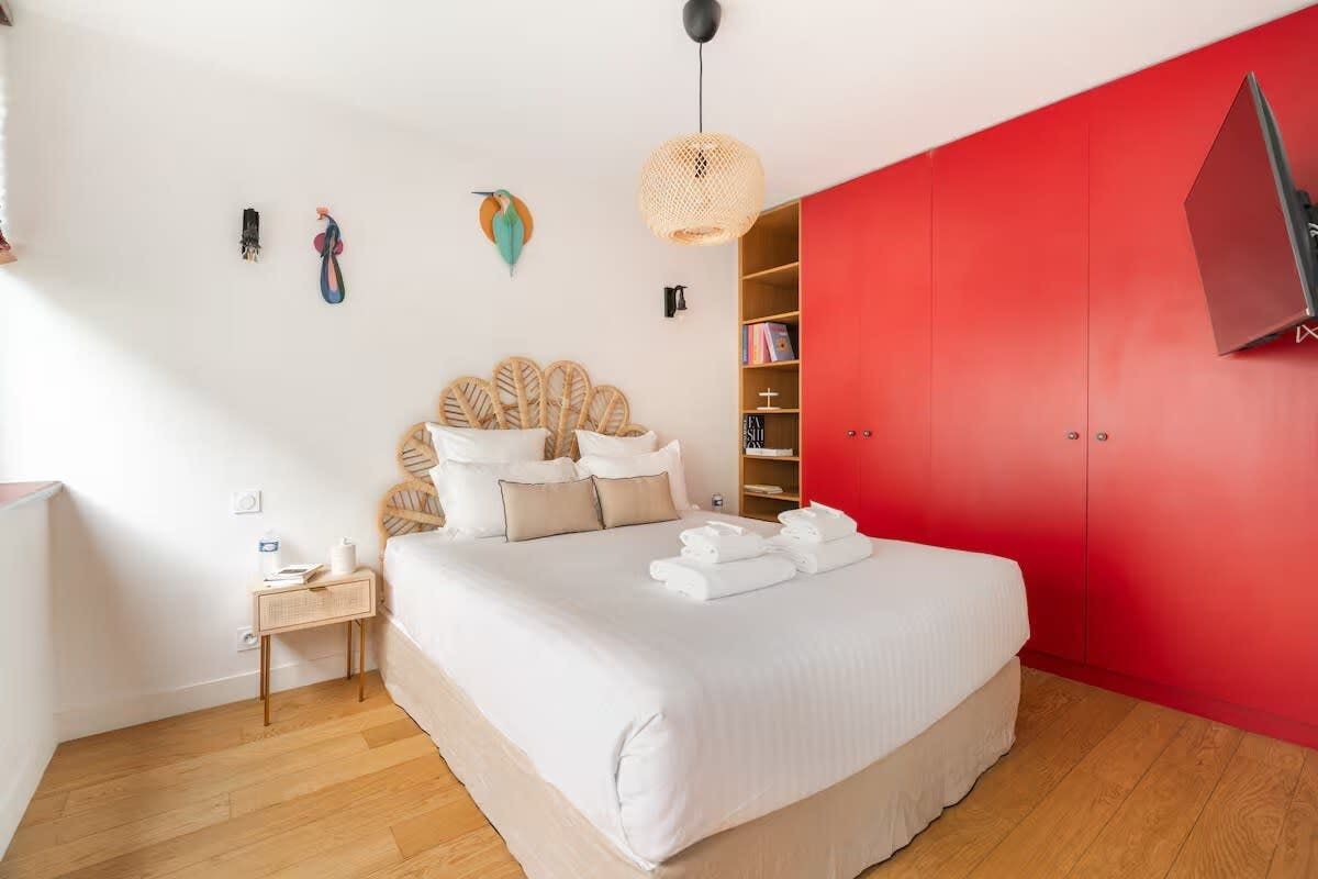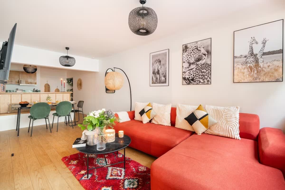 We love how bright and attractive this home is. It’s an excellent base for a family or group of friends, as long as two guests don’t mind sleeping on a sofa bed. The open-plan living and dining space is perfect for spending time together, whether you’re cooking in the kitchen or lounging on the sofa with a glass of wine. Stepping outside into the Beaugrenelle district, cafes and restaurants are nearby, as well as Metro stations. You can walk to Champ de Mars and the Eiffel Tower, and take the Metro to Opéra and Bastille.
