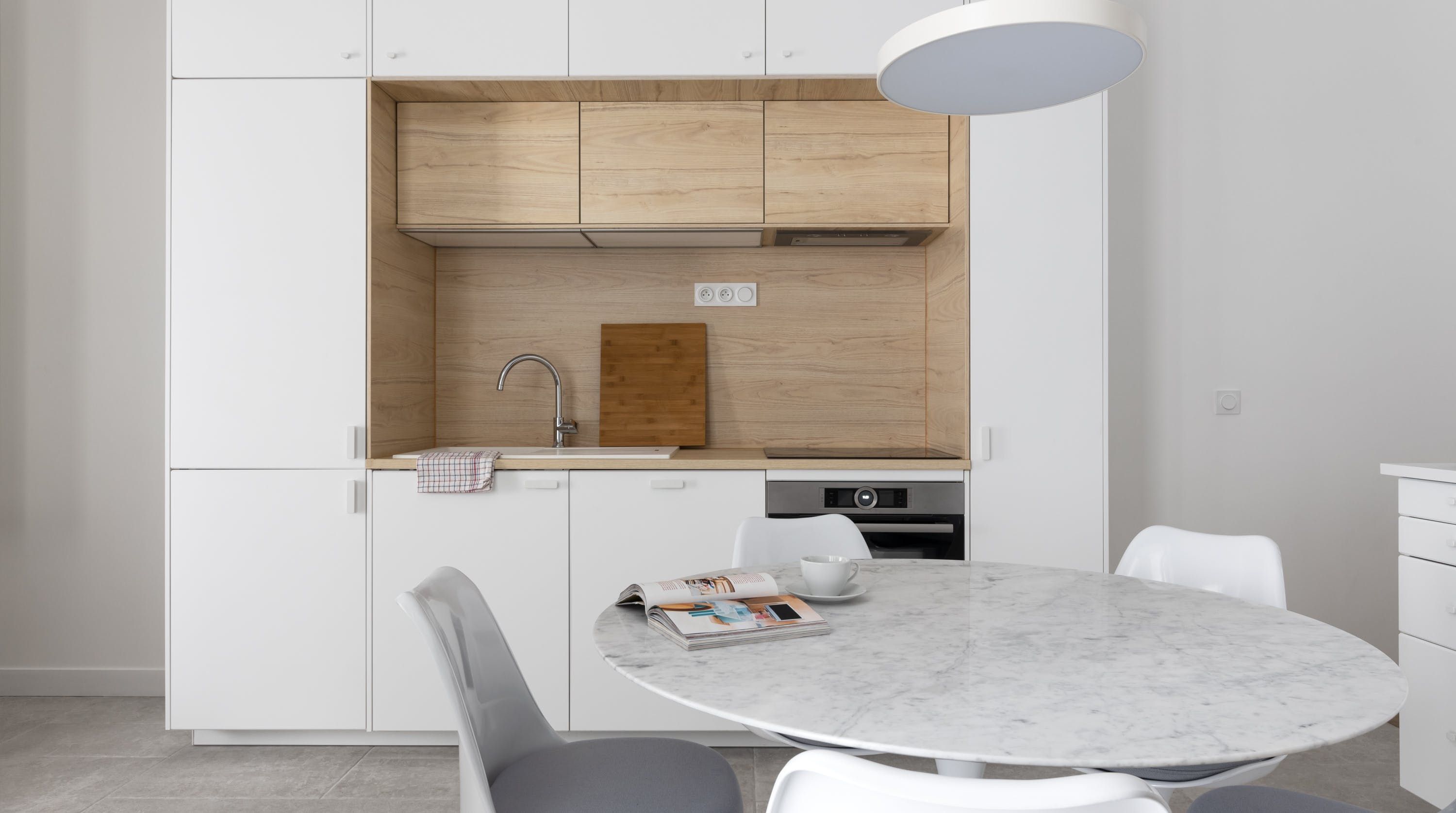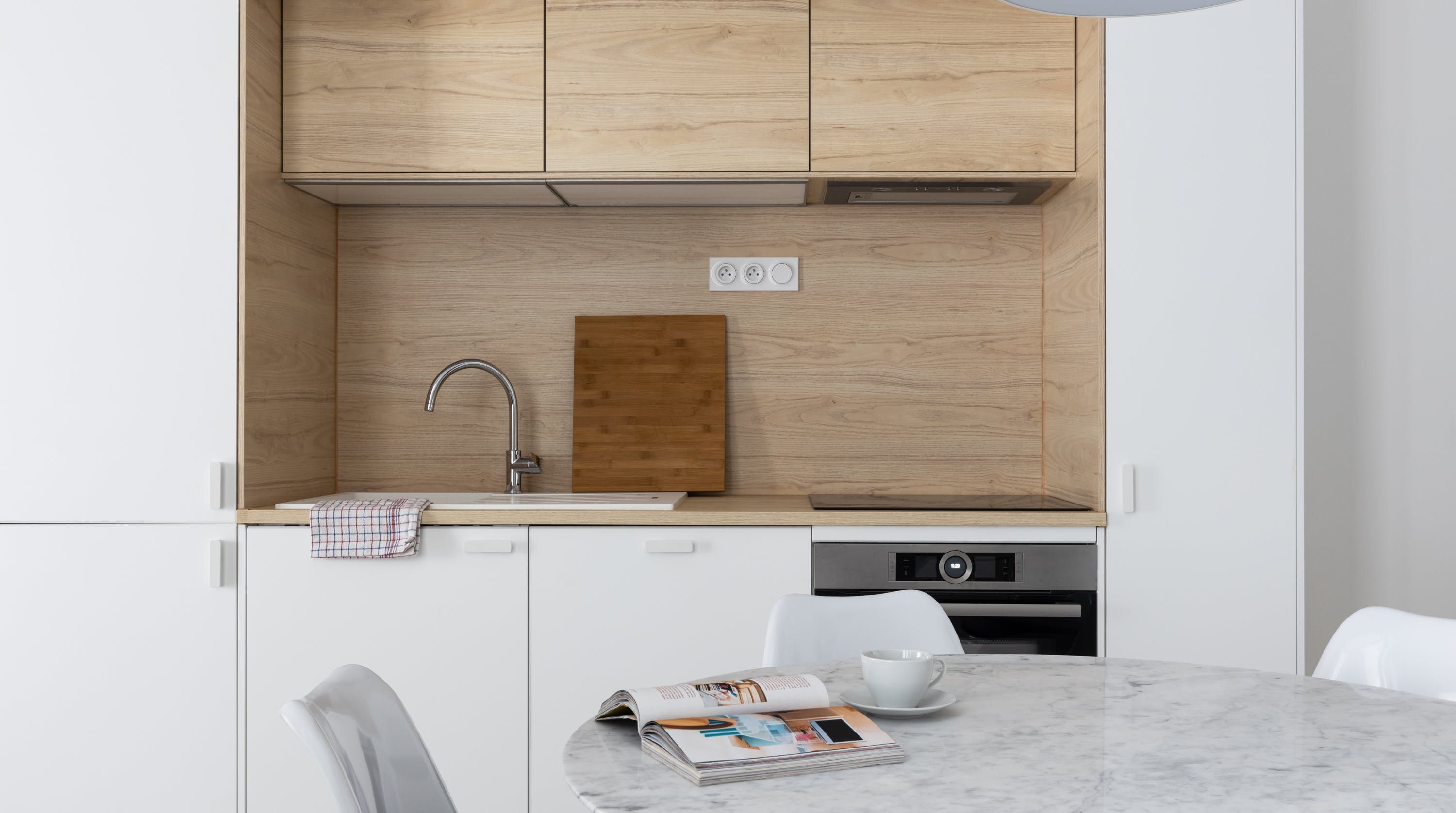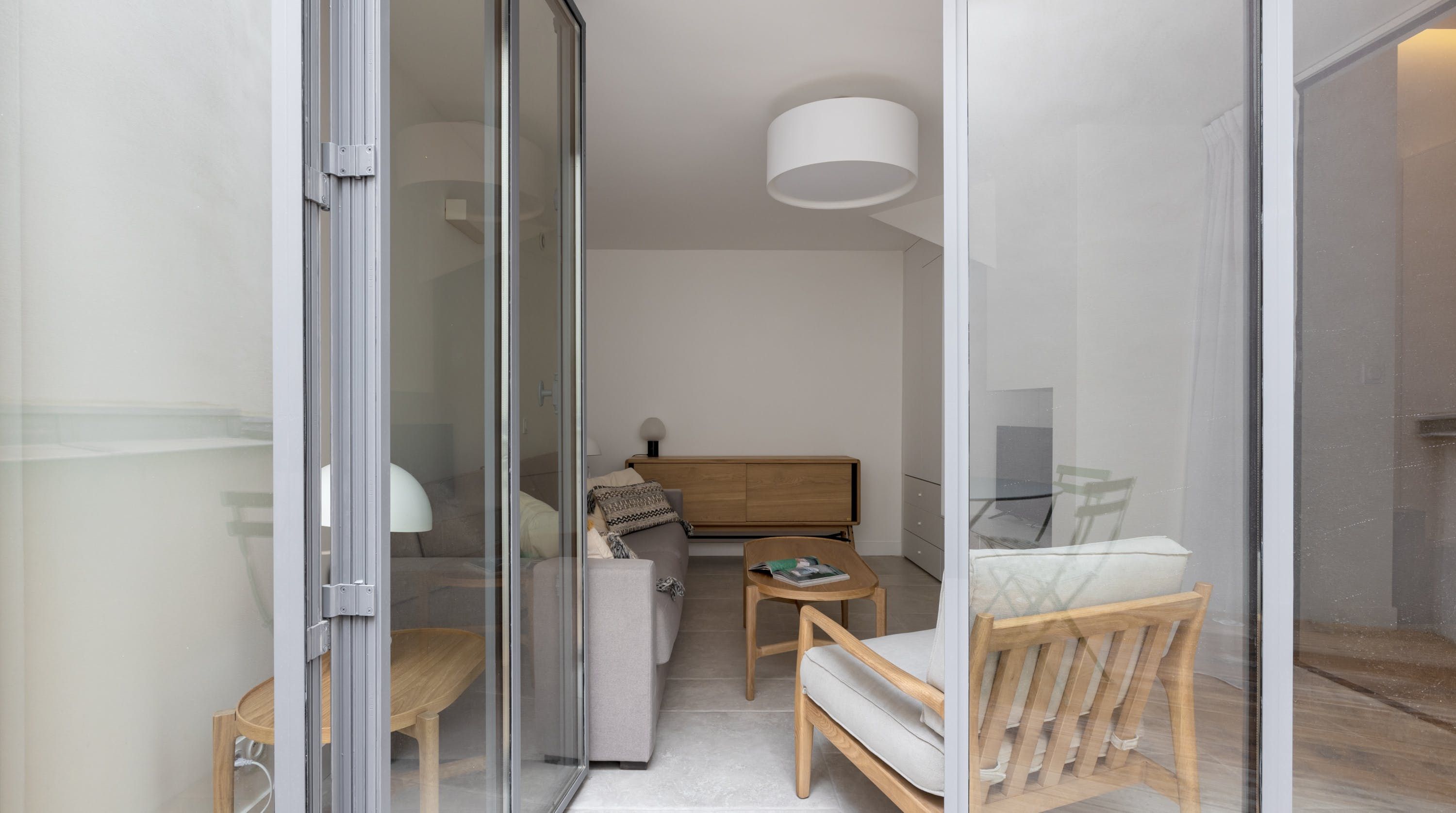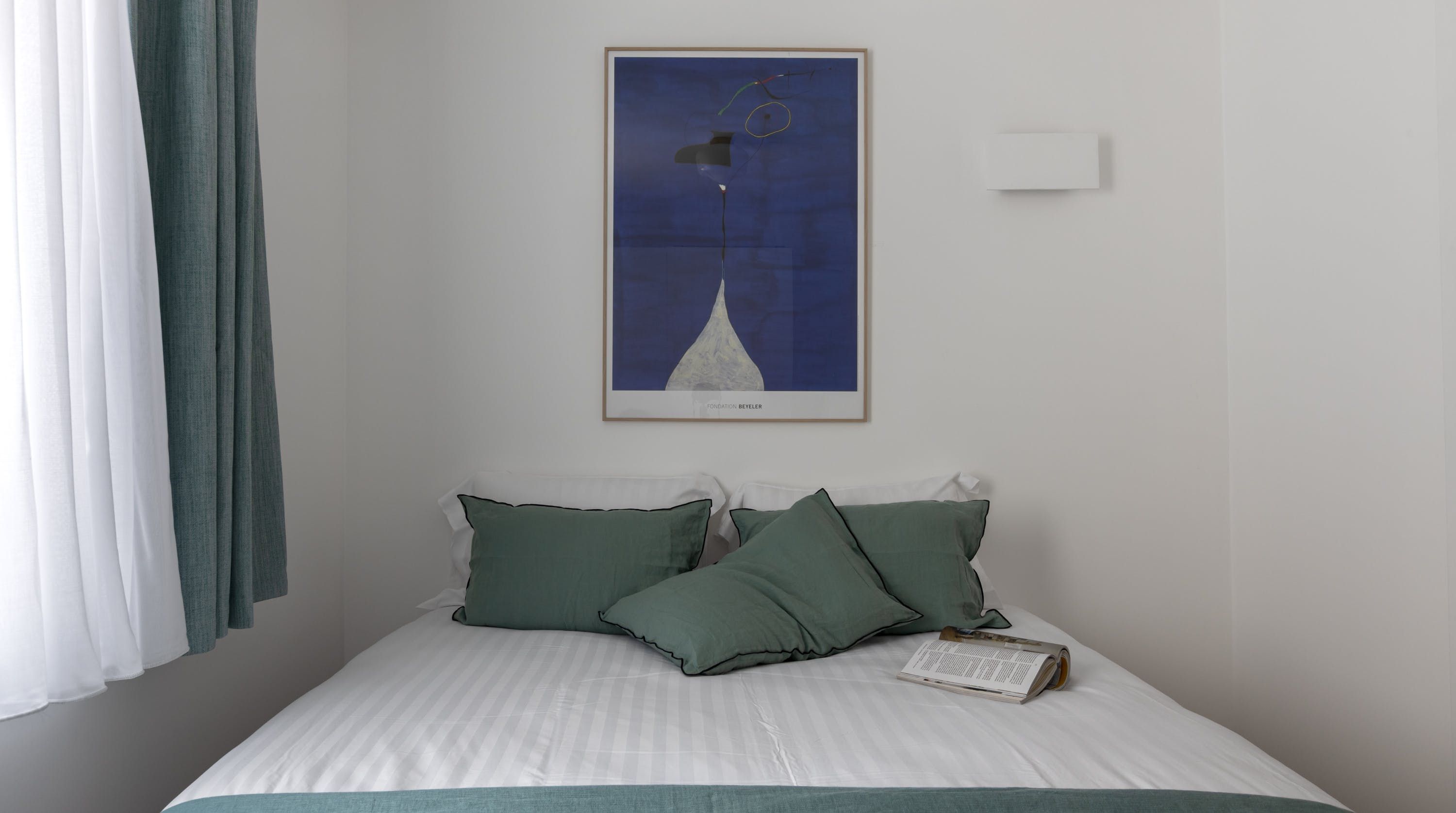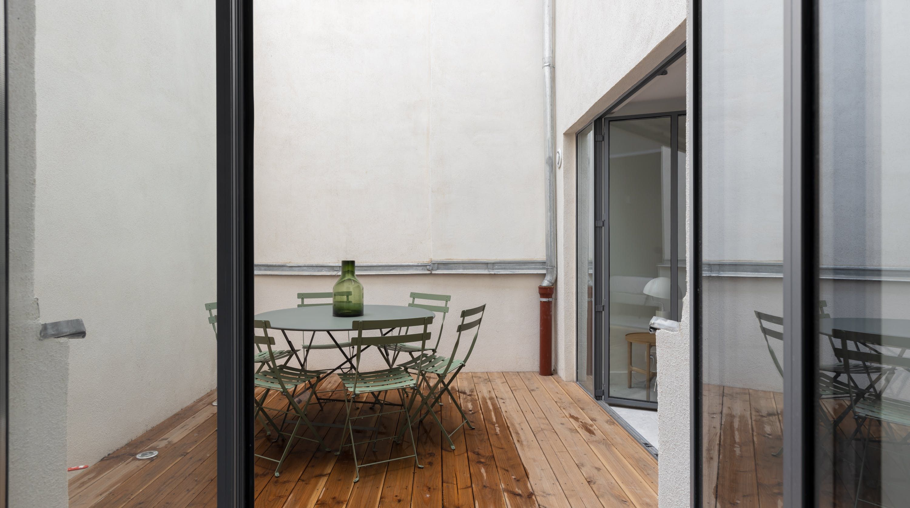 Positioned on an internal courtyard, this apartment is a haven of calm in the city. Everything inside is crisp white and raw wood with fawn and stone touches. Pops of modern art liven up gallery-white walls and an exposed brick wall adds a bit of a warehouse-chic vibe. Our favourite spot has to be the private courtyard terrace, which is blissfully quiet and has alfresco dining set up if you wish.