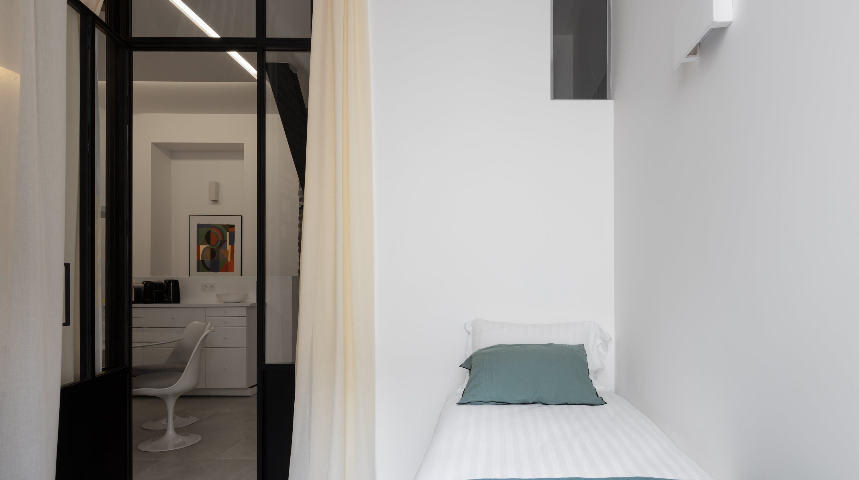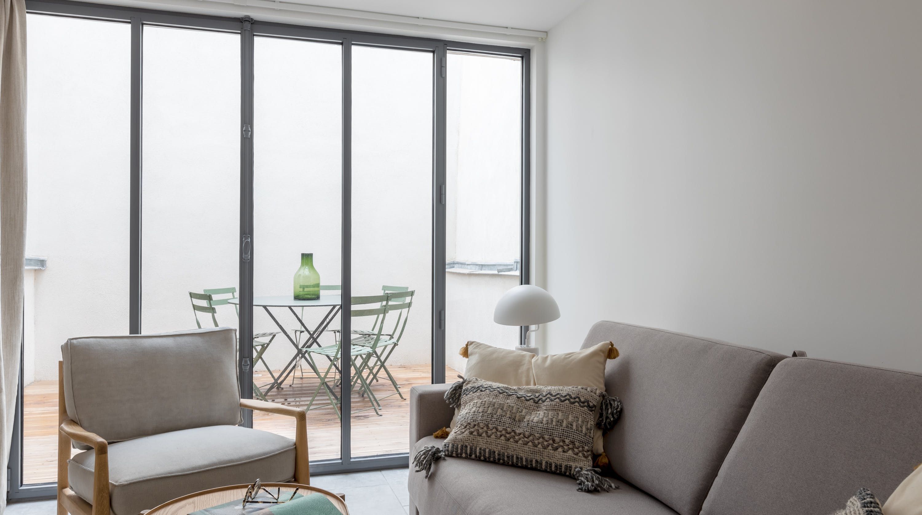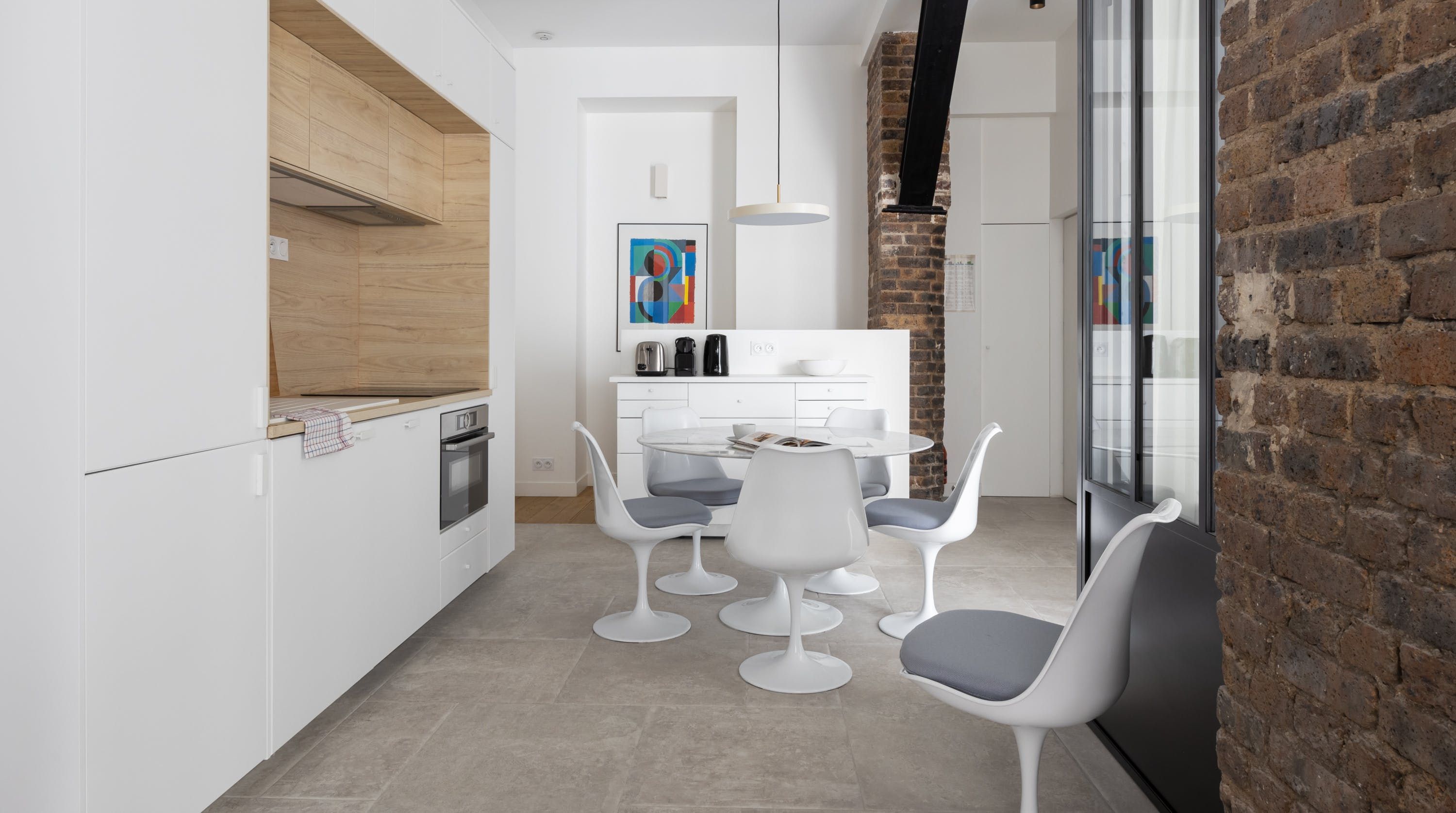 On a typically Parisian street in the Bastille neighbourhood, this apartment radiates ultra-modern cool. On your street, you’ve got classic French bistros with seating spilling out onto the pavement under awnings and chi chi little gallery shops. A two-minute stroll away are the café-lined banks of the Canal Saint-Martin and the Place de Bastille where myriad metro stations can whisk you to Notre Dame and The Louvre in less than ten minutes.