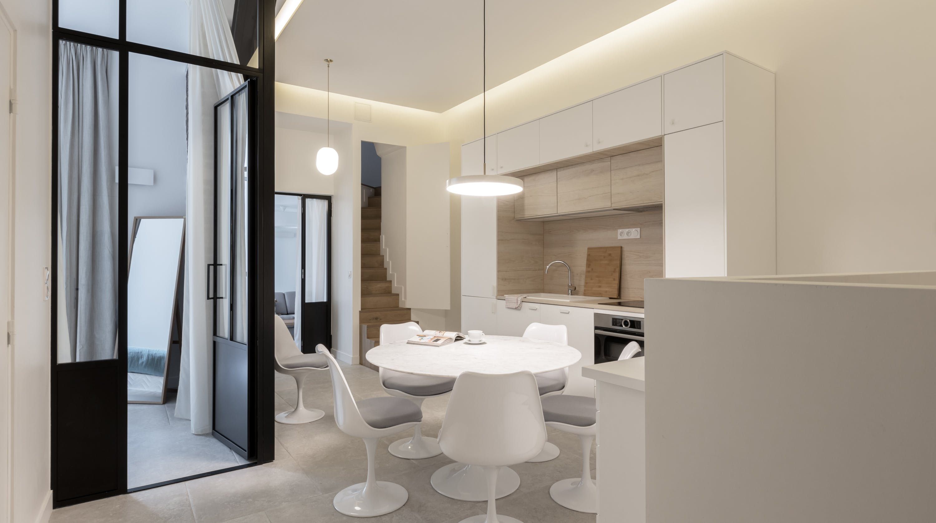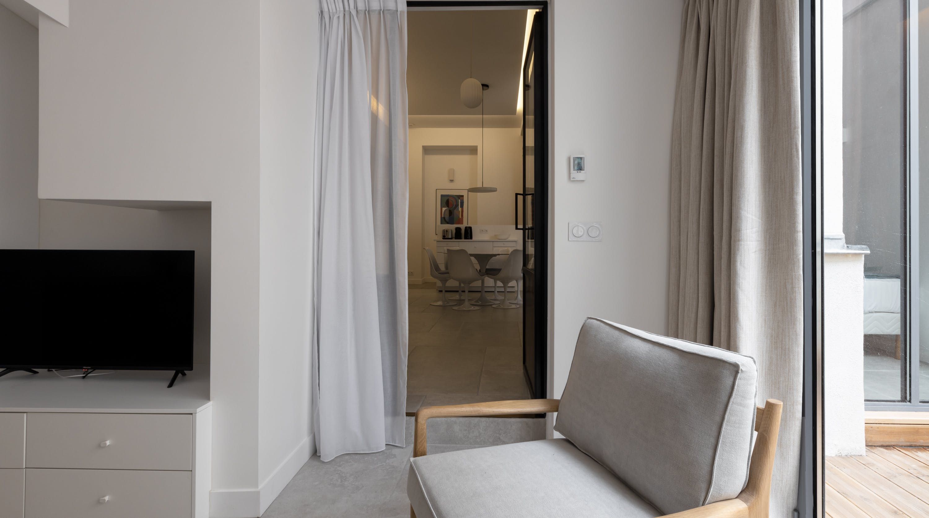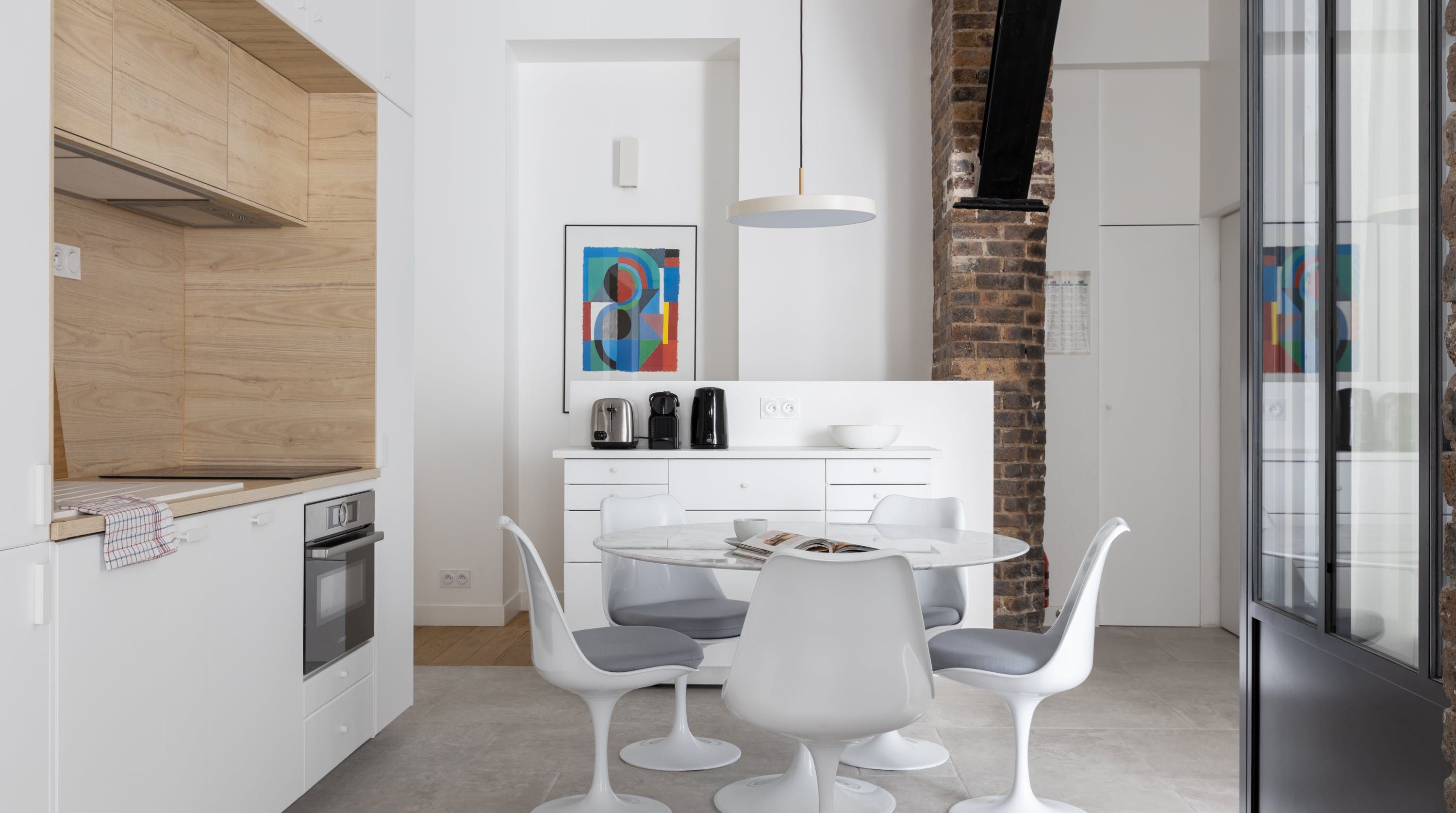 On a typically Parisian street in the Bastille neighbourhood, this apartment radiates ultra-modern cool. On your street, you’ve got classic French bistros with seating spilling out onto the pavement under awnings and chi chi little gallery shops. A two-minute stroll away are the café-lined banks of the Canal Saint-Martin and the Place de Bastille where myriad metro stations can whisk you to Notre Dame and The Louvre in less than ten minutes.