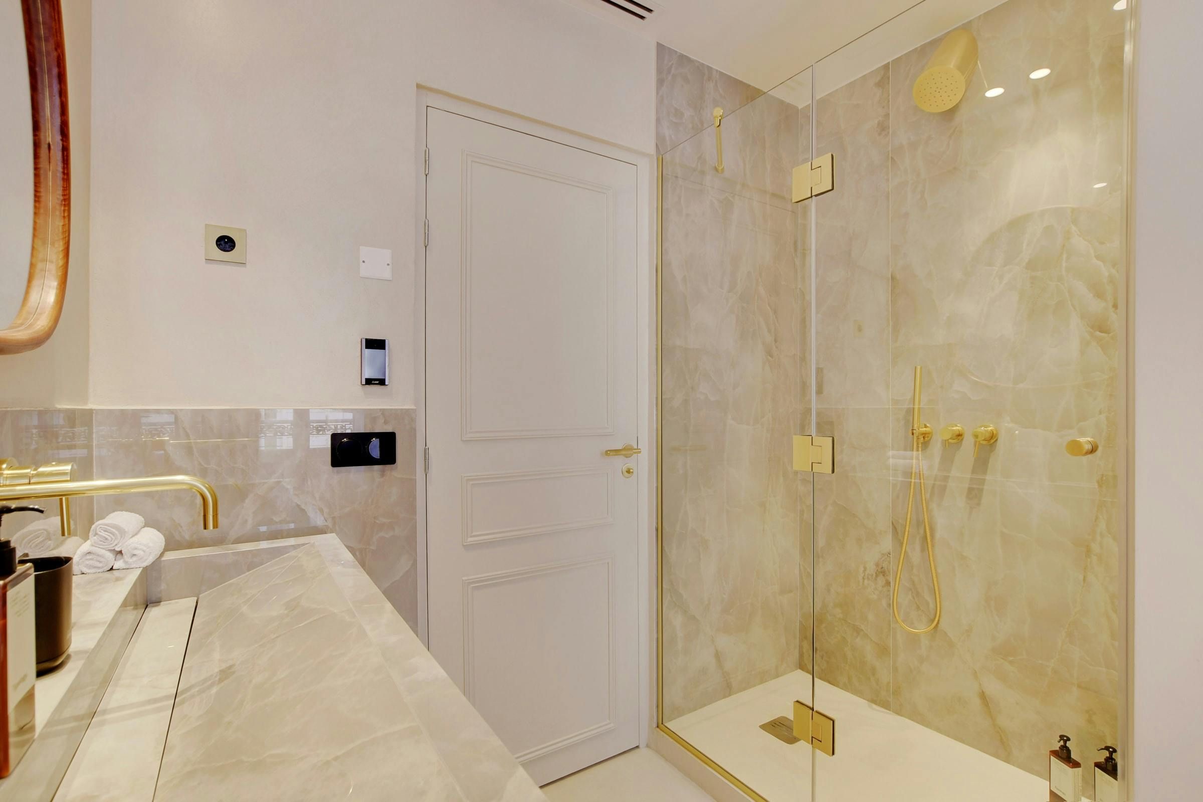 *One of the en-suite bathrooms is in the bedroom, without a wall or door to separate the shower and sink from the sleeping area, so privacy is slightly limited. As is common in France, the toilet is separate from this bathroom.