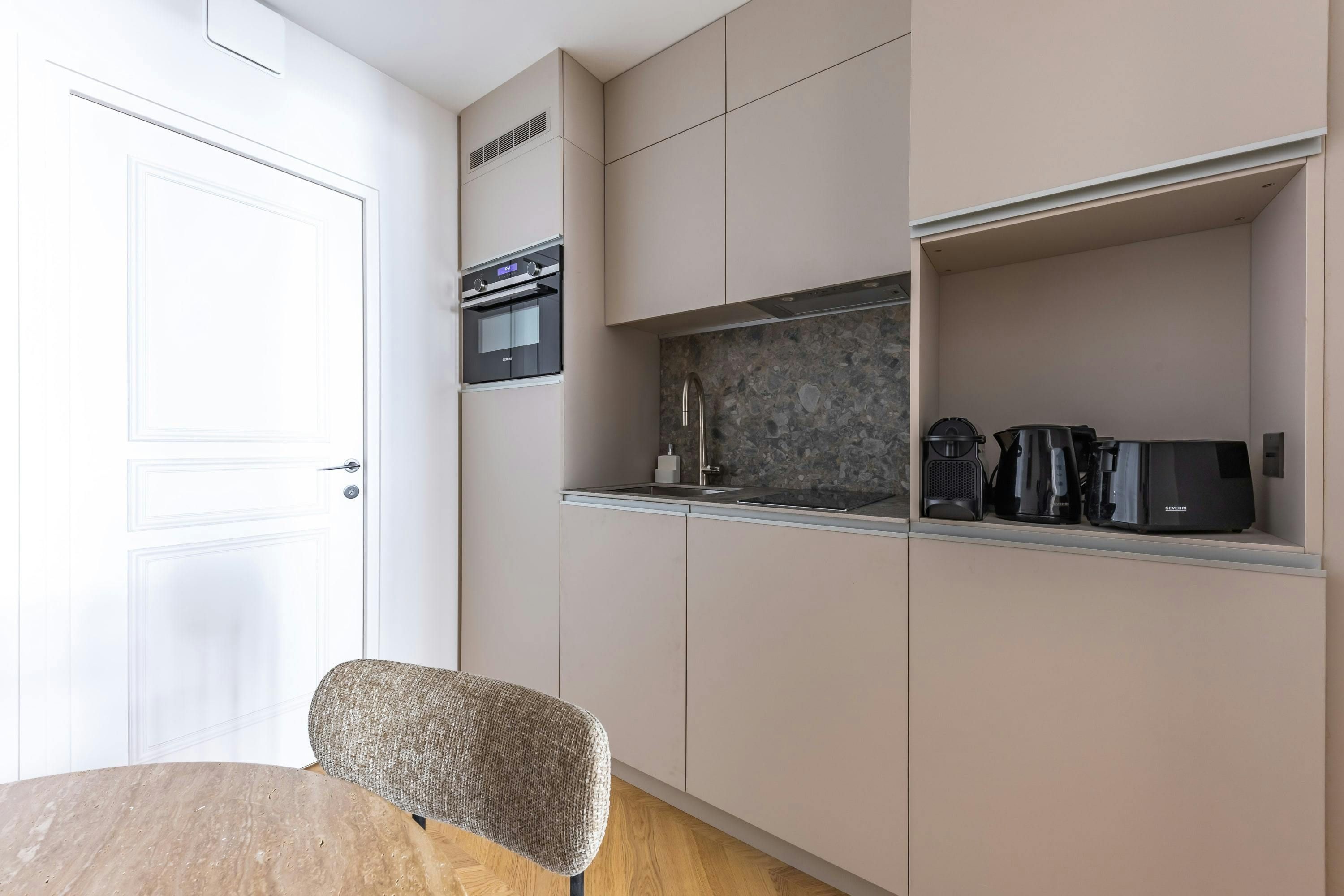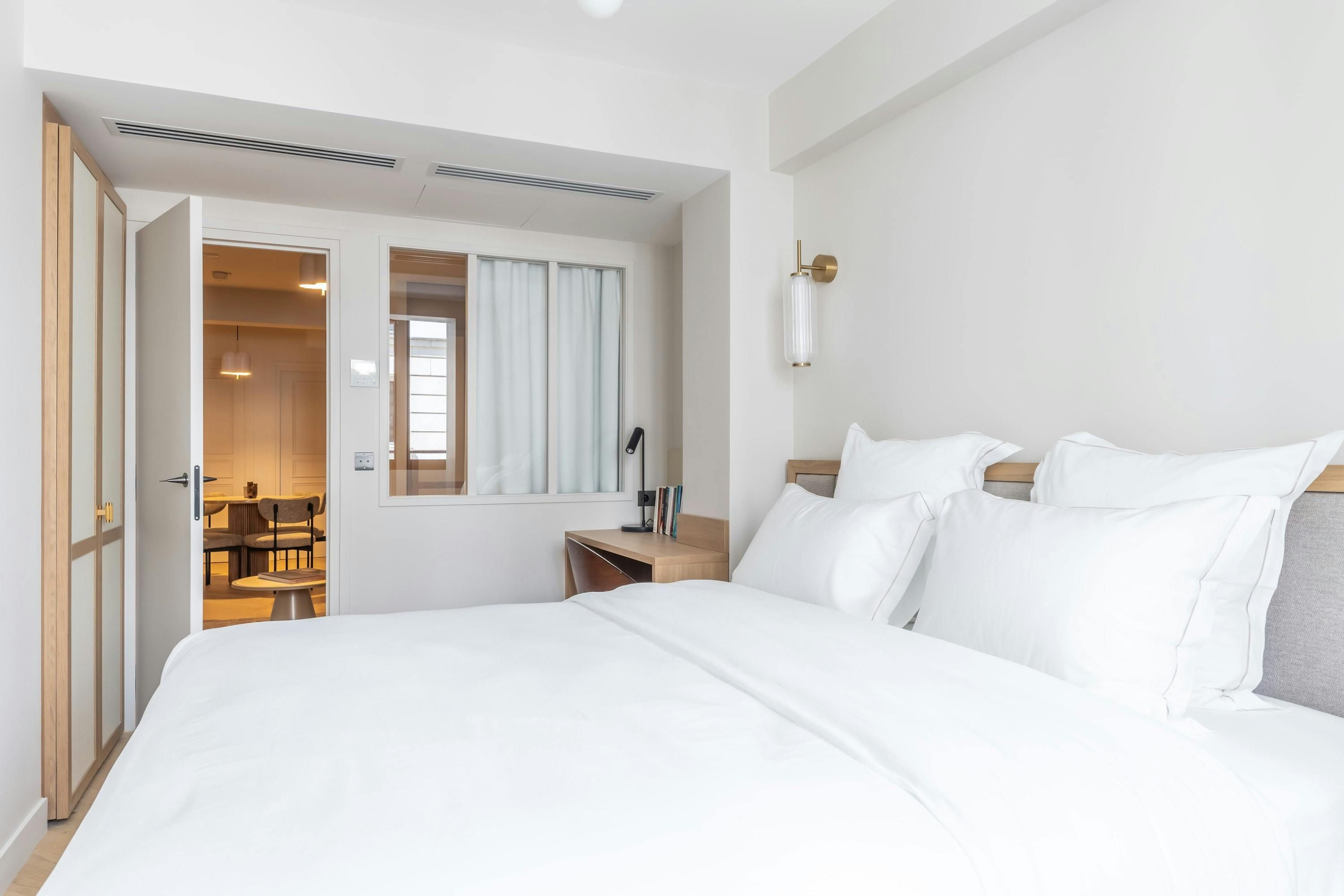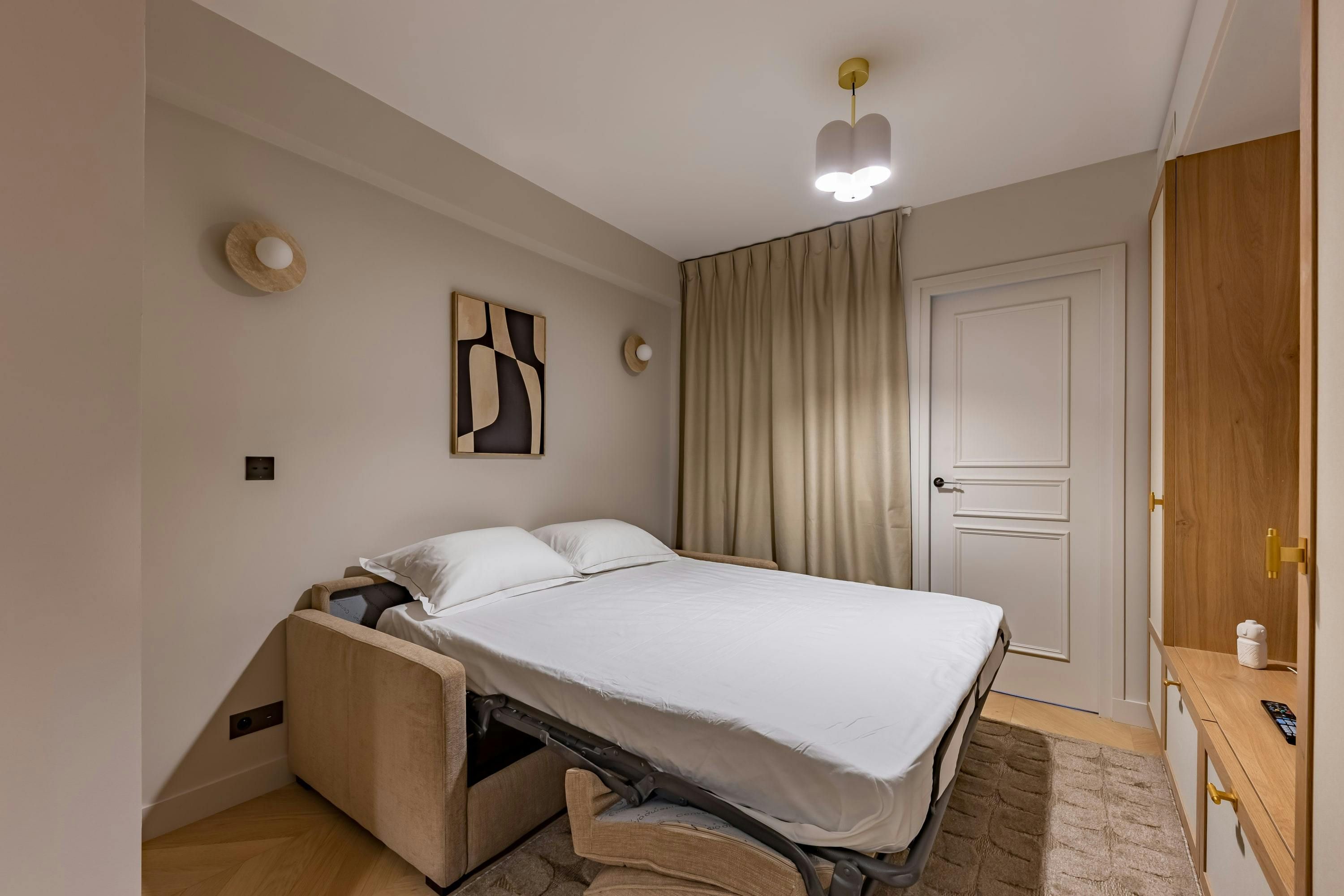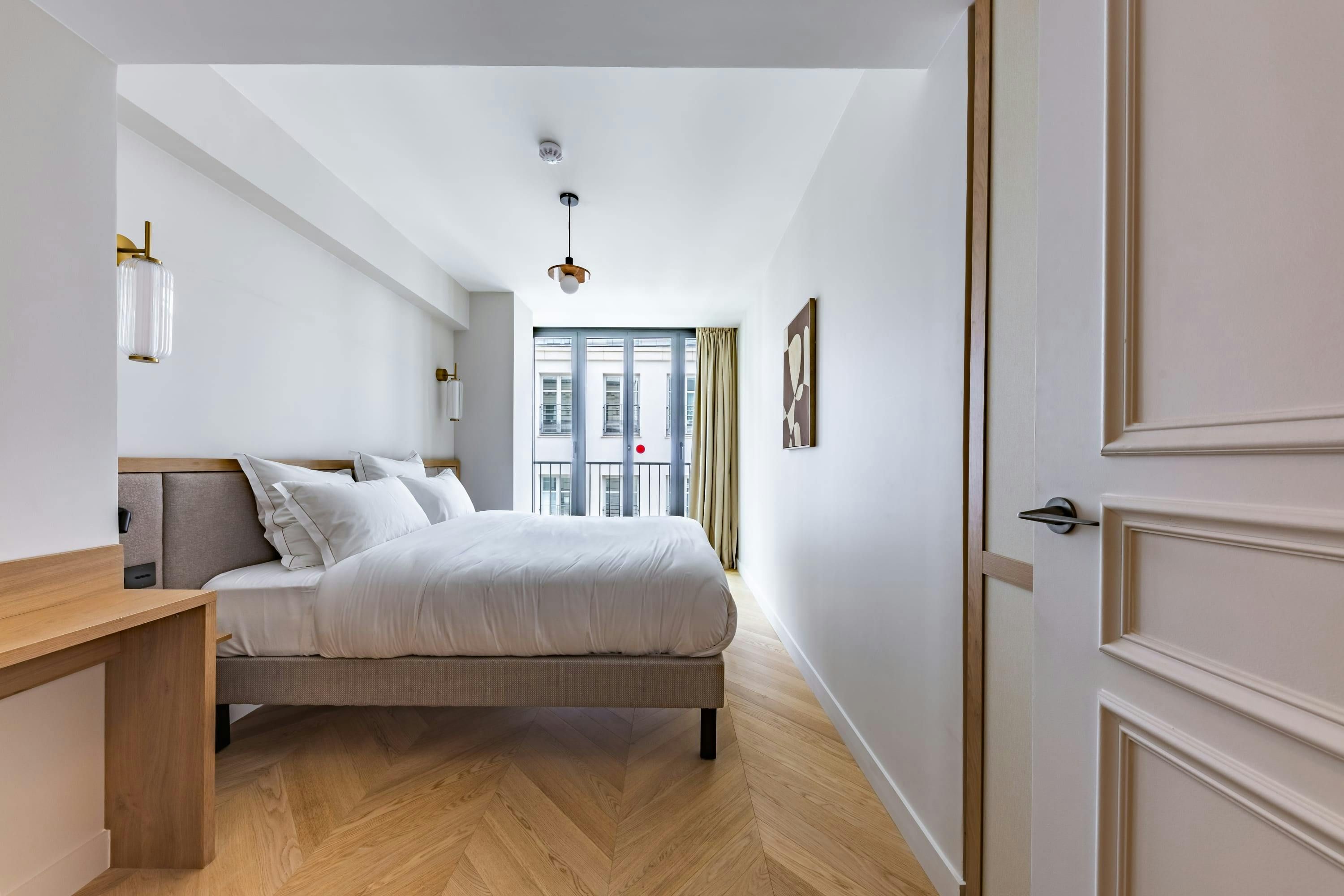 This apartment in Opera is exceptionally located, putting you in the heart of Paris. The famous Palais Garnier Opera is moments away and the legendary concert hall L'Olympia is just up the street. High-end shops and trendy restaurants are located on the Grands Boulevards and well-connected metro stations make exploring a breeze. Back home, the large bedroom boasts a desk for remote working and plenty of room to sprawl out. The living space has a sofa bed for two, though it's a tad snug and does lack some light. Still, considering the small communal gym and excellent position, we think it makes for a fuss-free central stay.