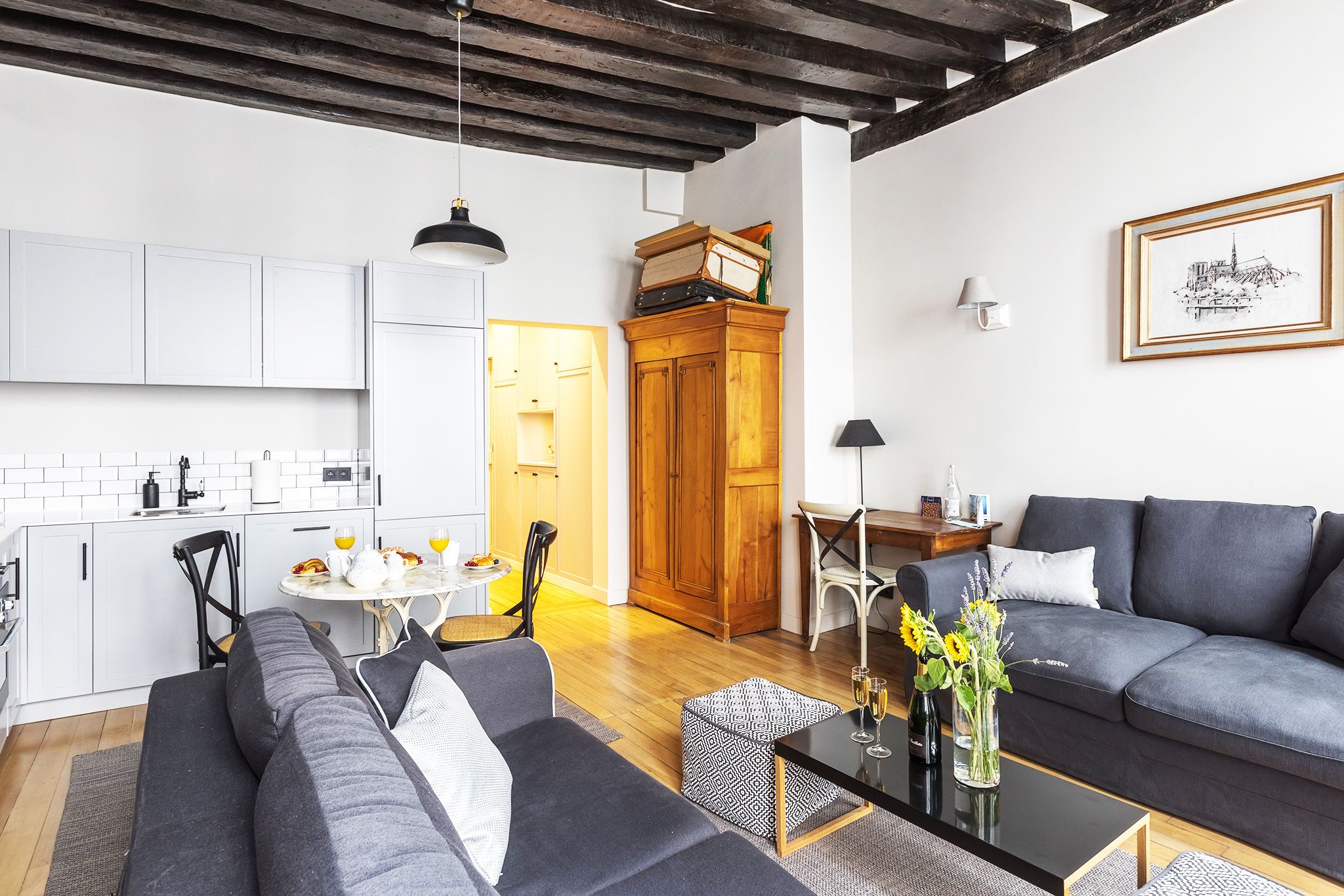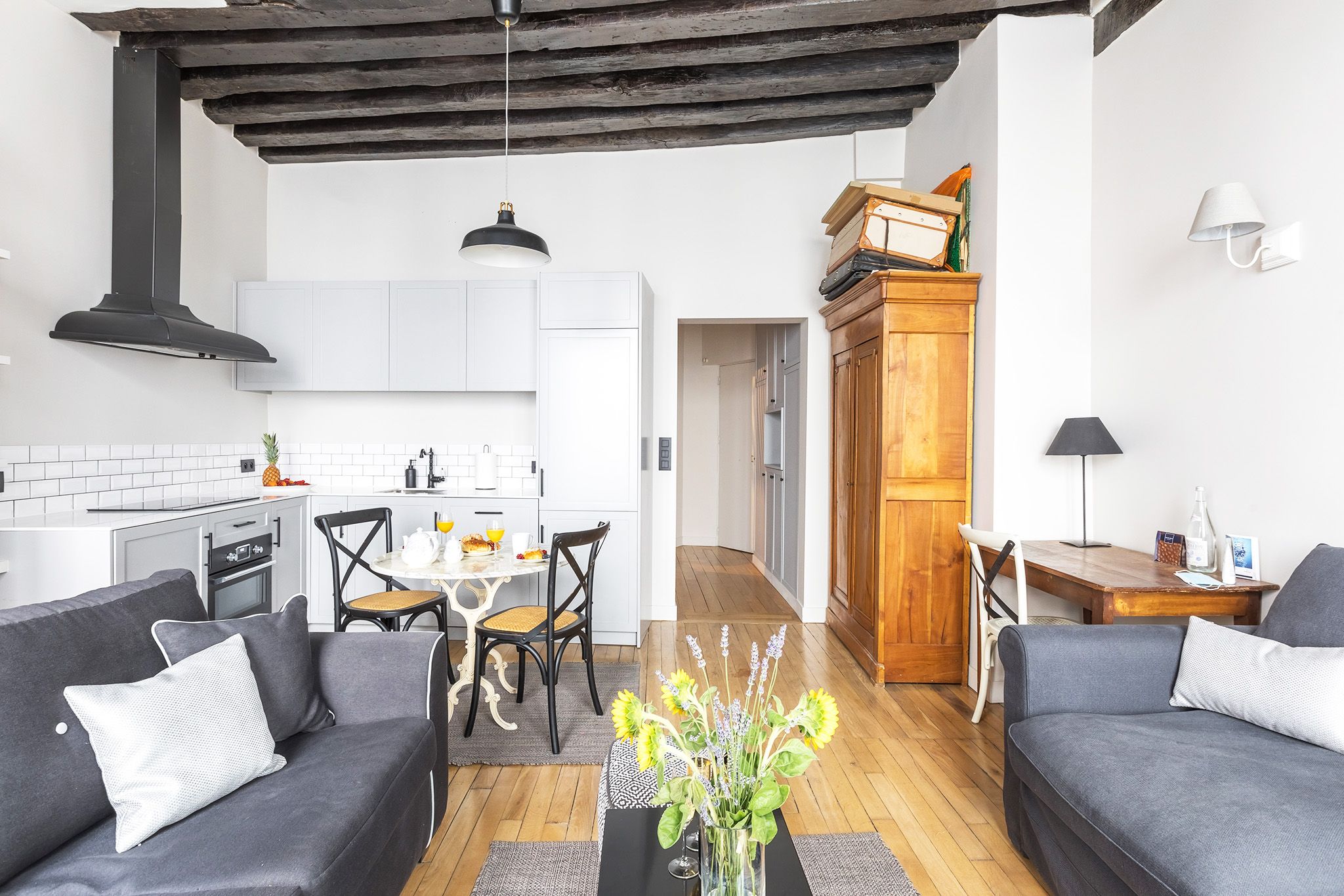 You’ll be just a short walk from the Louvre Museum and the Palais-Royal when you stay at this apartment. The Centre Pompidou and Le Marais are also within walking distance and you’ll be surrounded by plenty of shops and restaurants. So, the location couldn’t be much better. What about the apartment? Well, this place is ideal for those on work or study programs, providing a welcoming home away from home. The open-plan living space is a great place to relax at the end of a busy day. This room also sleeps two people on a sofa bed at full occupancy. This apartment offers a comfortable and convenient base for those seeking a longer stay in the City of Light.