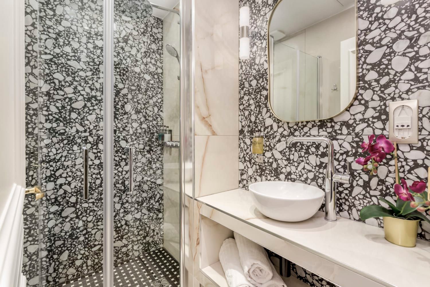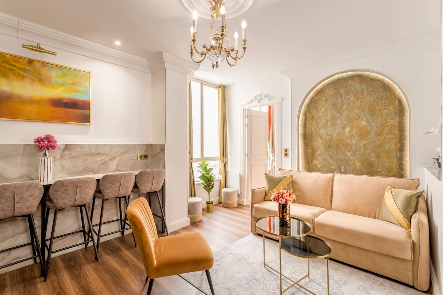 Retiring to this apartment, you can admire the traditional Parisian touches throughout, like high ceilings, cornicing as intricate as icing on a cake and tall French windows. We love the lighting, highlighting the old archways of the apartment. A full kitchen means you can prepare meals at home and serve at the long breakfast bar, but we think exploring the bistros and hole-in-the-wall restaurants of your neighbourhood might take up most of your time here.